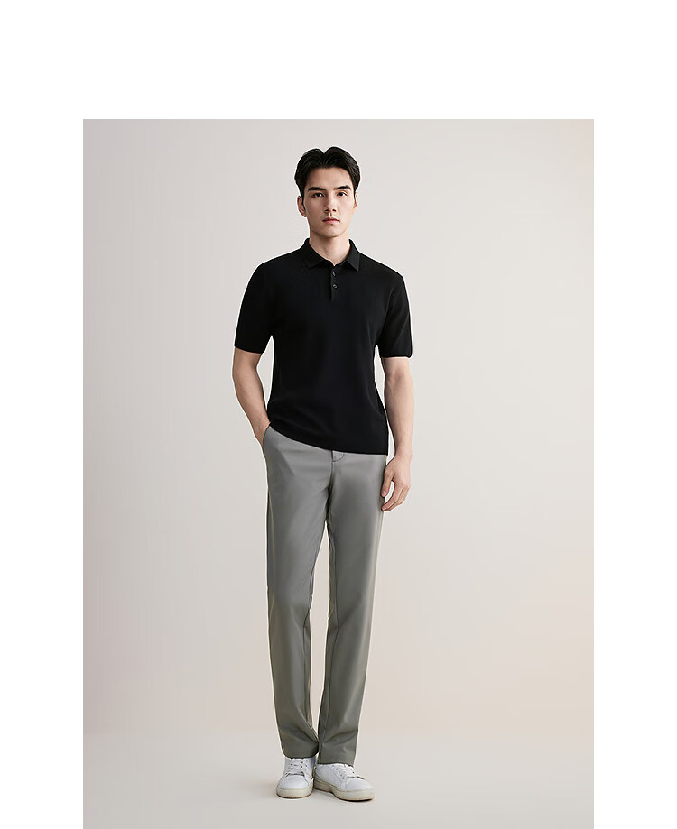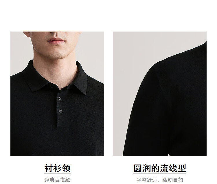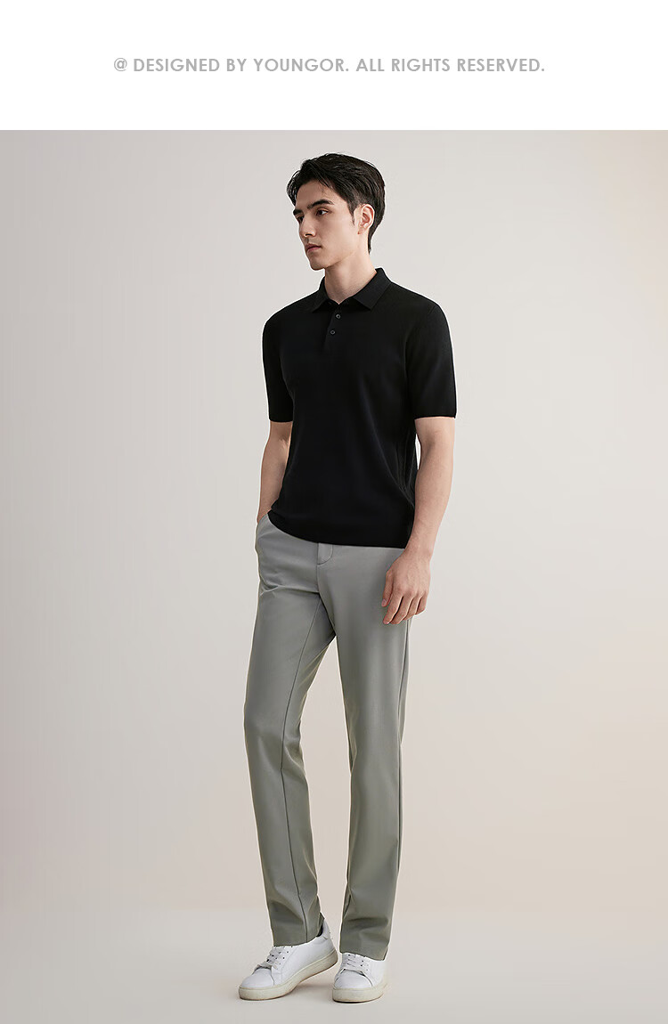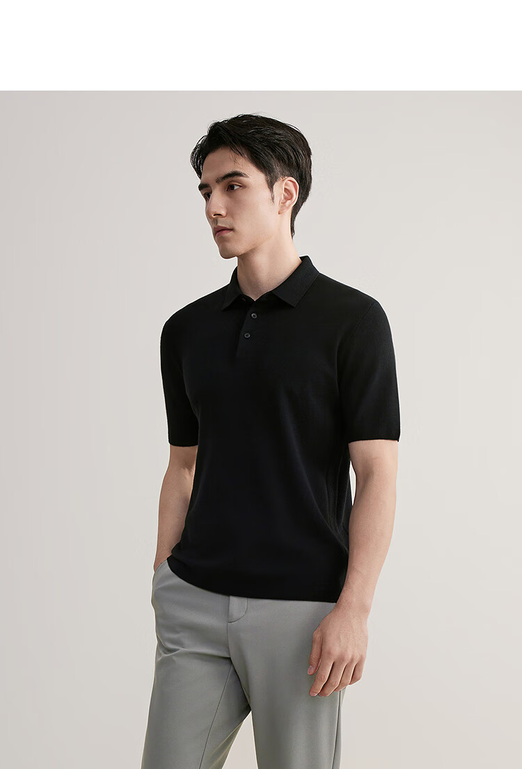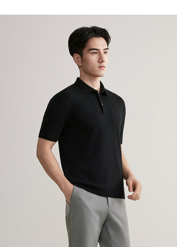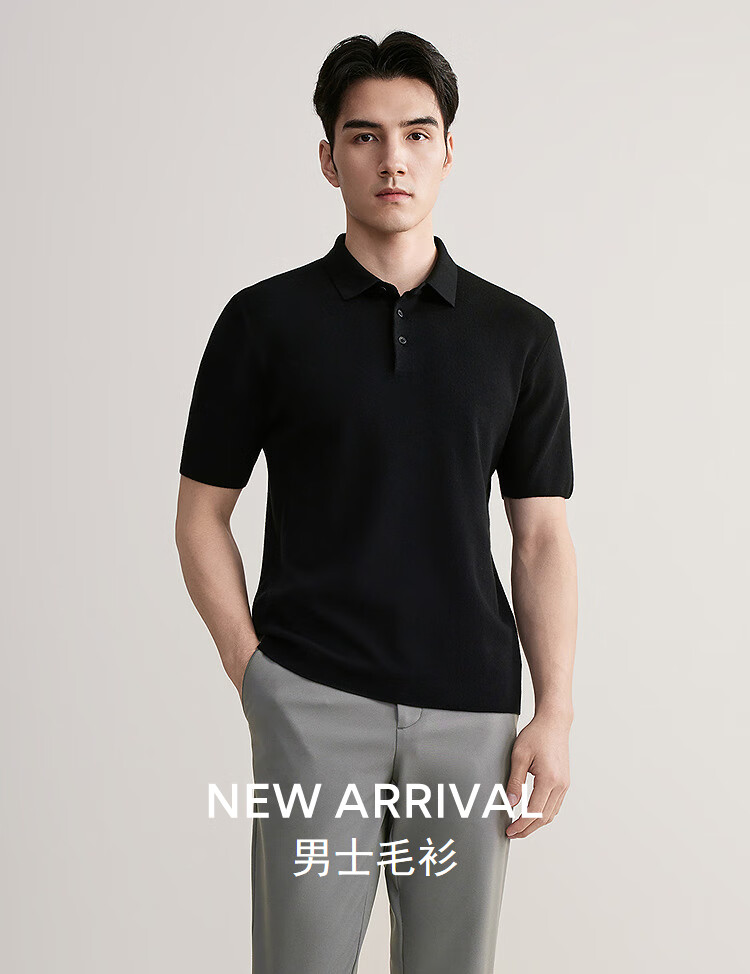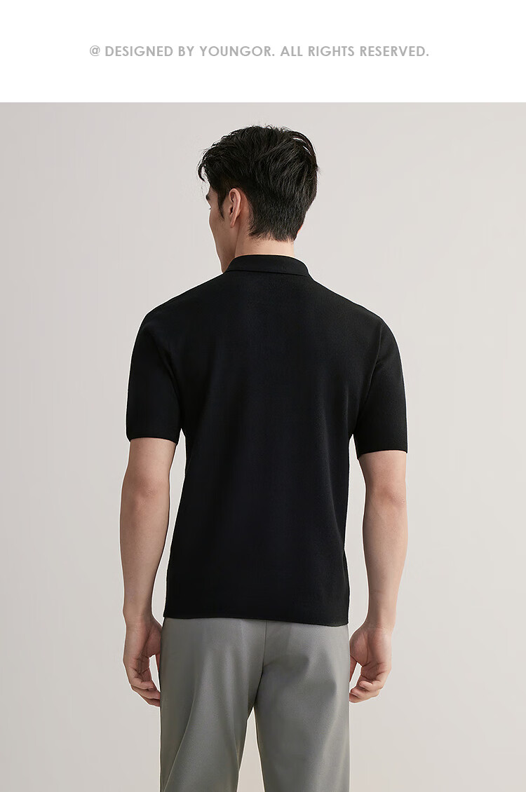YOUNGOR short-sleeved wool sweater for men, wool blended, machine washable, anti-shrunk, easy to care for, comfortable sweater, 2025 shopping mall same style, black YYQW615276ACA 2XL 115cm (recommended 180-190Jin Jin equals 0.5kg)