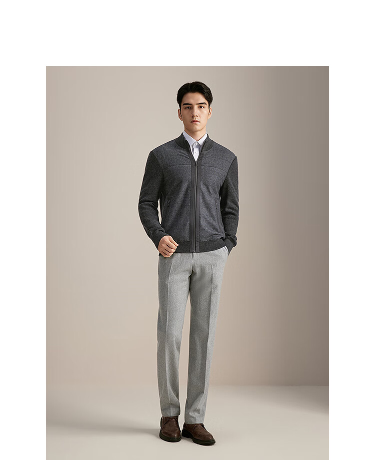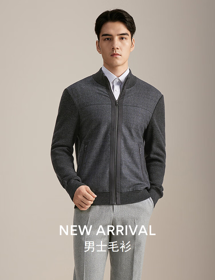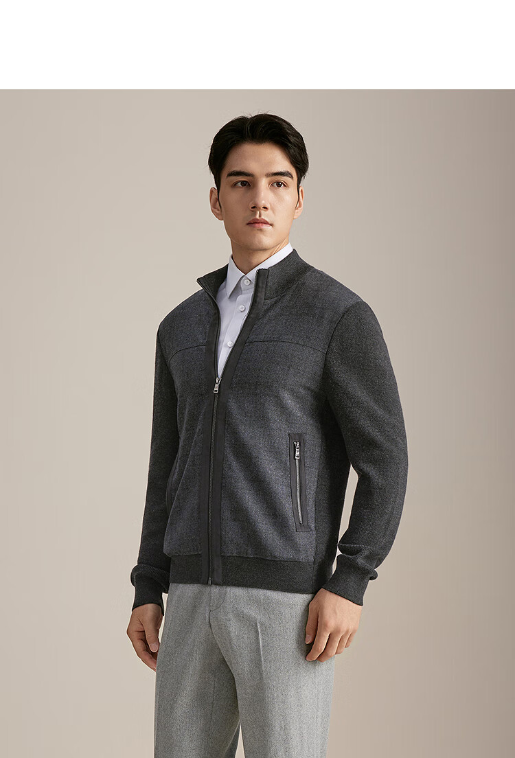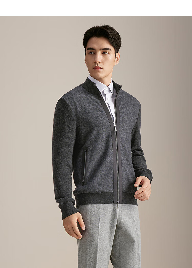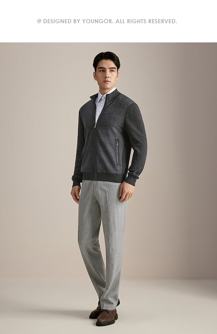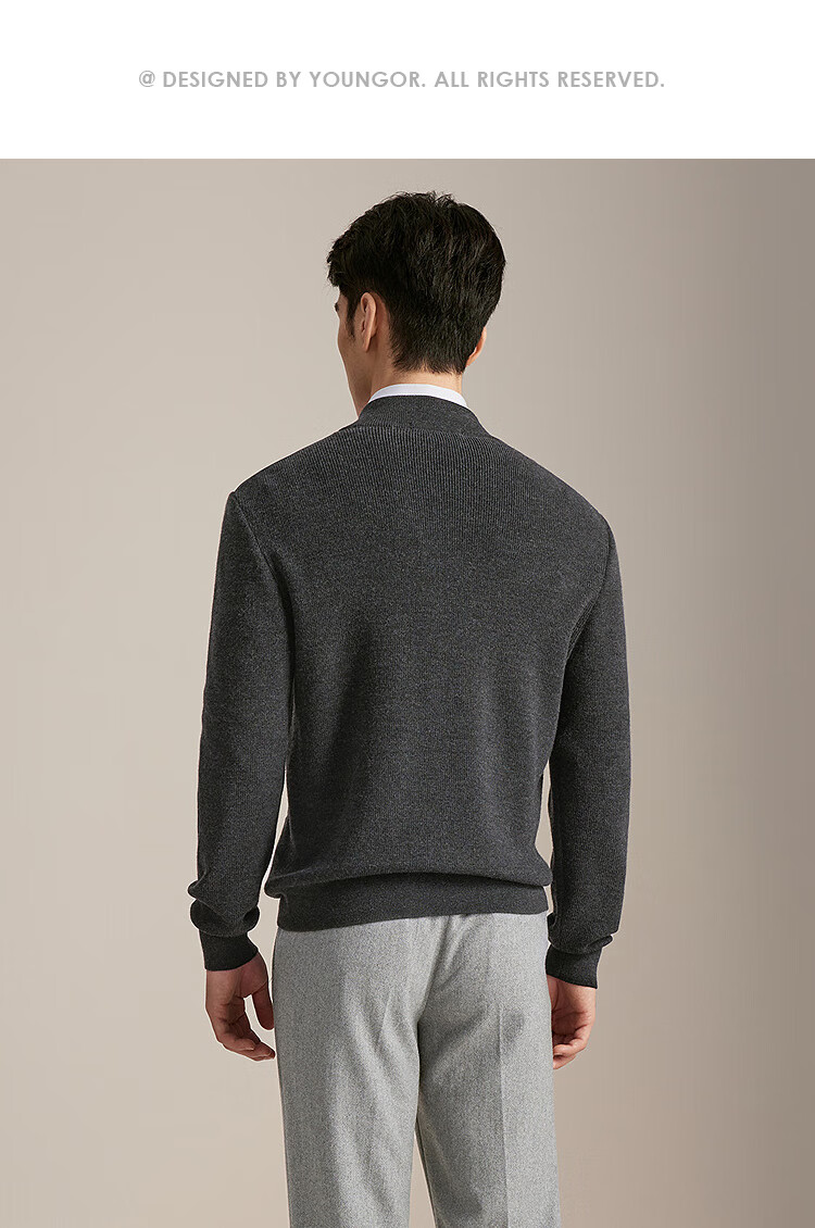 YOUNGOR sweater jacket men's all-wool stand-up collar zipper cardigan all-wool knitted wool matching 2025 shopping mall same style dark gray YWQW615274CKA L 105cm (recommended 145-165Jin Jin equals 0.5 kg)