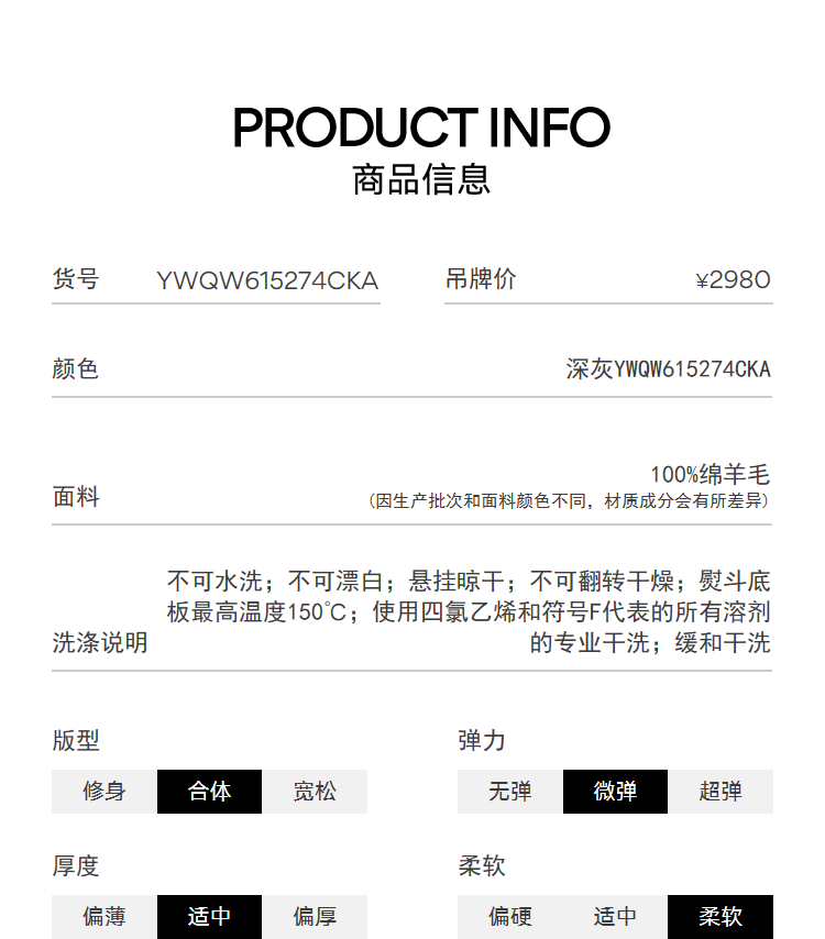 China (cm) 160-165/84-86 165-170 / 88-90 167-172 / 92-96 168-173 / 98-102 170-176 / 106-110