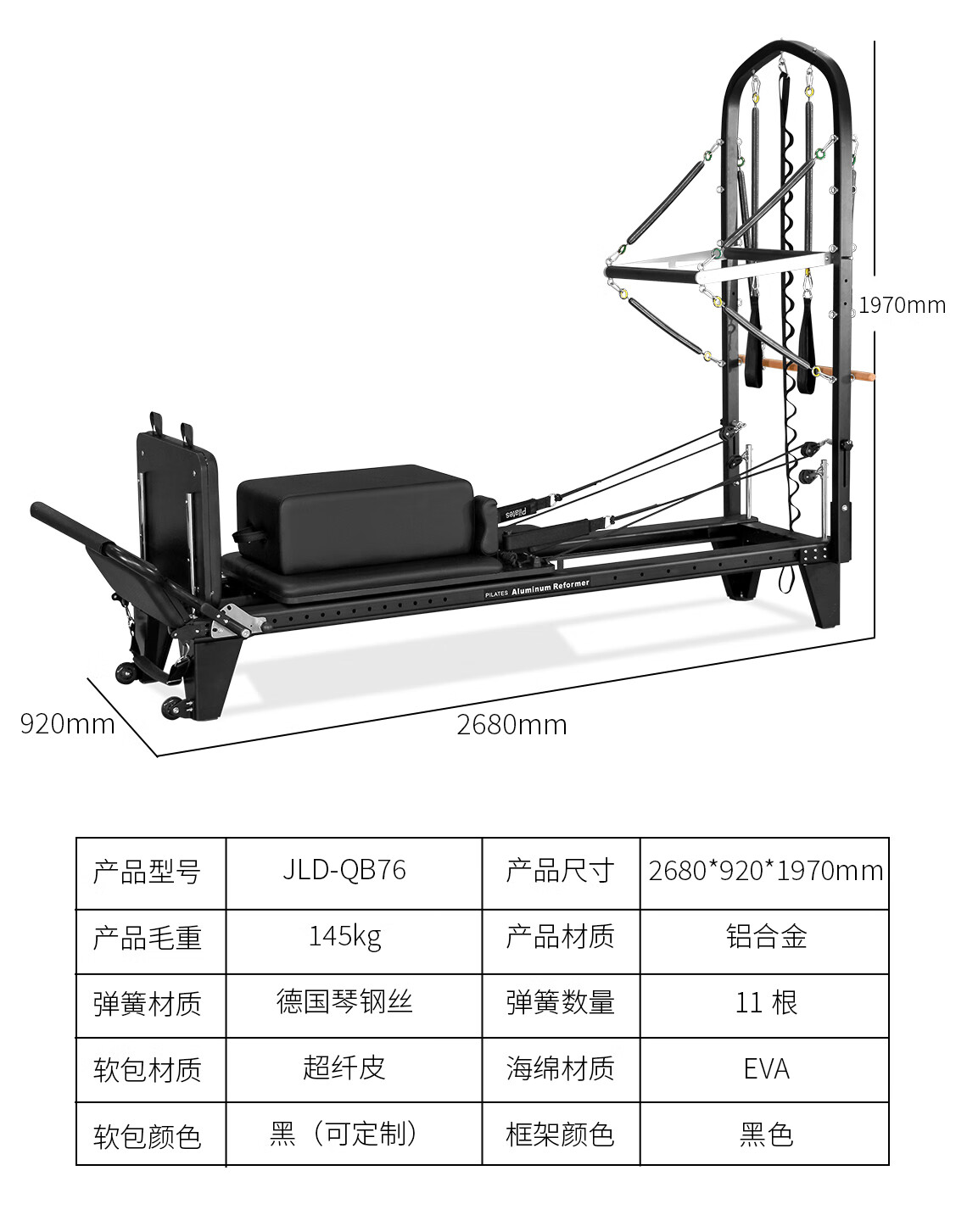 JOYRIDER two-in-one Pilates core bed QB76 high-end yoga commercial large equipment home semi-elevated black