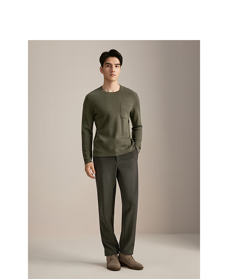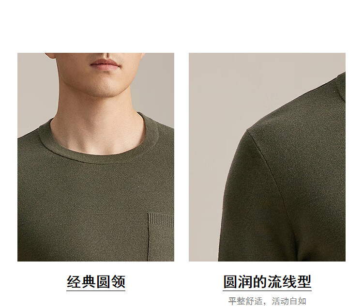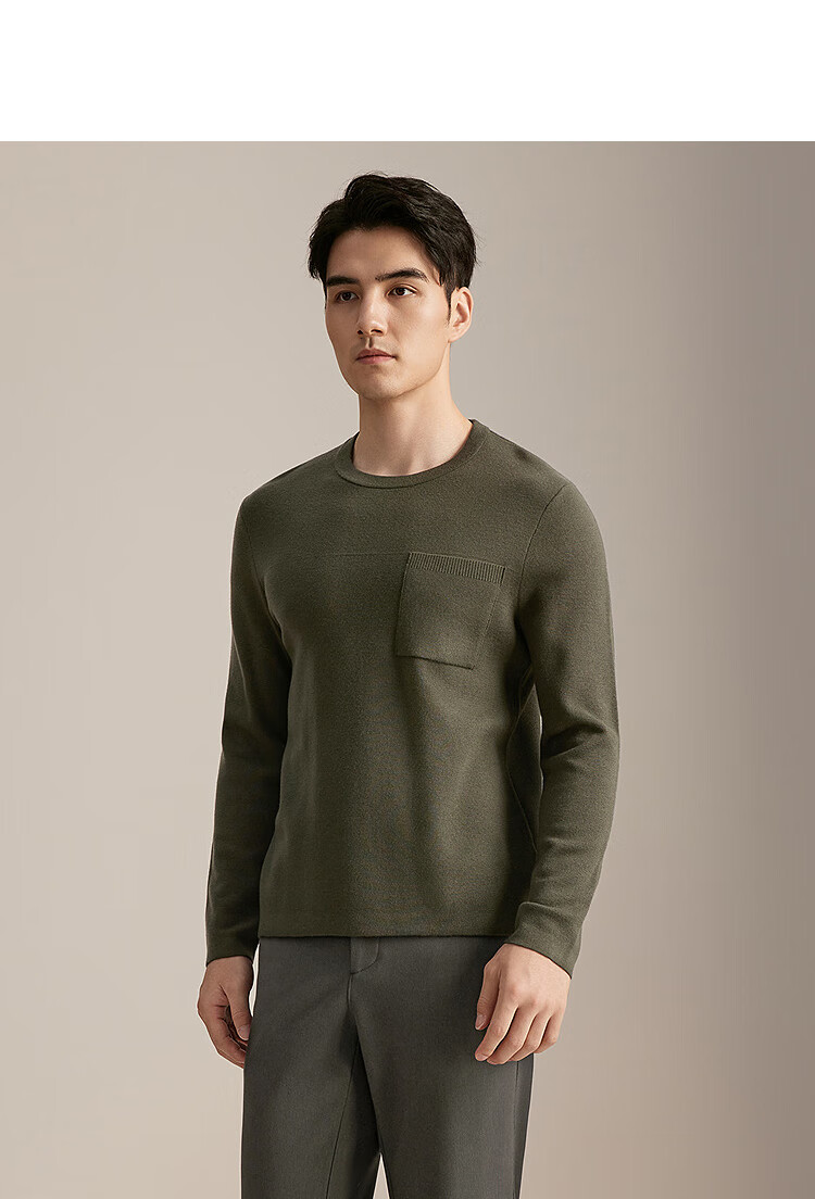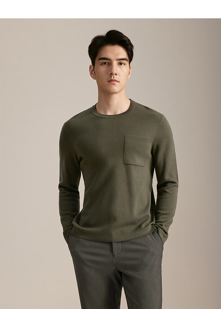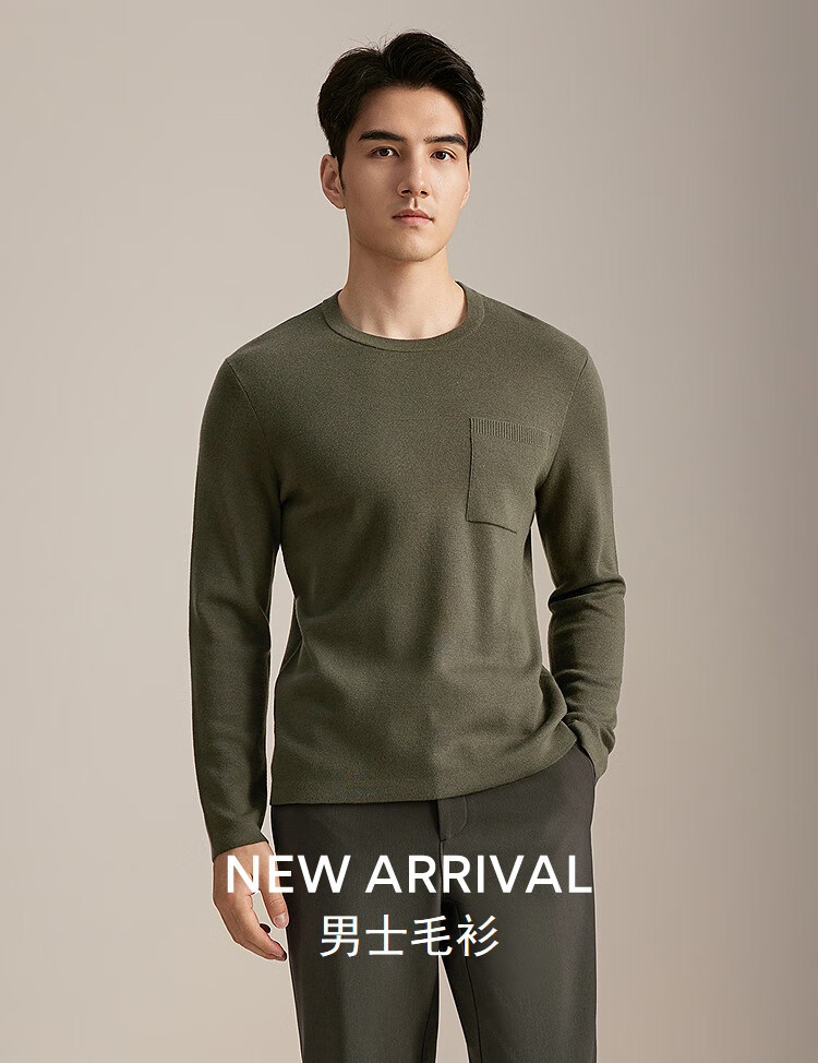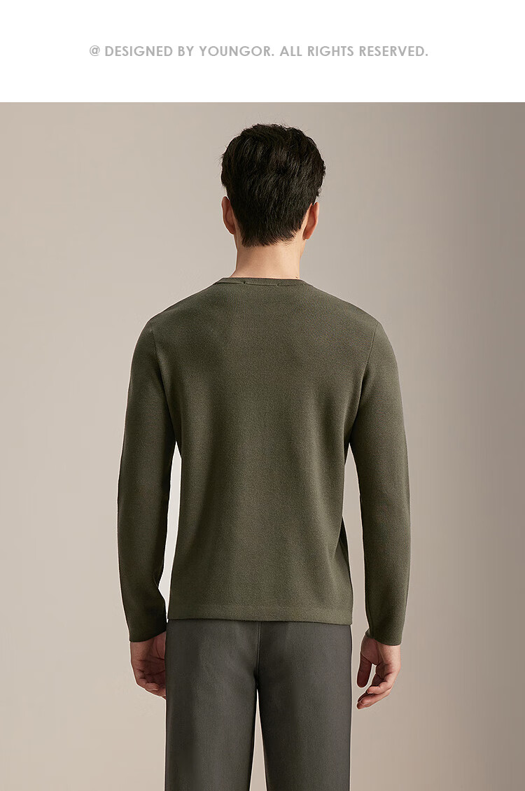 YOUNGOR wool sweater for men, wool blended, machine washable, easy to care for, not easy to pill or deform, 2025 shopping mall same style, dark green YYQW635281PYA L 105cm (recommended 145-165Jin Jin is equal to 0.5kg)