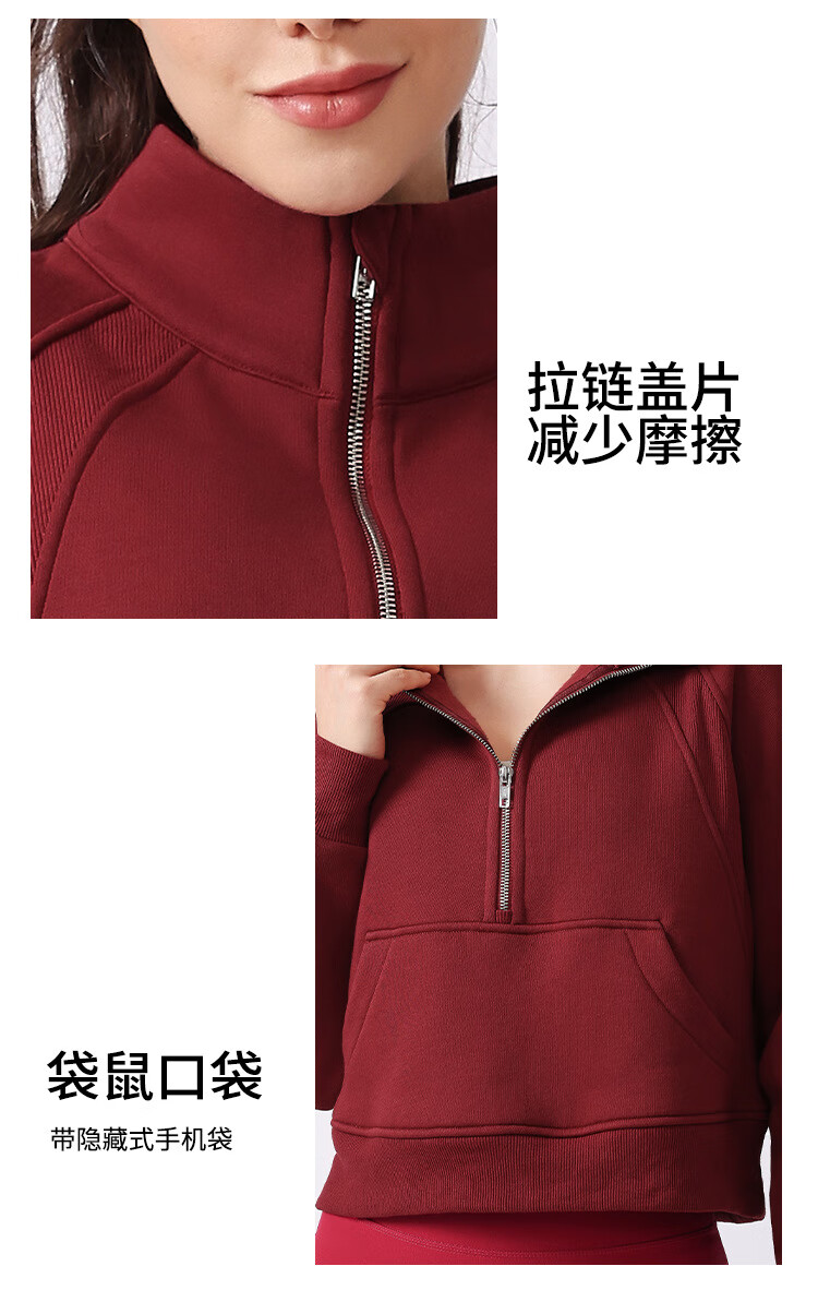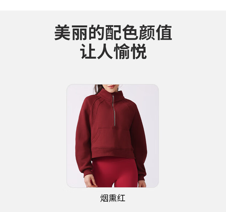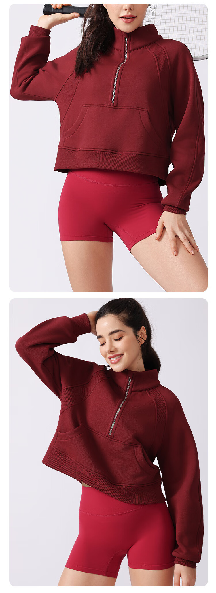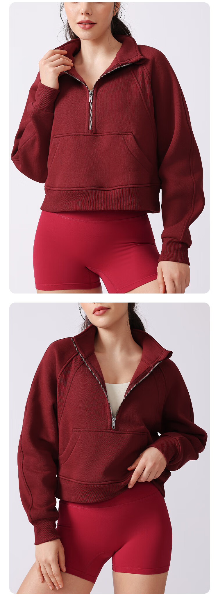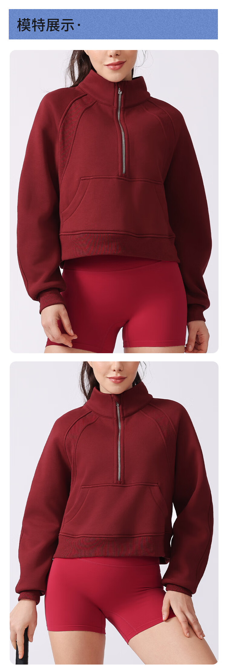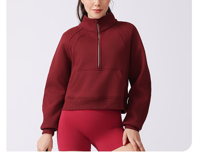 LULUUVTTOH2025 autumn and winter new half-zip yoga wear women's short stand-up collar sweatshirt loose fitness training Pilates jacket smoked red S
