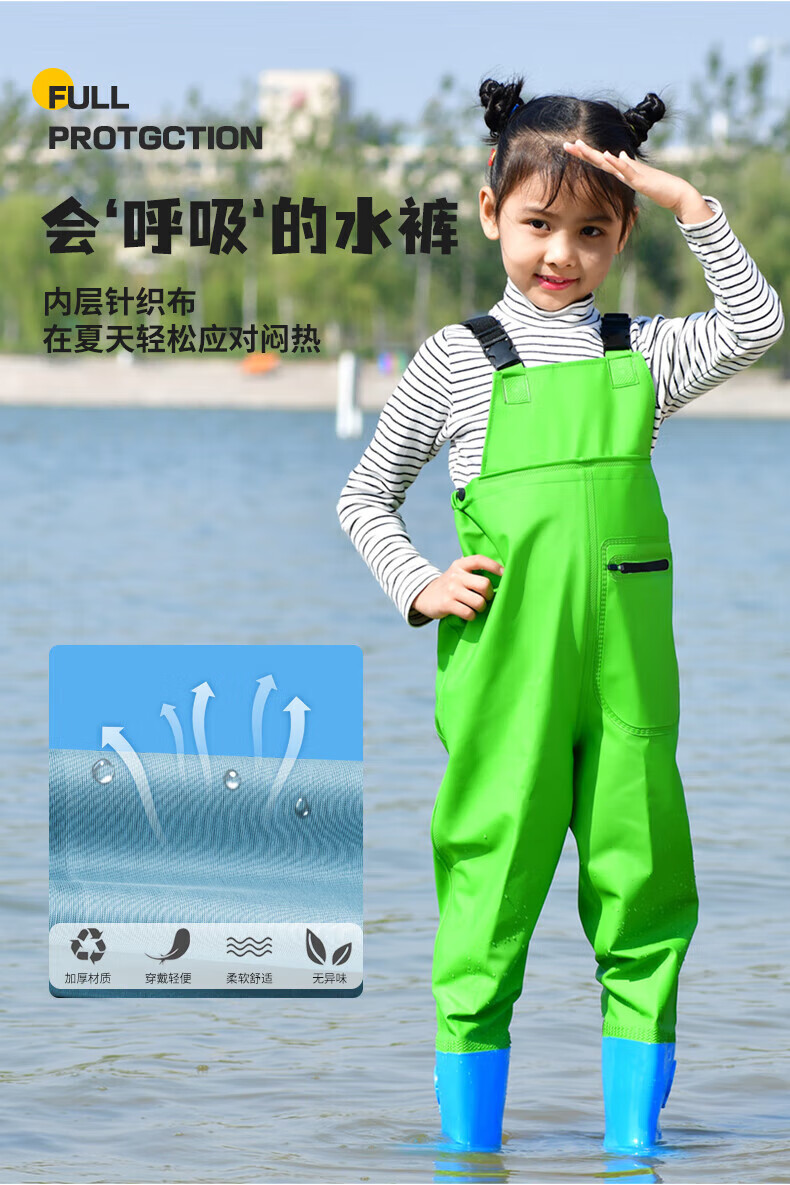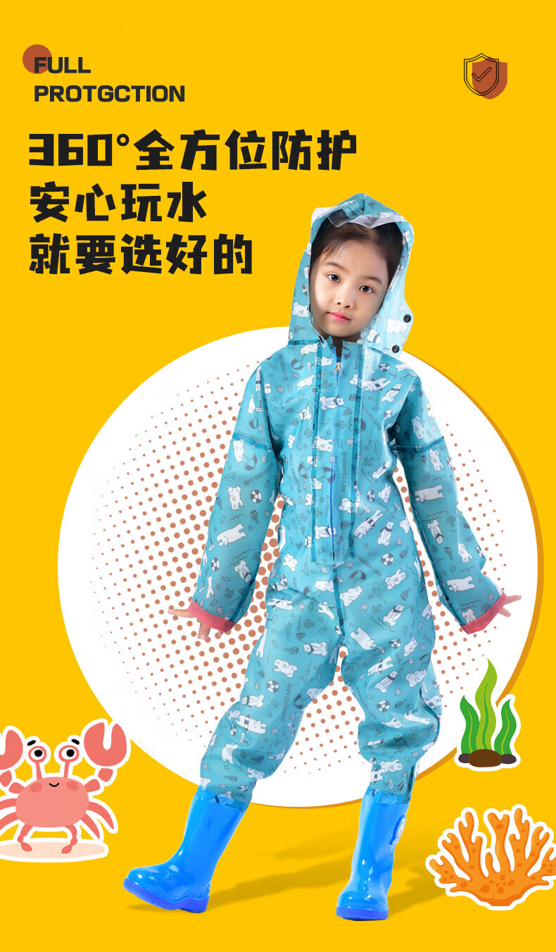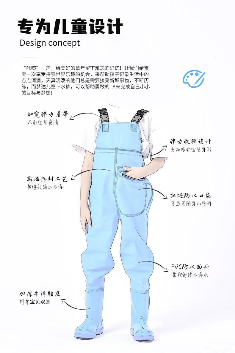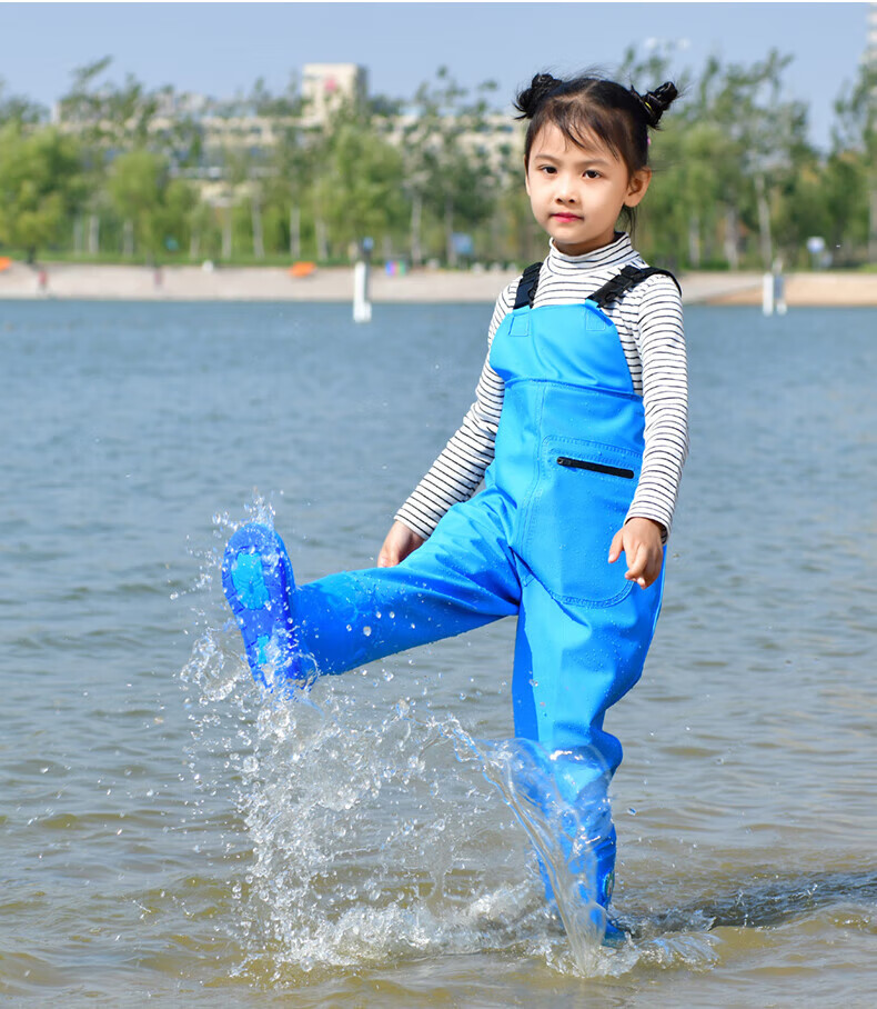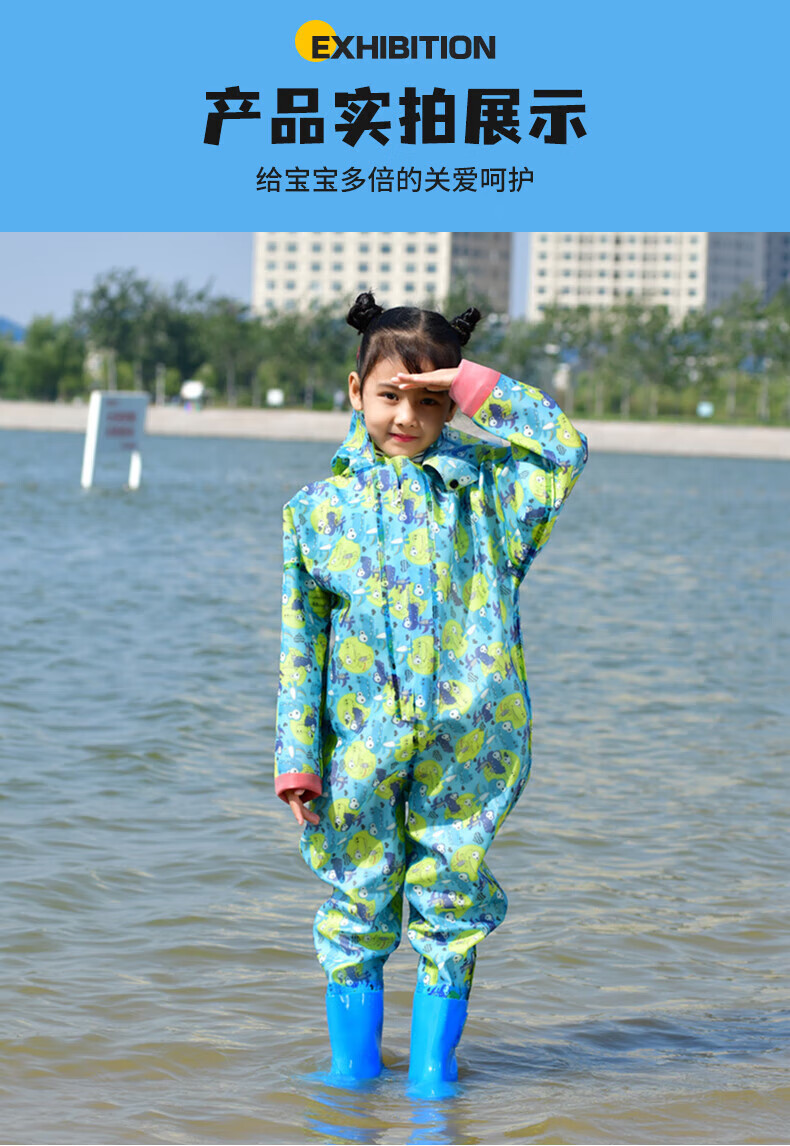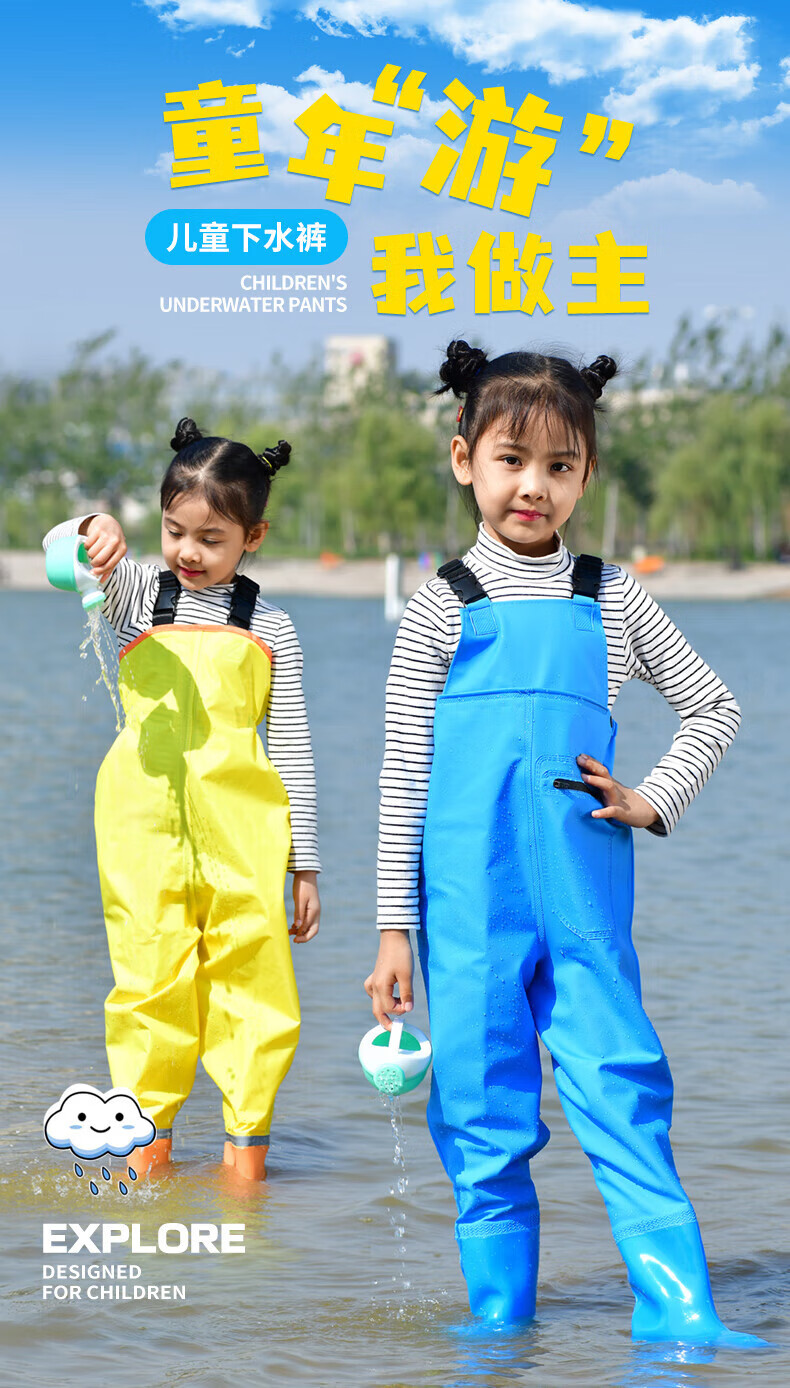 Miaopule children's water play one-piece waders, kindergarten waterproof clothes, sea fishing equipment for men and women, fishing wading rain pants, beach, children's yellow overalls thickened special model - with 40 size 22 shoes, inner length 13cm