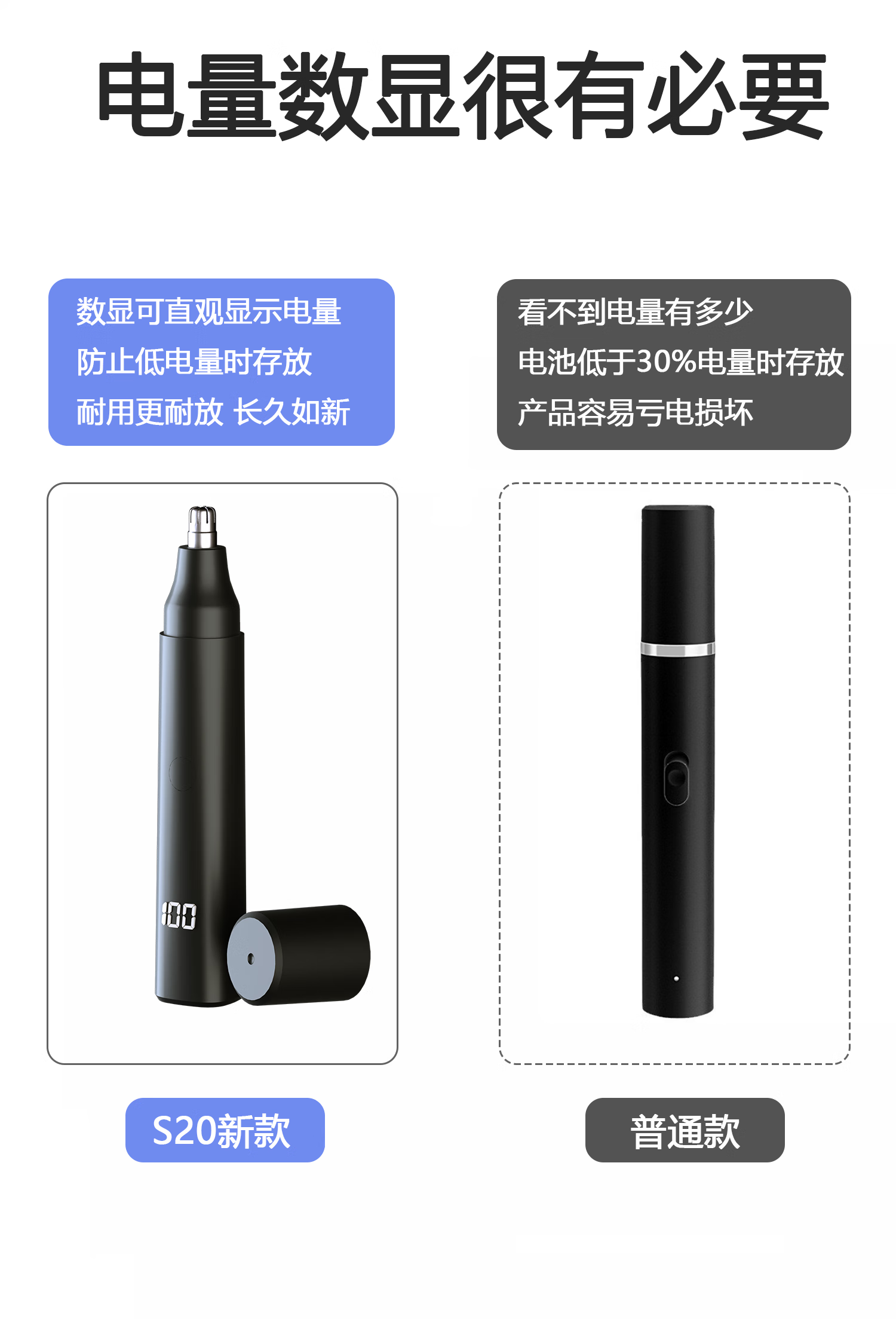 Mairuiya German quality rechargeable nose hair trimmer for men, painless and washable ear hair trimmer, rechargeable electric nose hair trimmer as a gift for boys, elegant black digital display upgraded model, upgraded power model