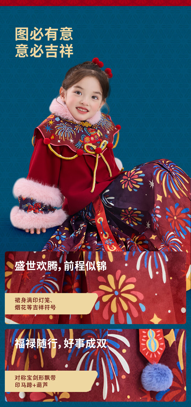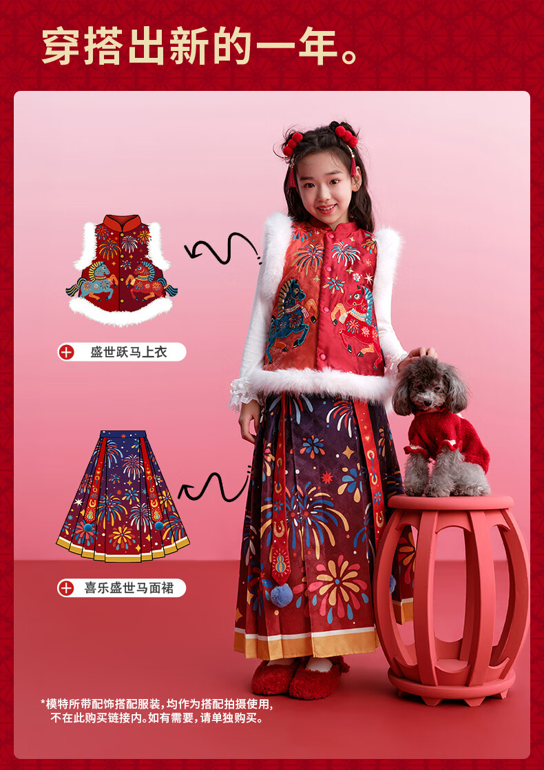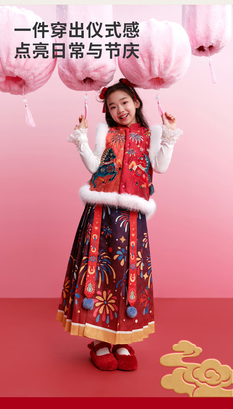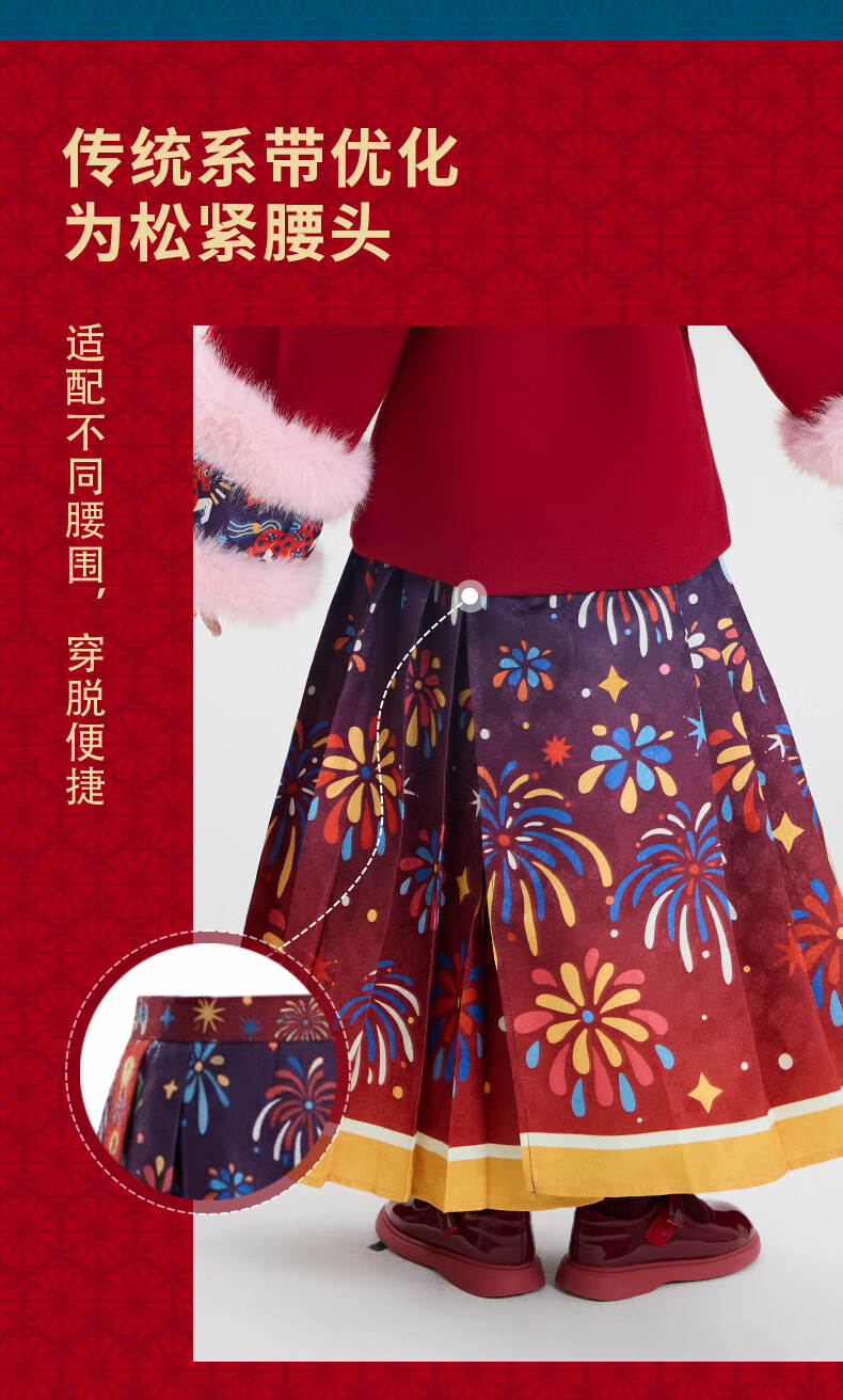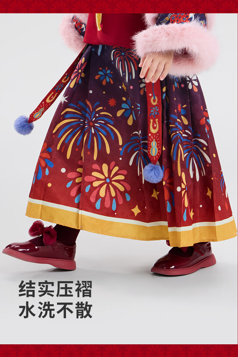 New year's clothing Dong Xuan's same style children's clothing horse-faced skirt winter clothing new girls Chinese style thickened happy prosperous horse-faced skirt new year's clothing red 140