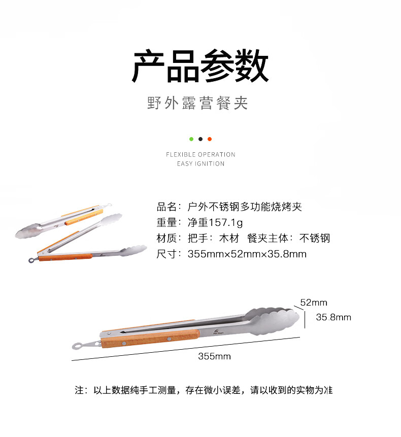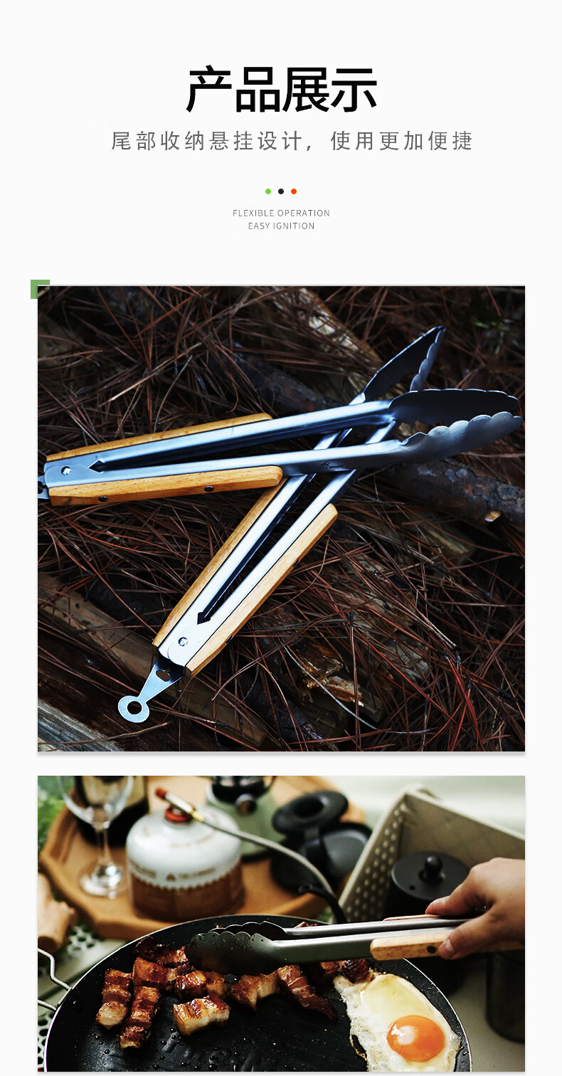 CLCEY retro outdoor stainless steel barbecue clip wooden handle Korean cuisine barbecue kitchen fried steak Japanese food clip