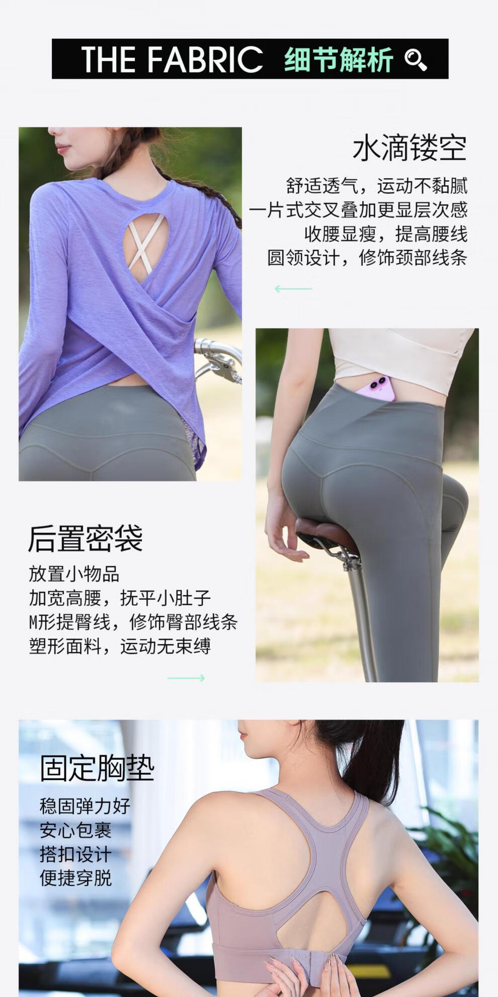 Best Velvet Cycling Suit Women's Long Sleeve Autumn Thin Fashionable Back Yoga Pilates Set Quick-Drying Fitness Suit Dark Purple Two-piece Set (Black Pants) S
