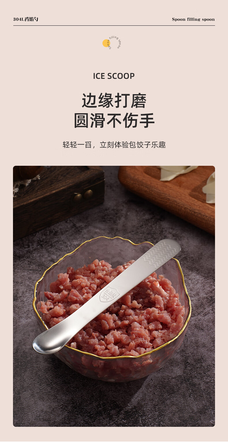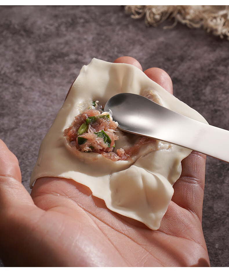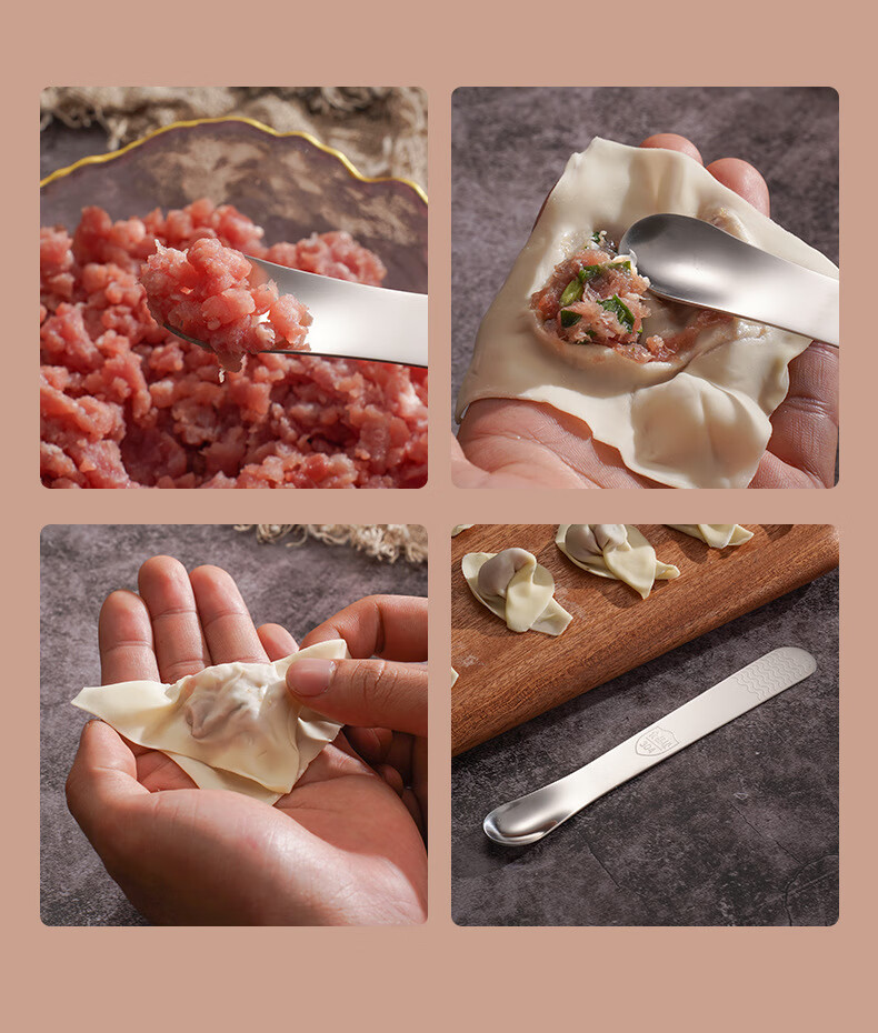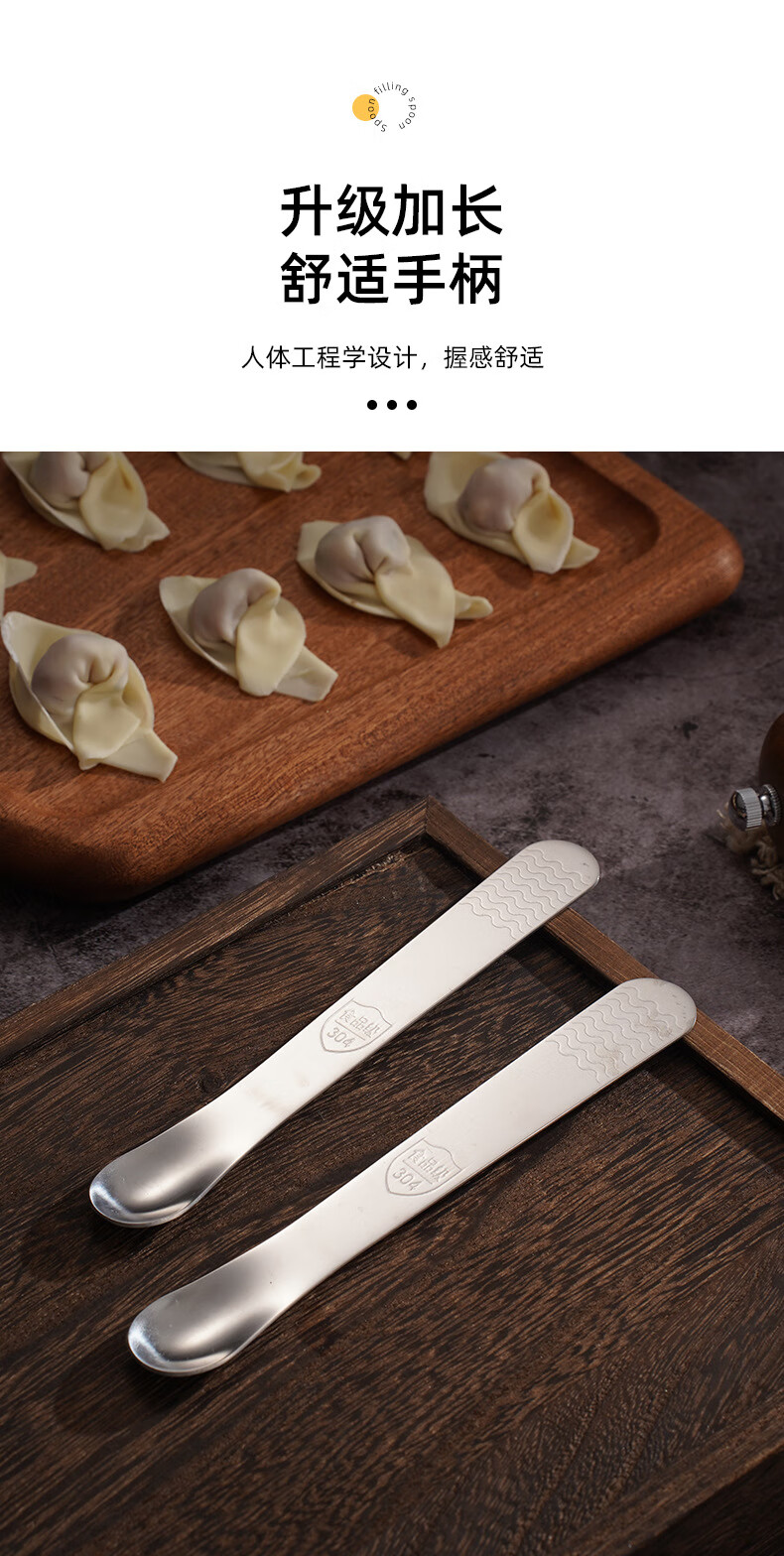 Huisha 304 stainless steel dumpling spoon filling stirrer flat spoon filling spoon household dumpling making wonton spoon tool 304 double-headed dumpling spoon