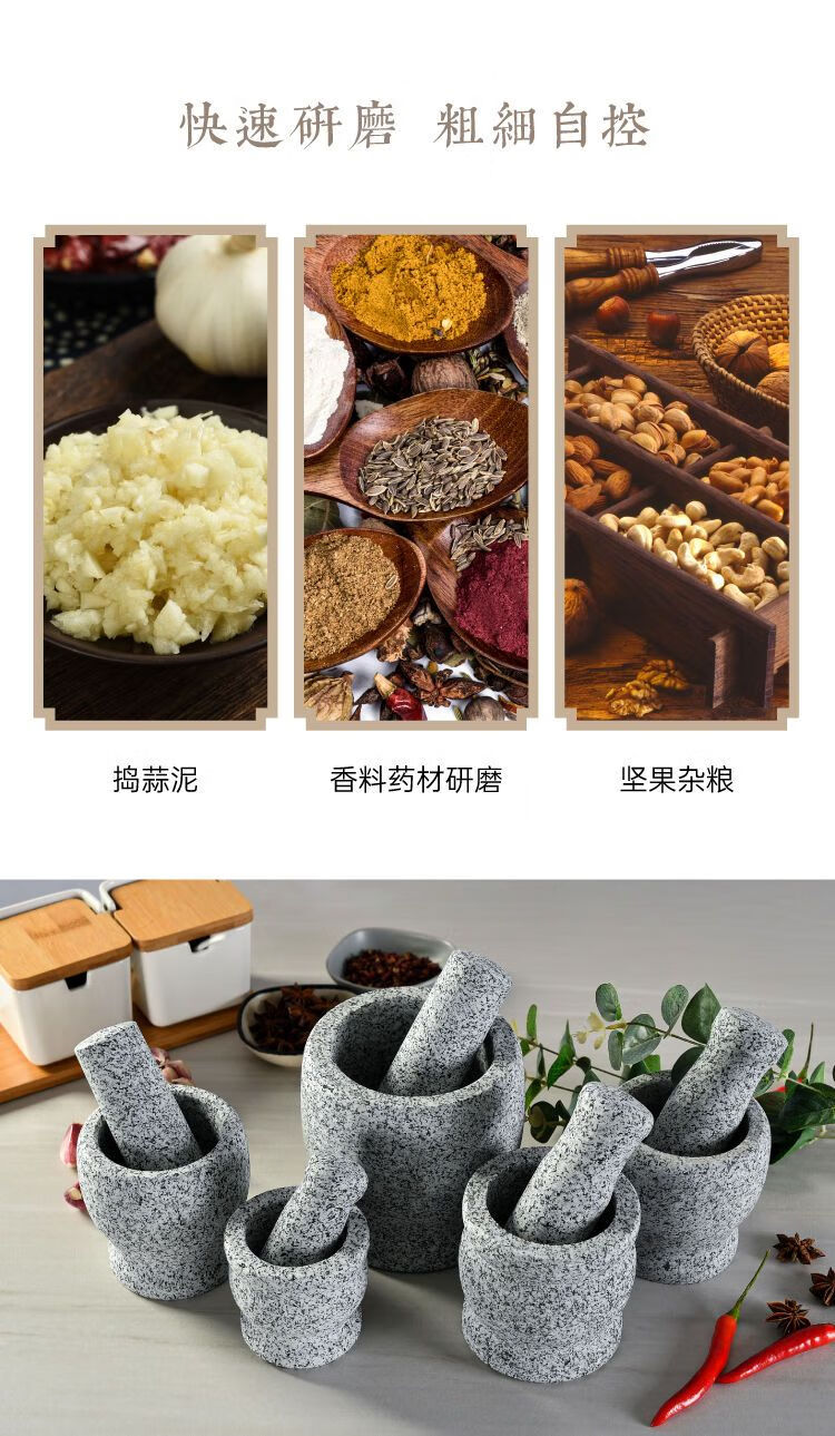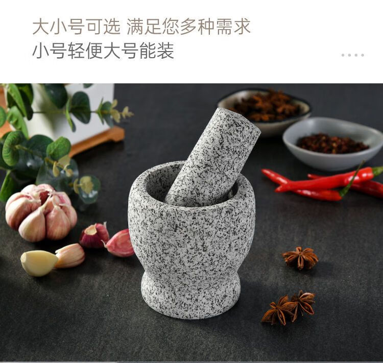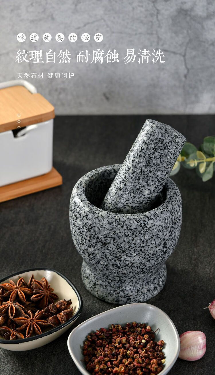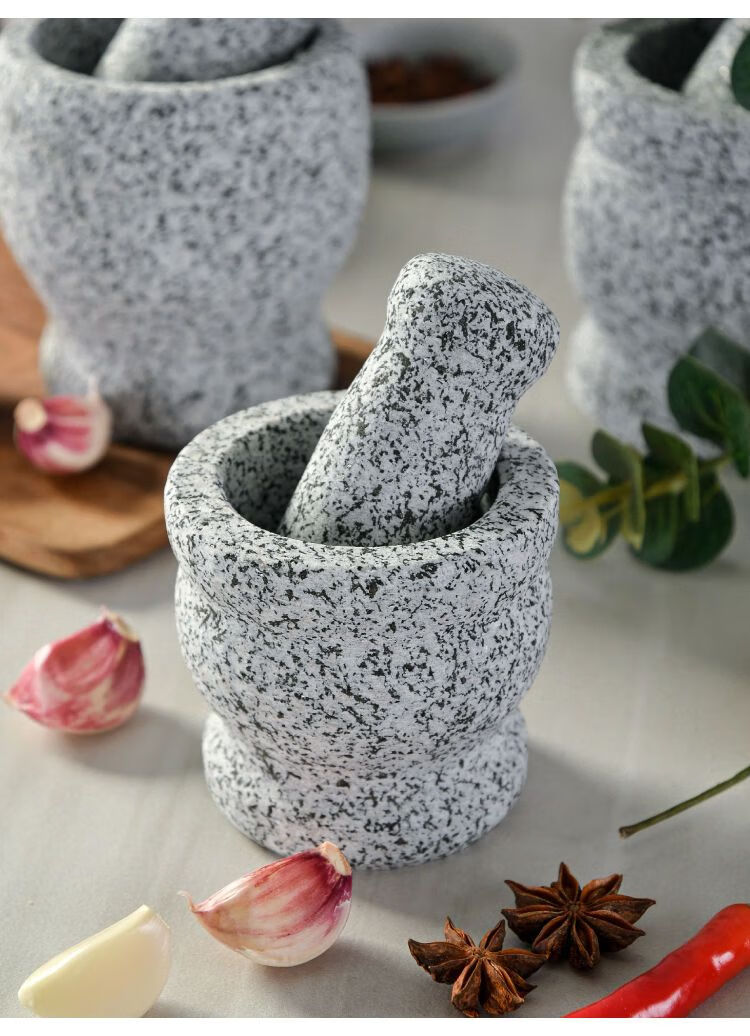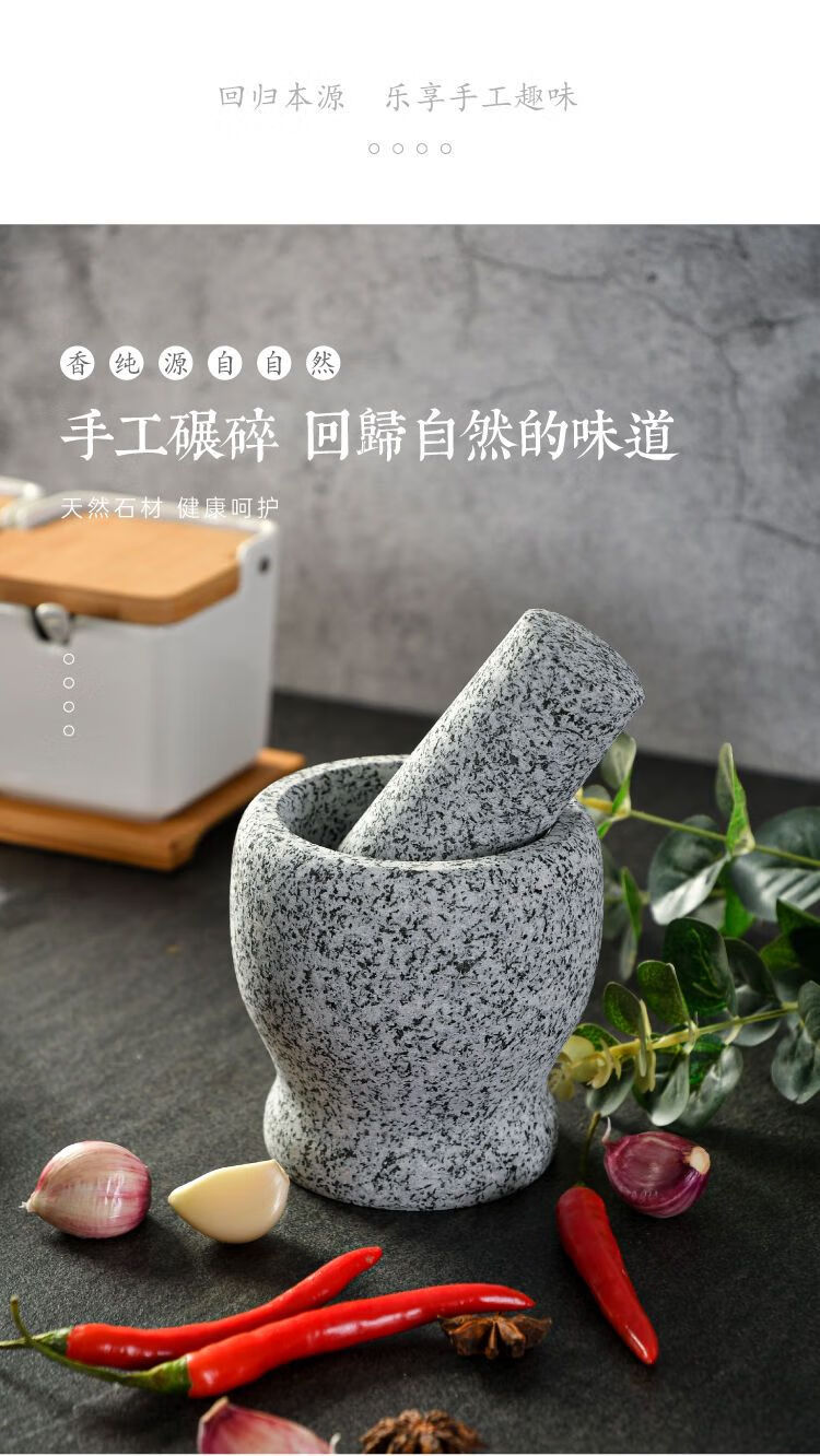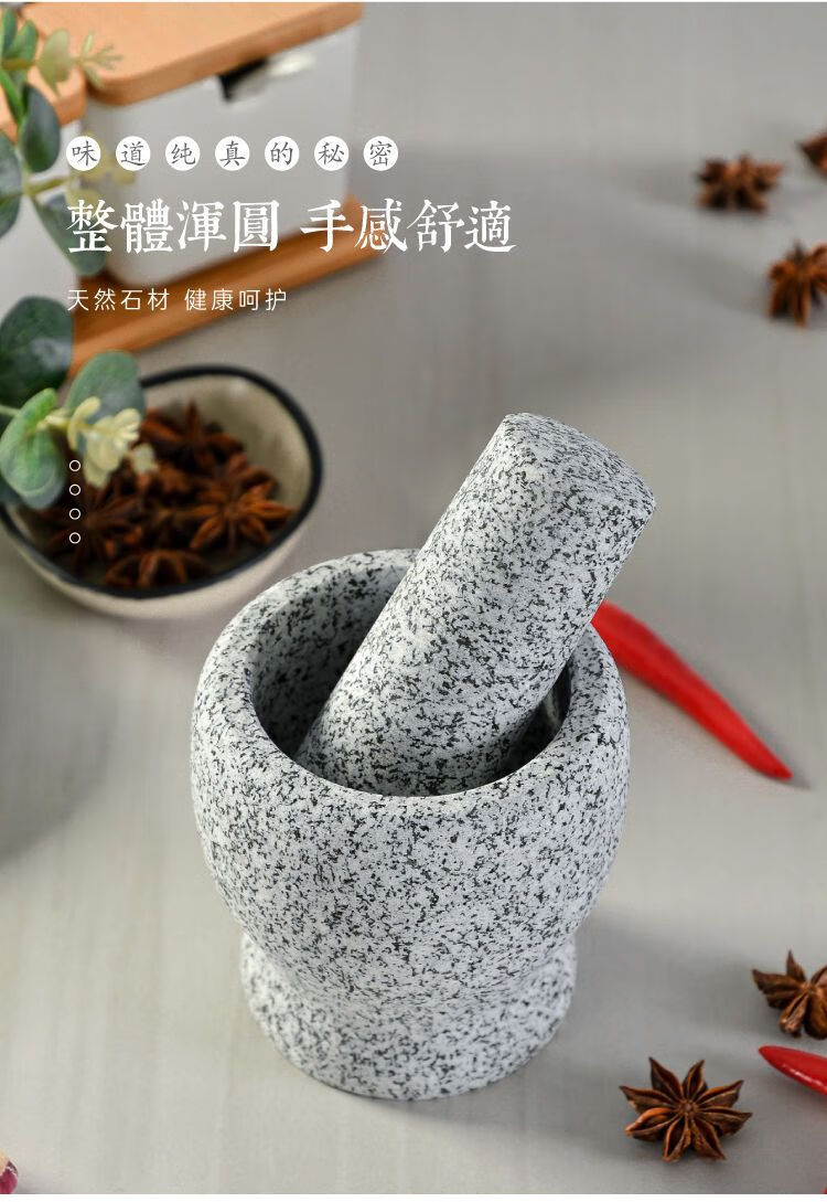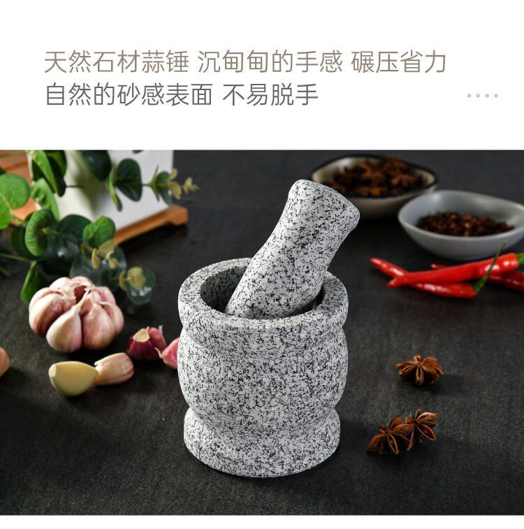 Meikejie natural grinder garlic pounder stone mortar garlic mortar garlic press garlic jar stone household garlic pound stone mortar diameter 8 cm polished garlic pounder handle with lid