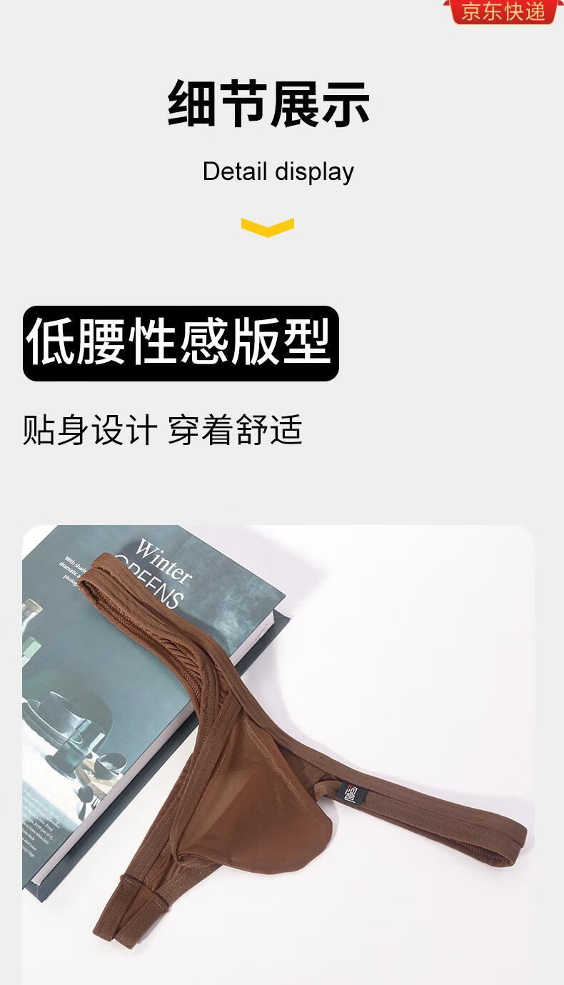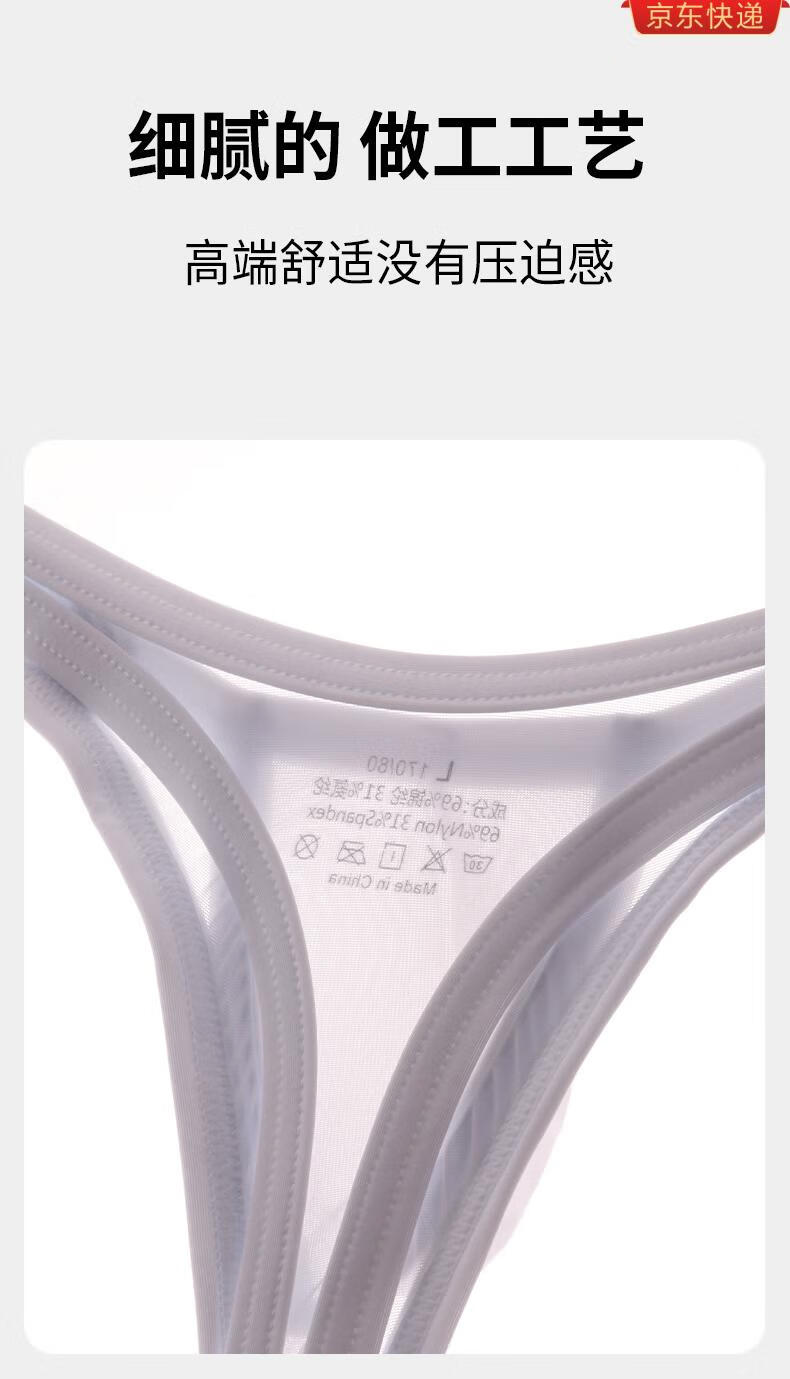 Ayi ice silk single-layer thong single-layer ultra-thin transparent thong with convex and seamless sexy thin strap close-fitting T-pants sexy rose red M