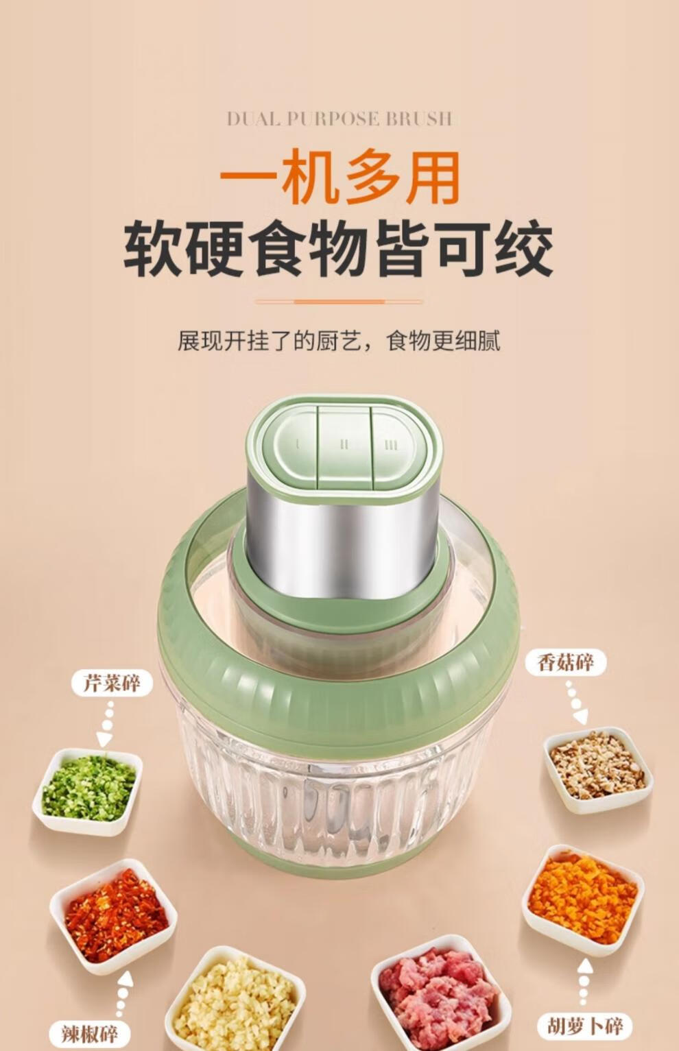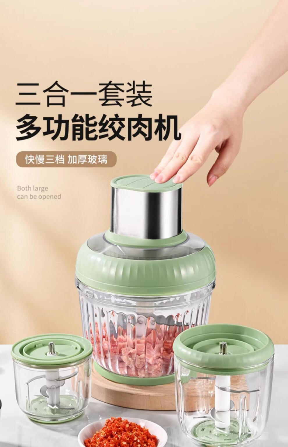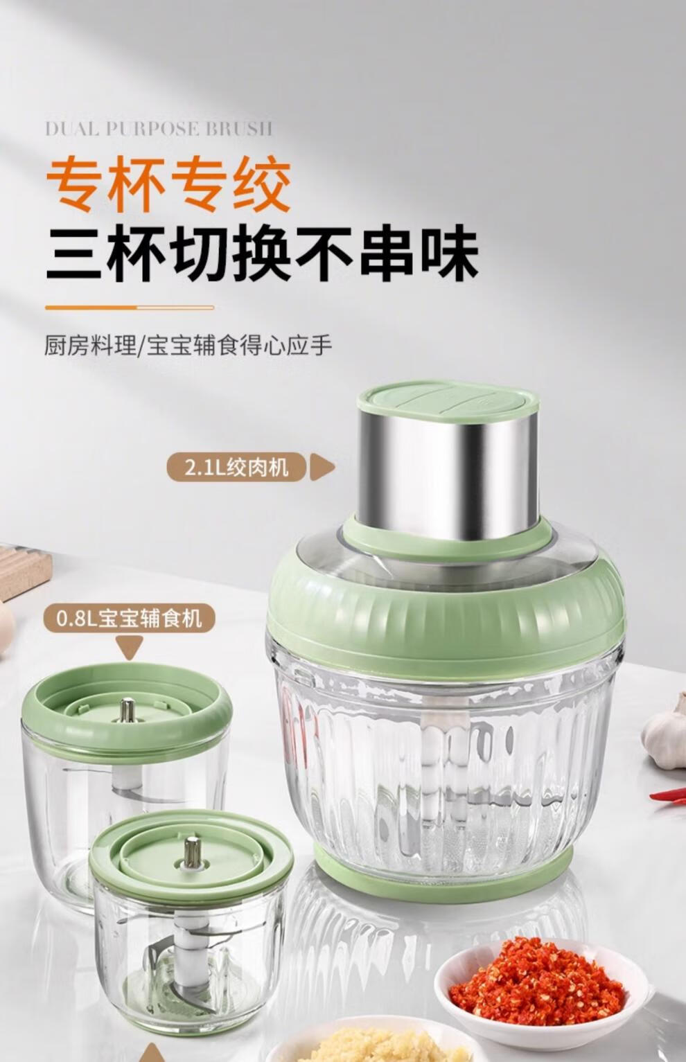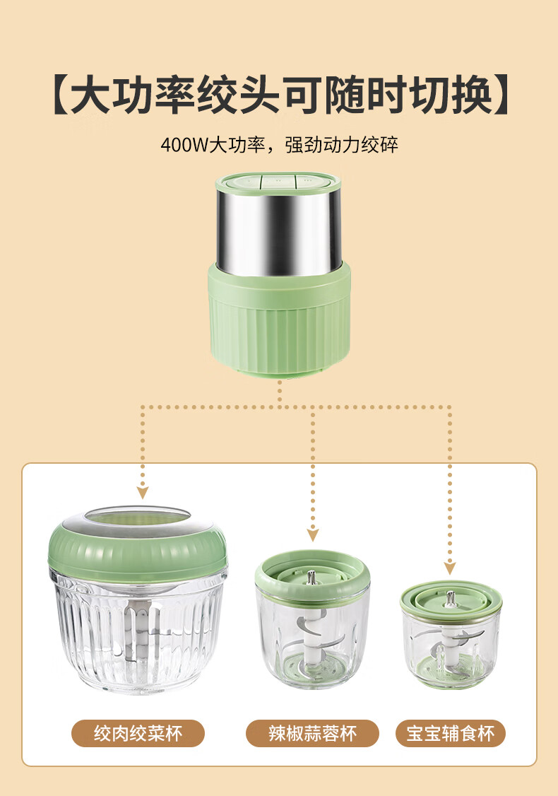 Miao Kitchen Meat Grinder Home Fully Automatic Multi-Function Electric Garlic Artifact Blender Side Food Machine Baby Baby Cooking Three-piece Set 1 Set of Knives