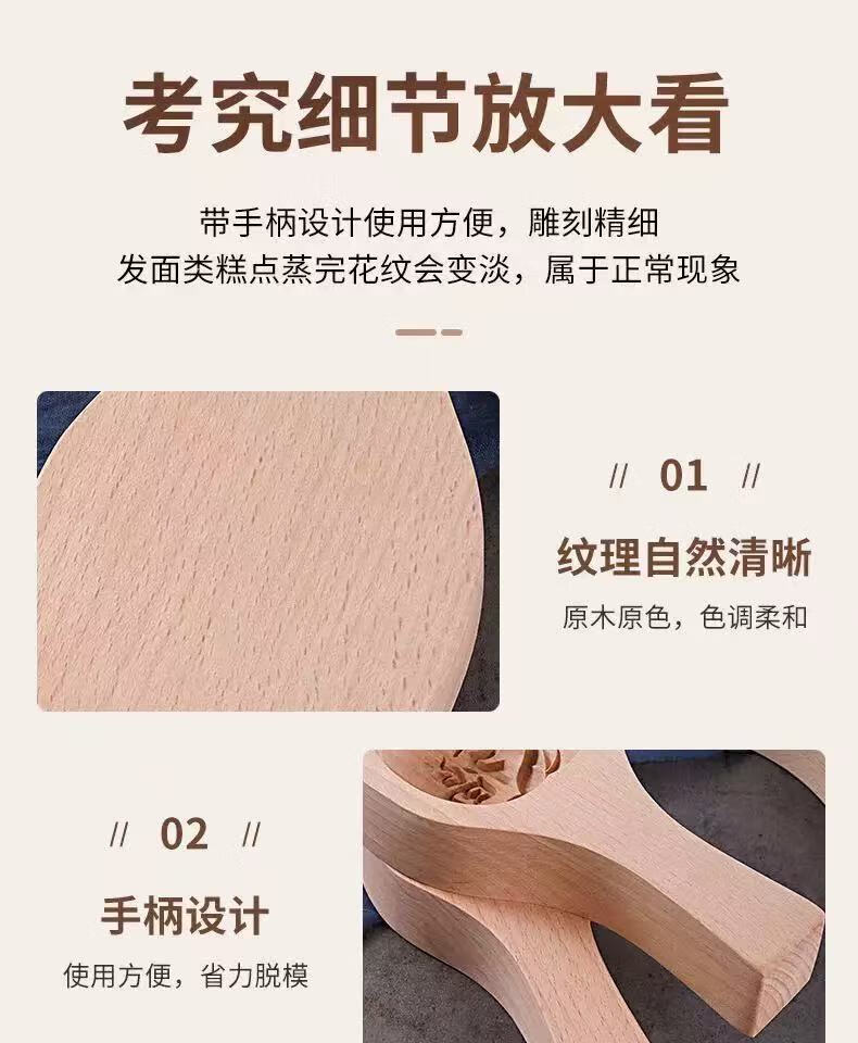 Household vegetable bun mold New Year steamed bun tool household bean paste meat bun wooden flower pastry thickened and deepened large classic bun mold deepened wooden