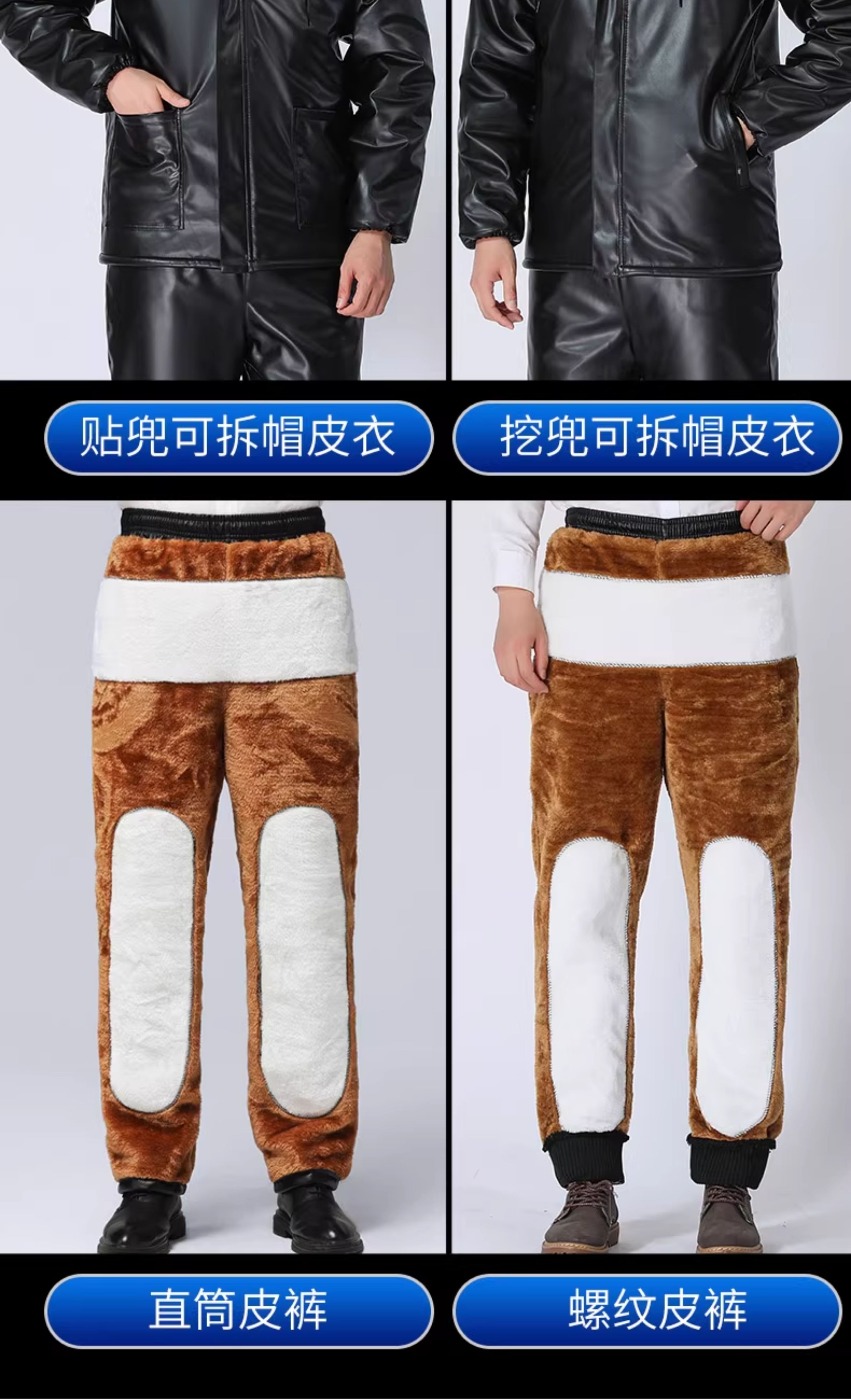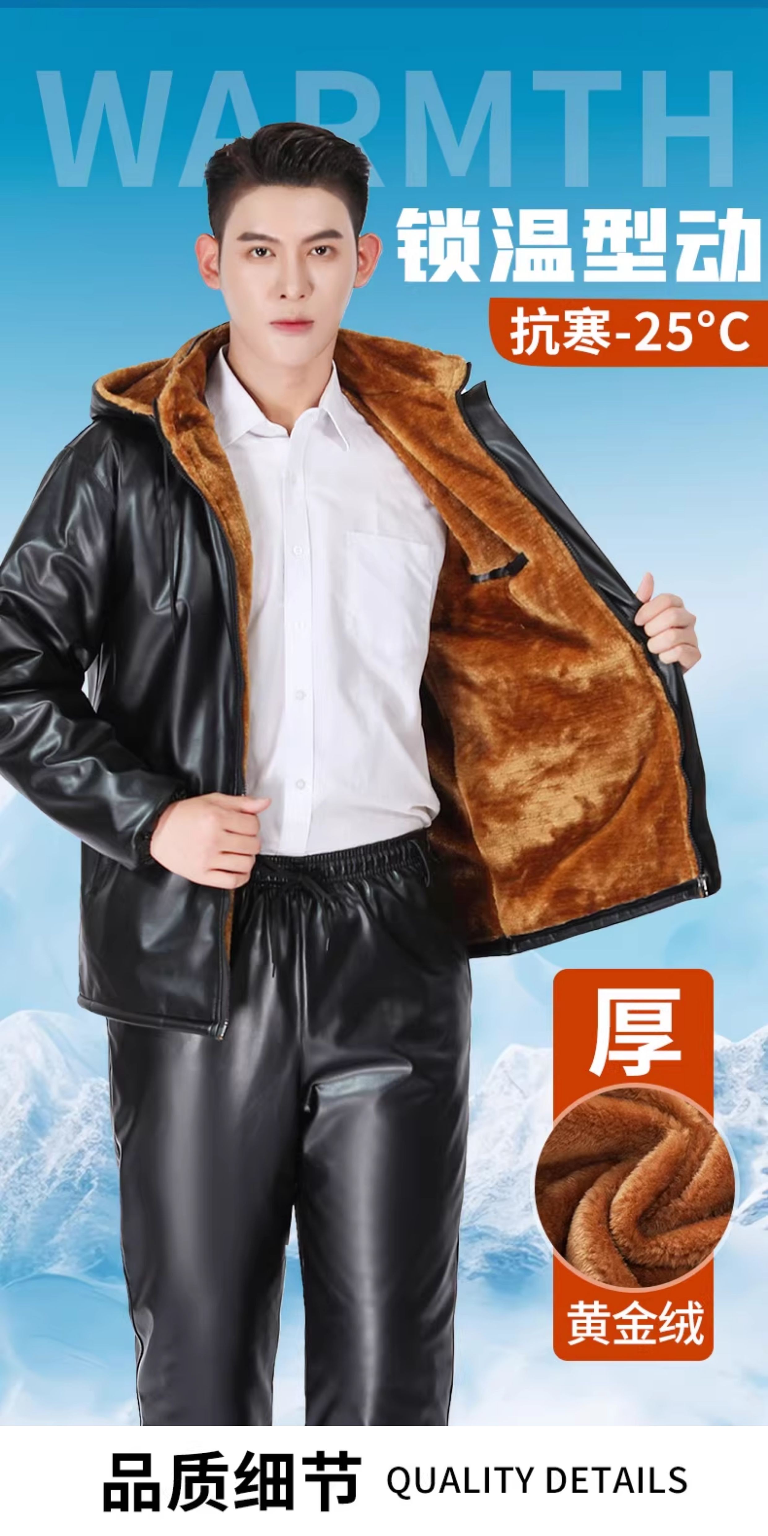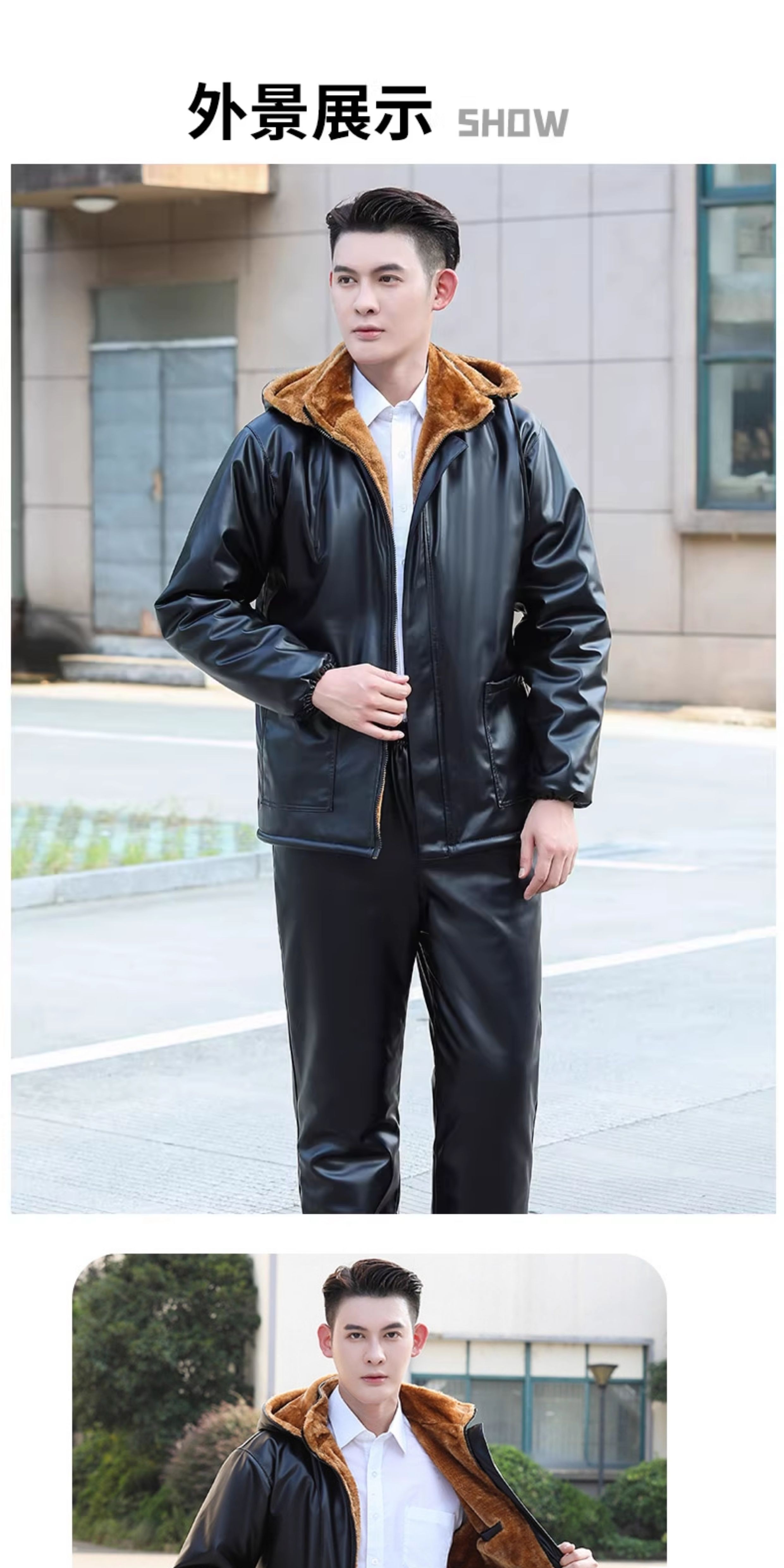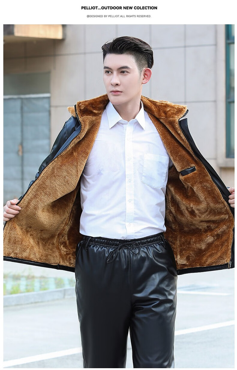 LNGA LANDGRE winter leather men's jacket 2026 new velvet thickened workwear suit oil-proof and waterproof leather jacket and leather pants suit for men gold velvet straight pants pocket suit 4XL large size recommended weight 165-200Jin Jin equals 0.5 kg