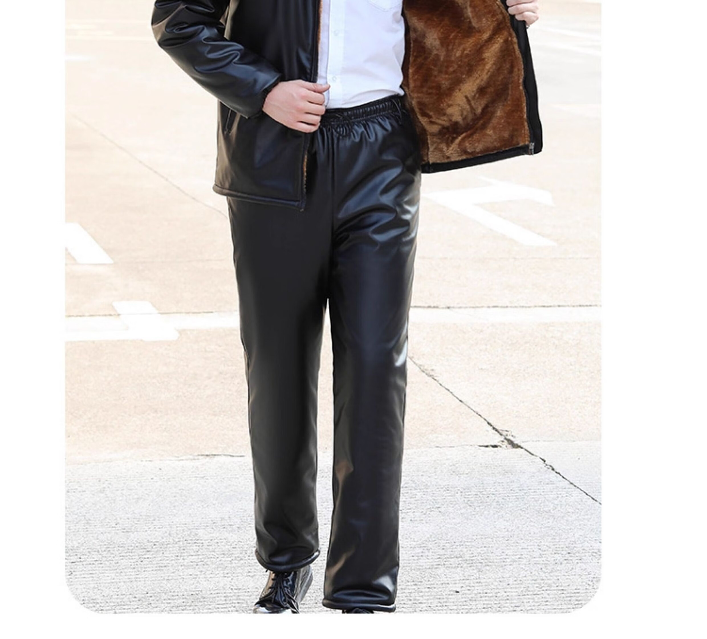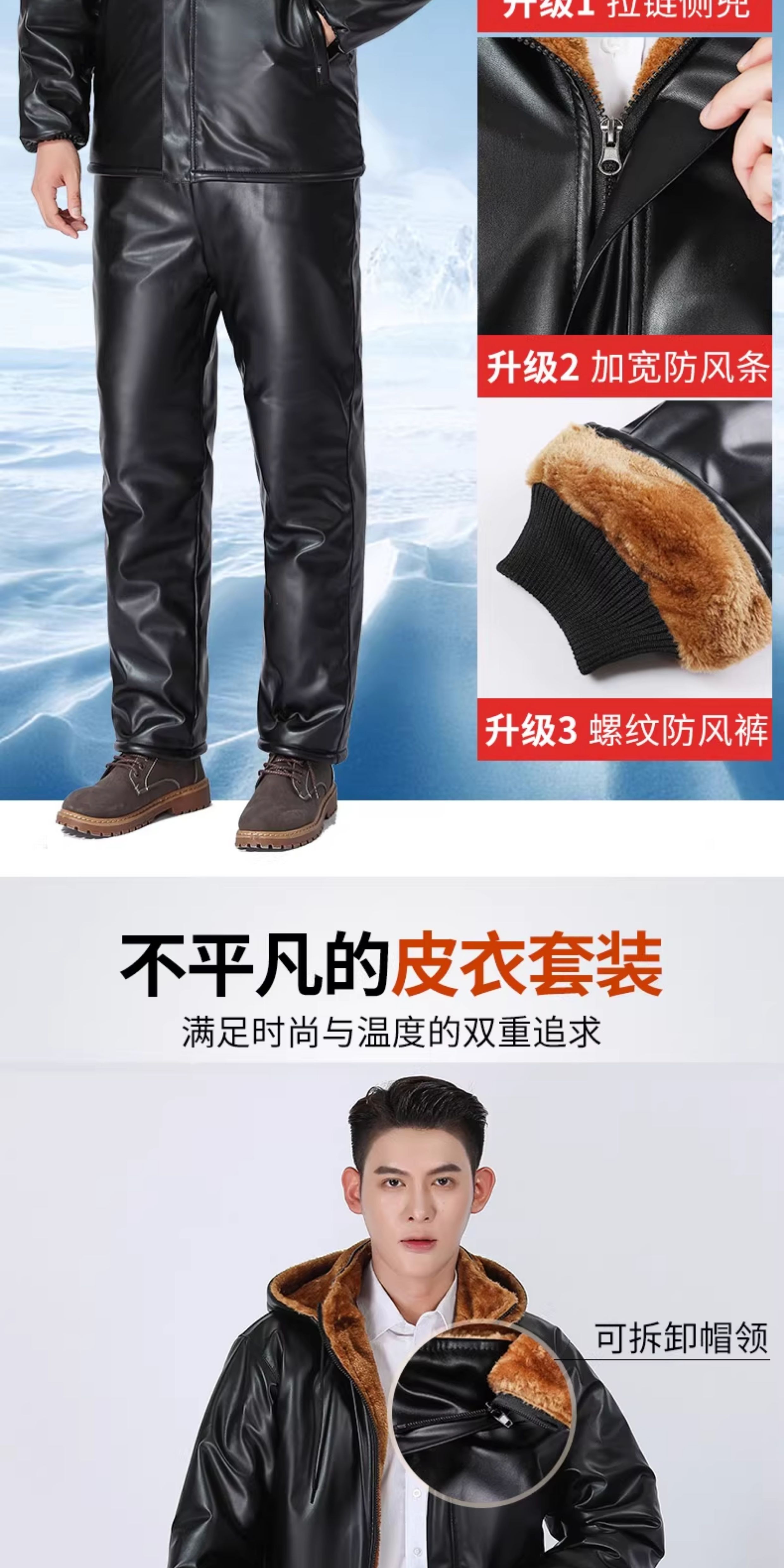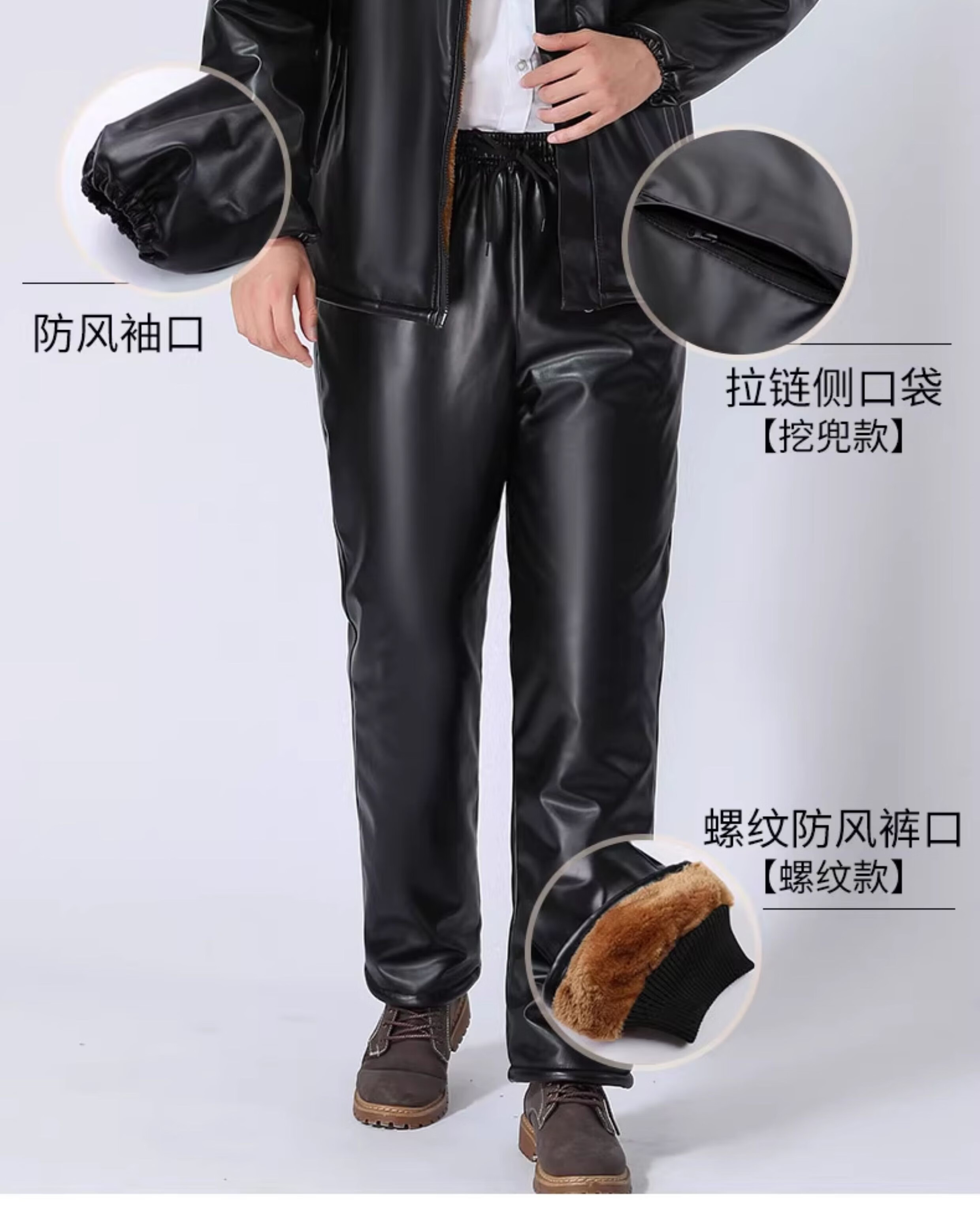 LNGA LANDGRE winter leather men's jacket 2026 new velvet thickened workwear suit oil-proof and waterproof leather jacket and leather pants suit for men gold velvet straight pants pocket suit 4XL large size recommended weight 165-200Jin Jin equals 0.5 kg