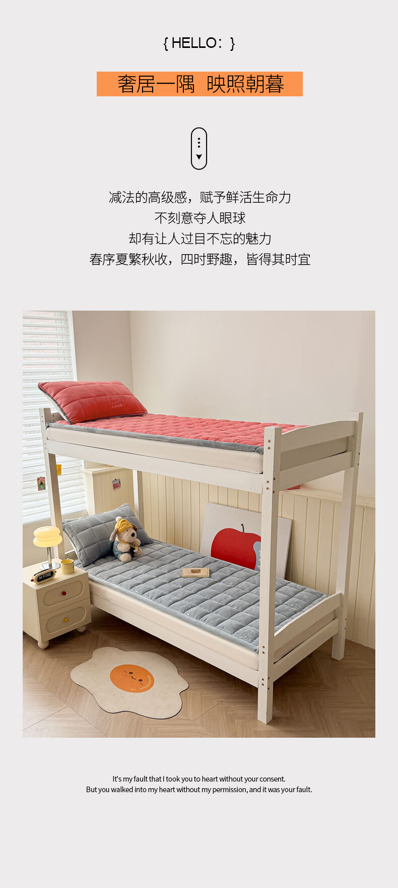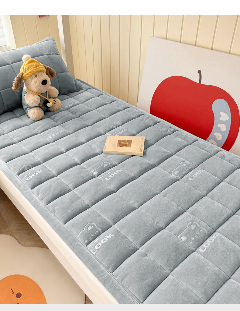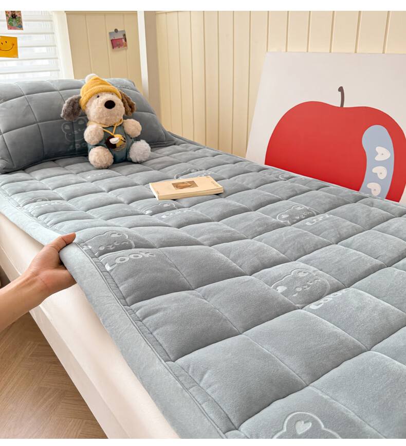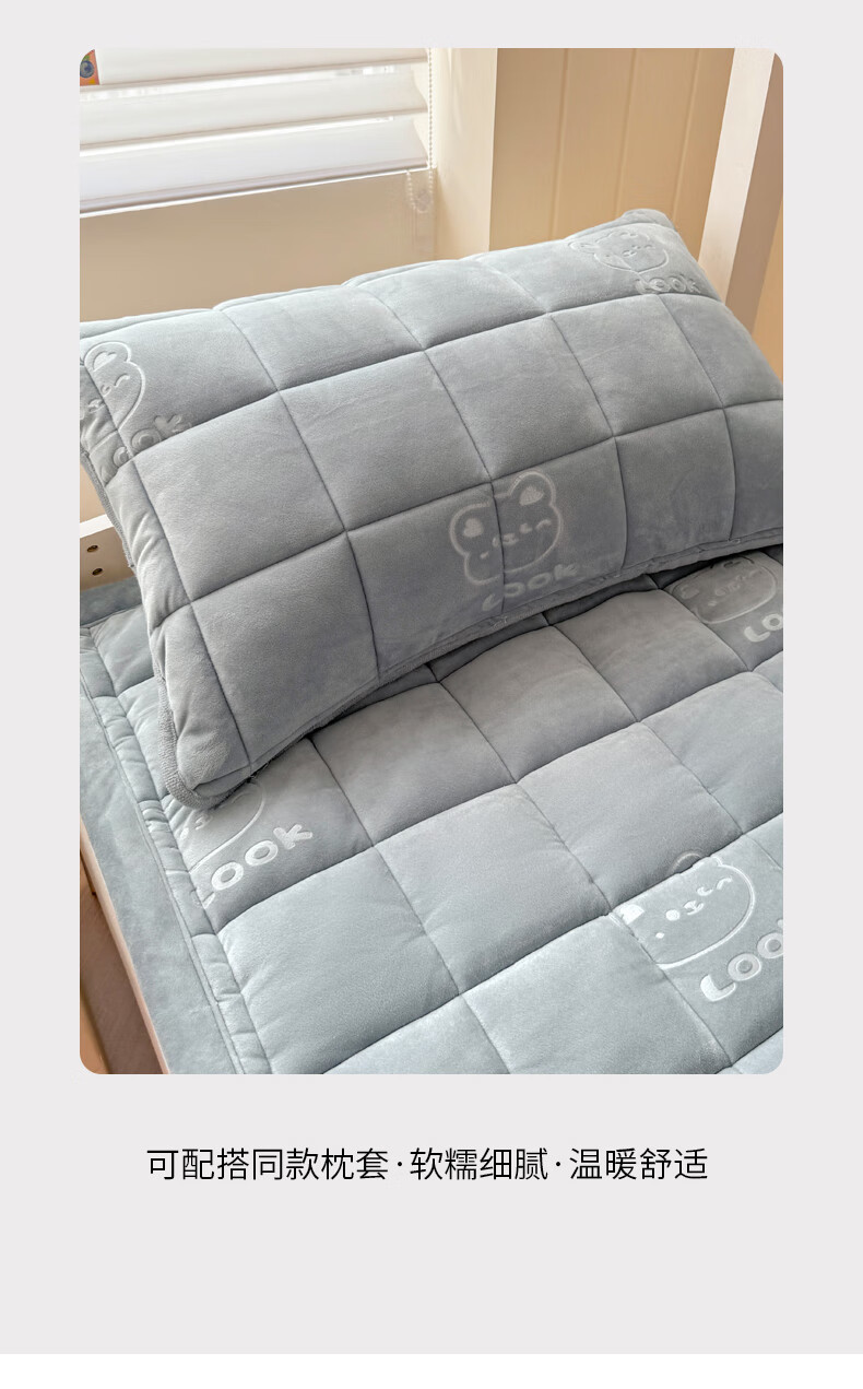 Red bean thickened carved milk velvet mattress soft cushion for home winter thickened coral velvet thin mattress dormitory mattress pad look bear mattress-pink Class A naked sleeping grade super thick baby velvet 180*200cm mattress + 2 pillowcases