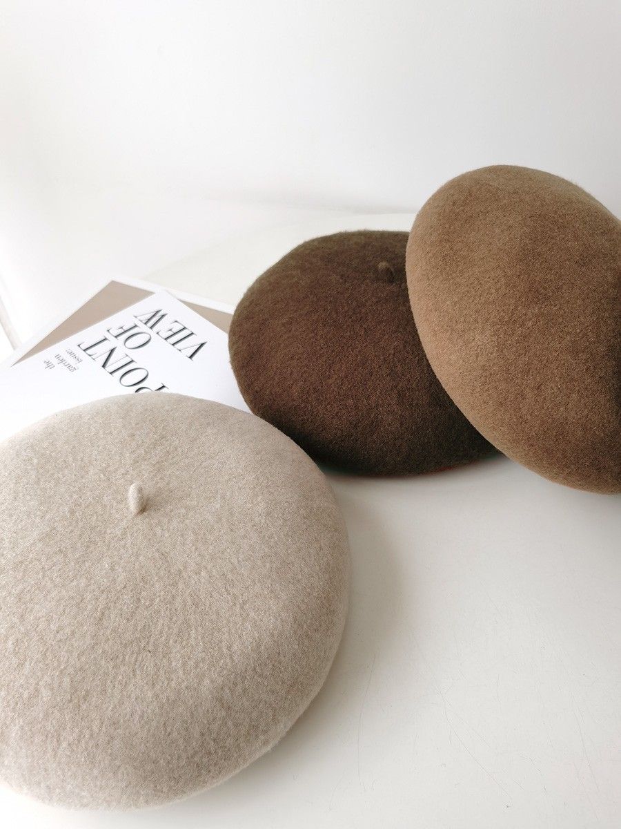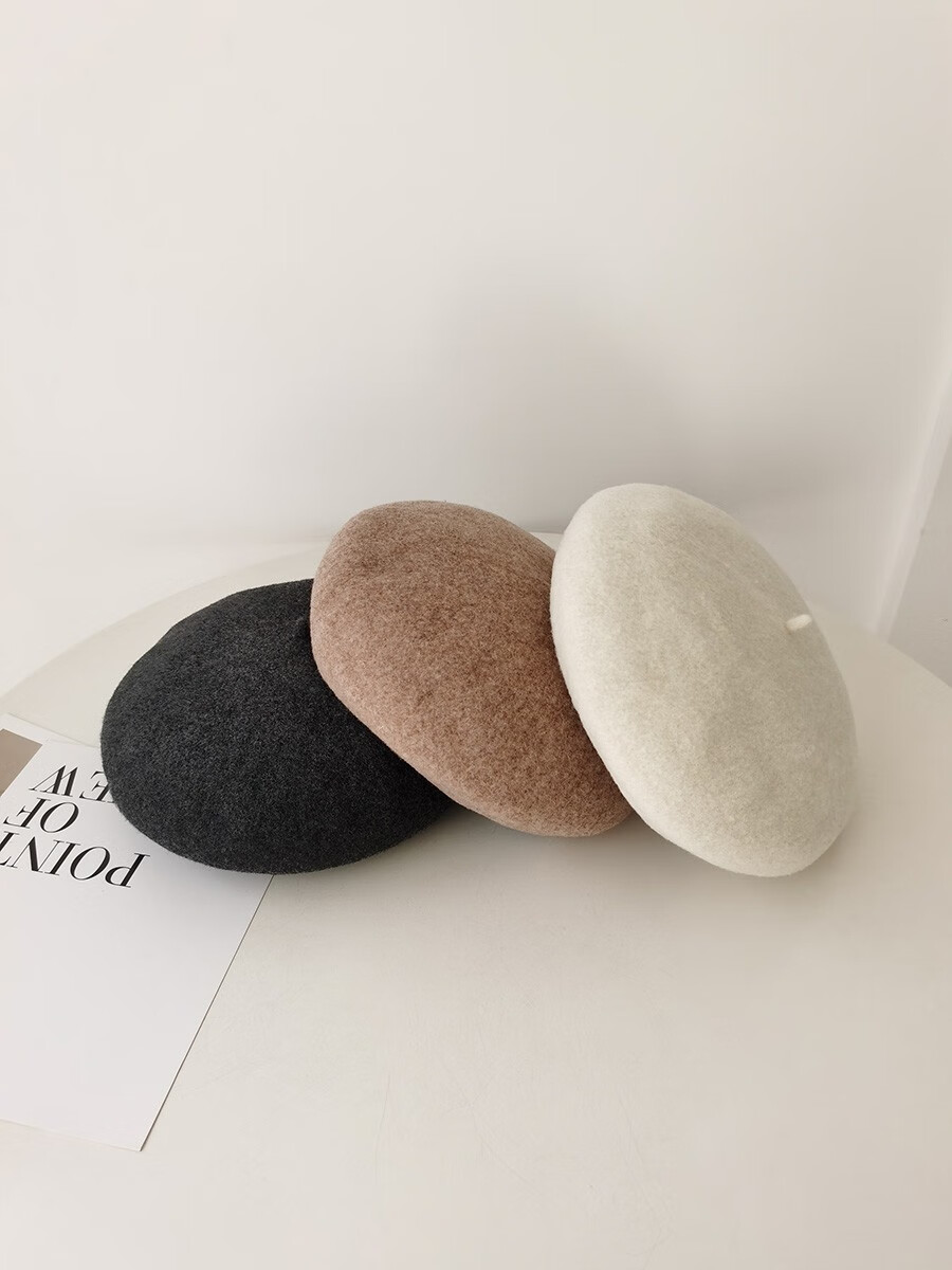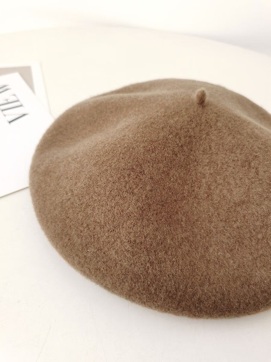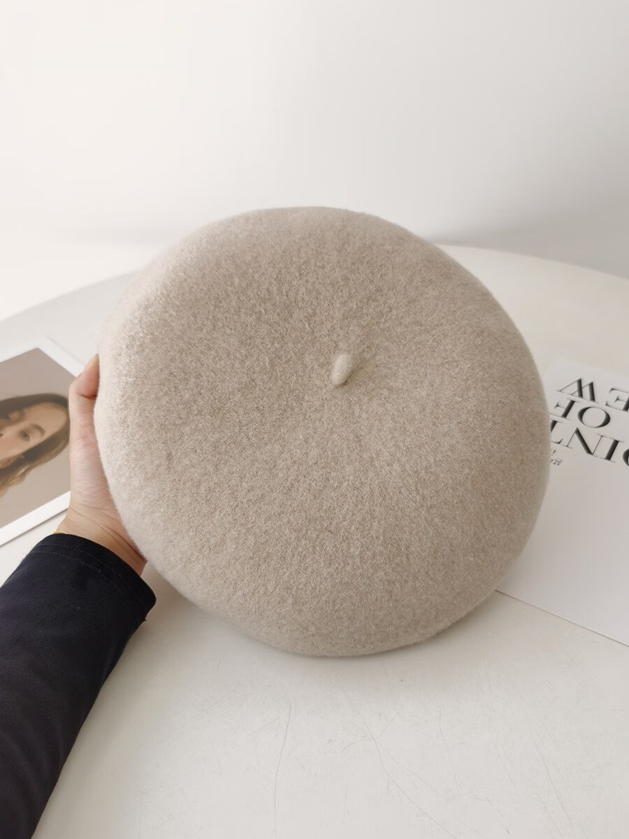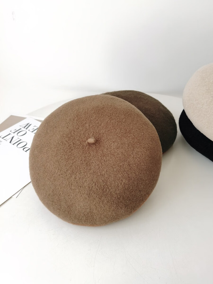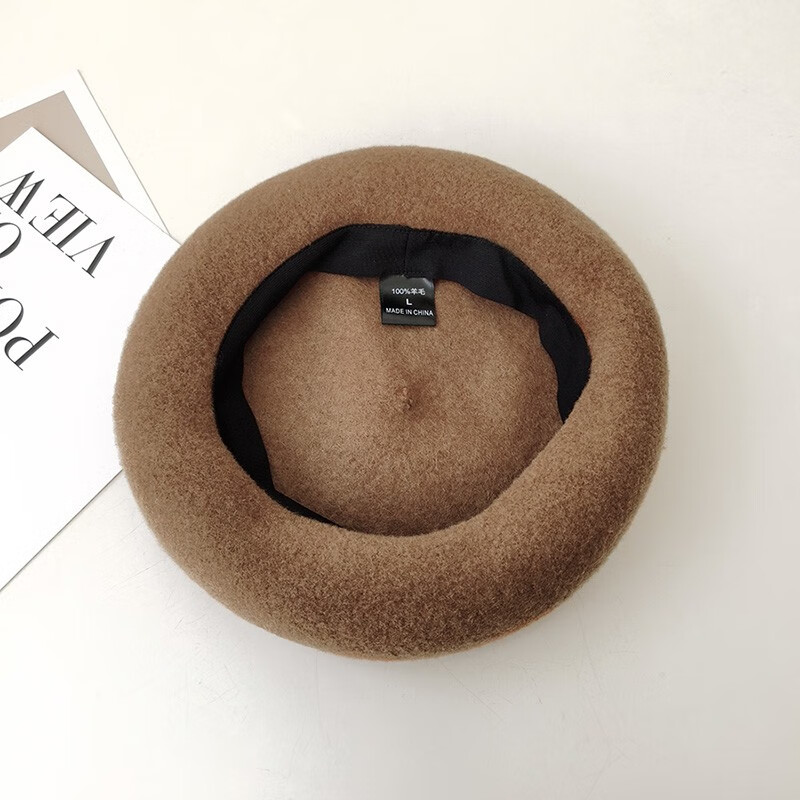 Hanqing mid-summer large version autumn and winter woolen three-dimensional beret women's Japanese high-end large head circumference painter's hat bud hat fashion dark brown L elastic code
