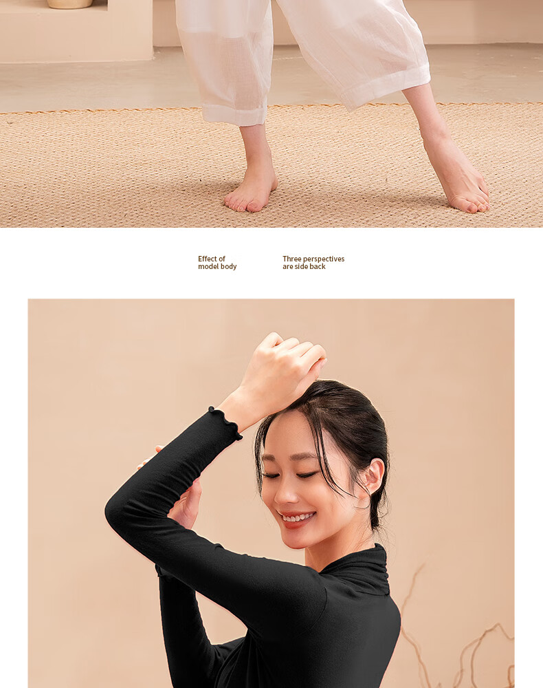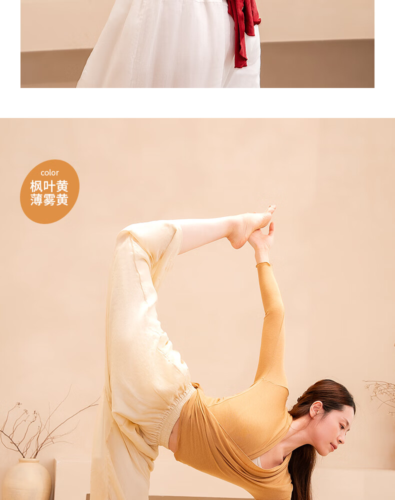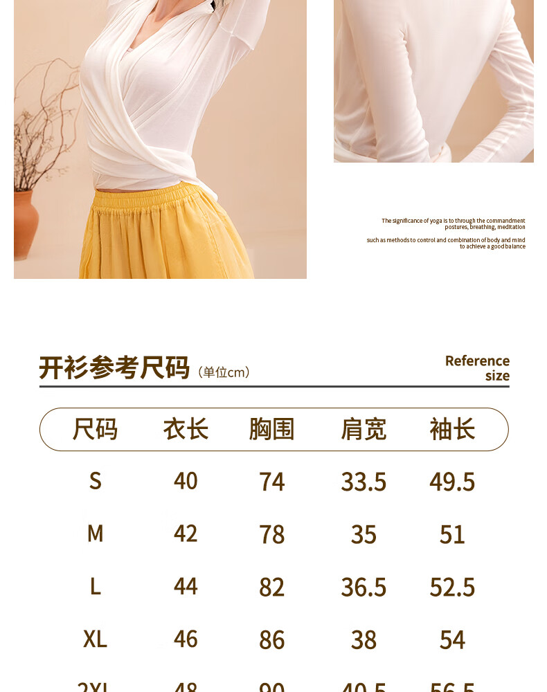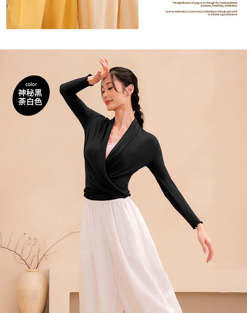 Meisu Yoga outer cover-up women's strappy Pilates autumn and winter Zen fitness top thin bloomers Mysterious black + tea white suit S
