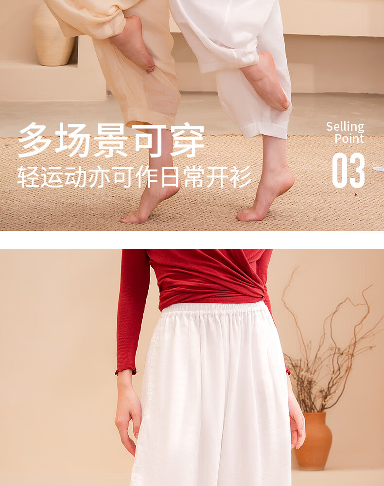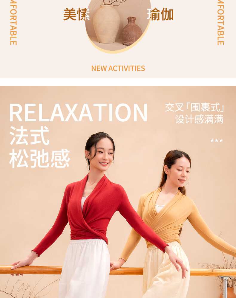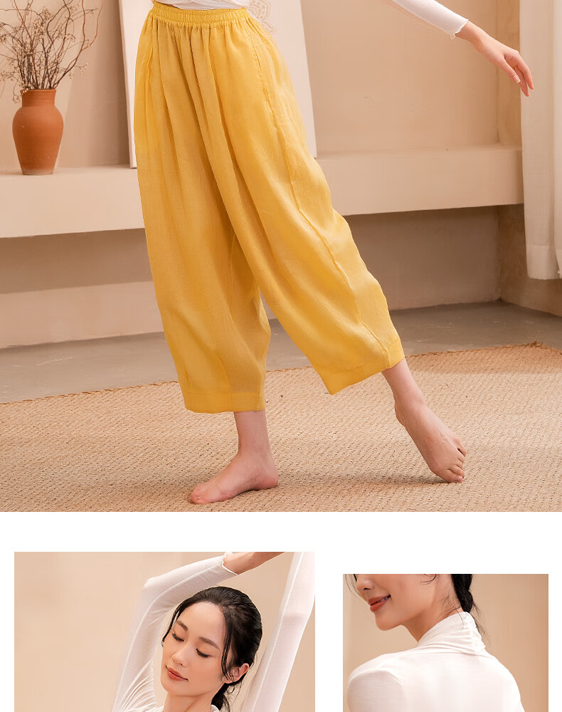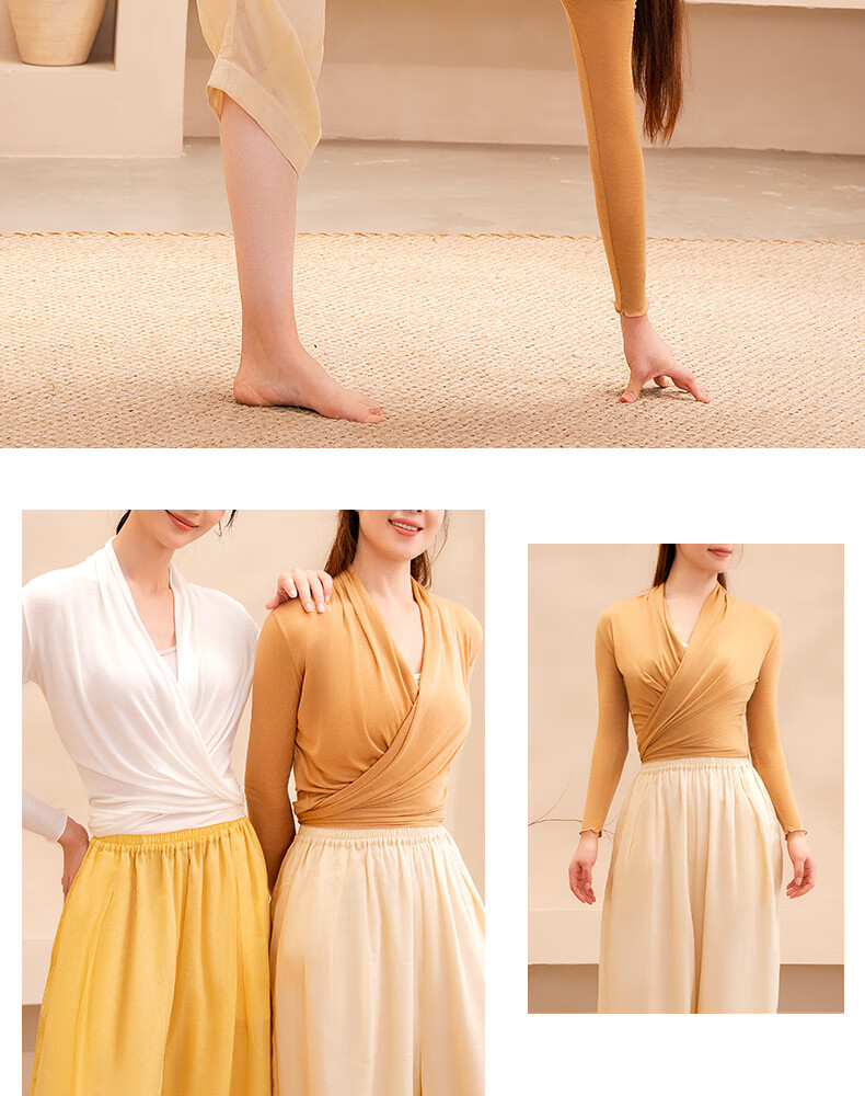 Meisu Yoga outer cover-up women's strappy Pilates autumn and winter Zen fitness top thin bloomers Mysterious black + tea white suit S