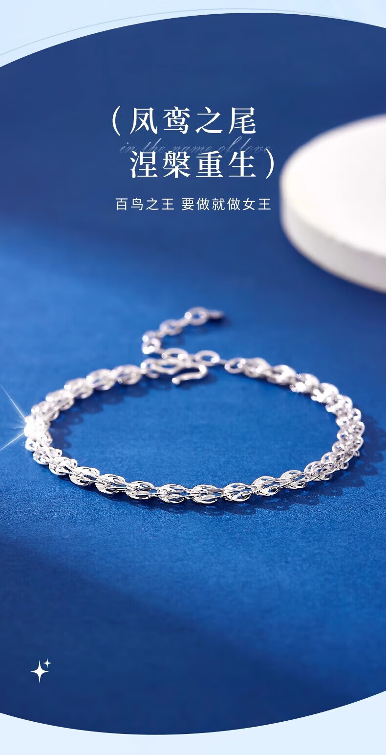Lao Fengxiang PT950 Platinum Phoenix Tail Bracelet 2025 New Hand Jewelry Platinum Valentine's Day Birthday Gift for Girlfriend and Wife Platinum Phoenix Tail Bracelet About 2.6g Brand Gift Box