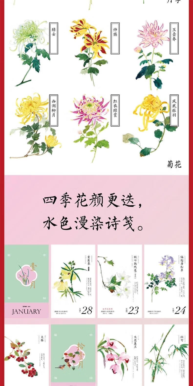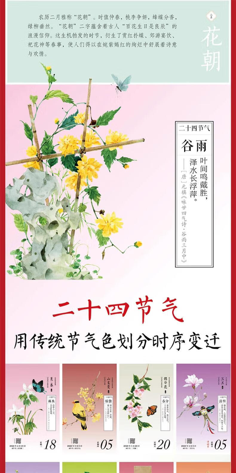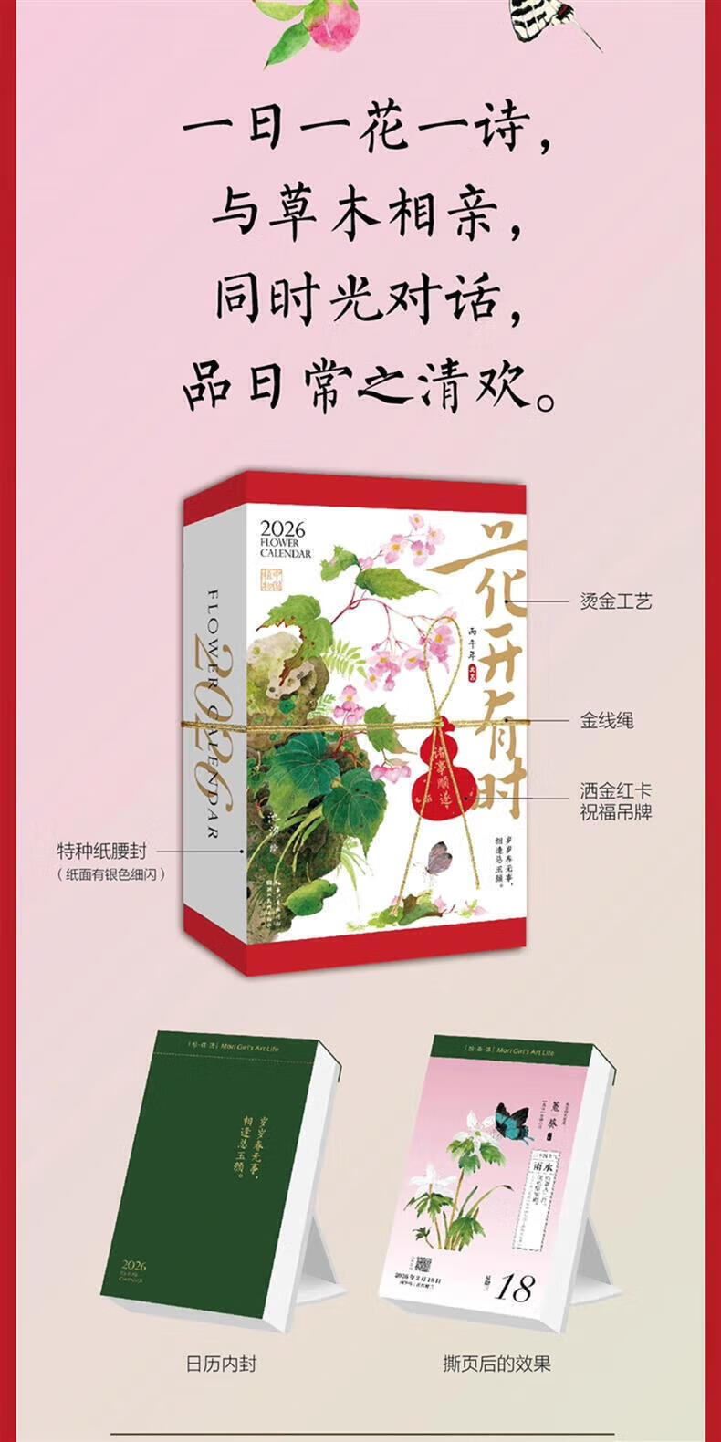 CCTV Online Flowers Bloom Sometimes Calendar Free Greeting Cards 2026 Calendar National Style Watercolor Flower Illustrations Hand Accounts and Solar Terms Poetry Calendar Bingwu Horse Year Calendar Desk Calendar Page Flip Hand-Teared Desktop Ornaments Gifts 2026 New Year Gift ZC Flowers Bloom Sometimes 2026 Calendar Specially Designed to Turn Pages