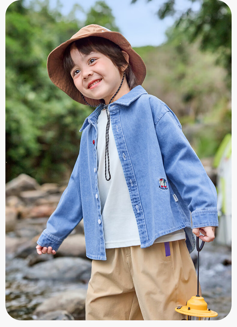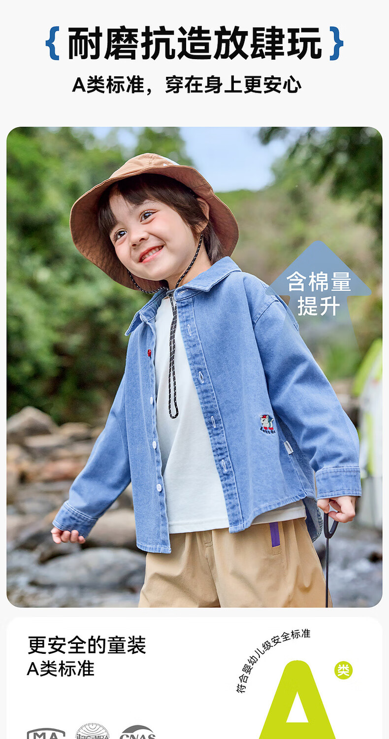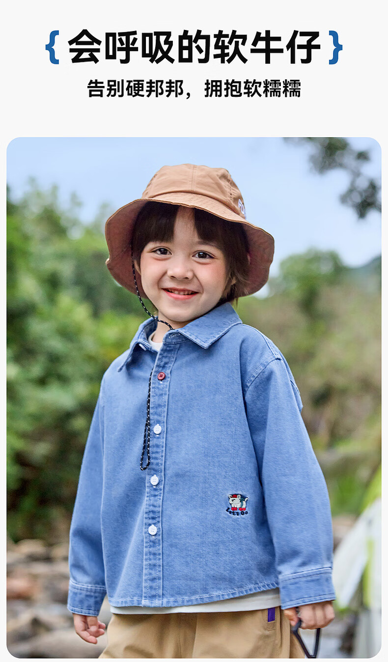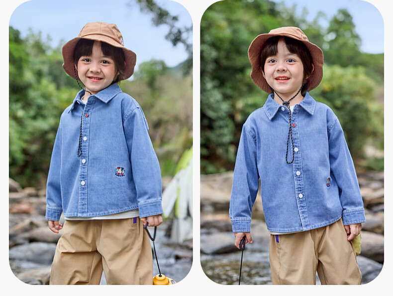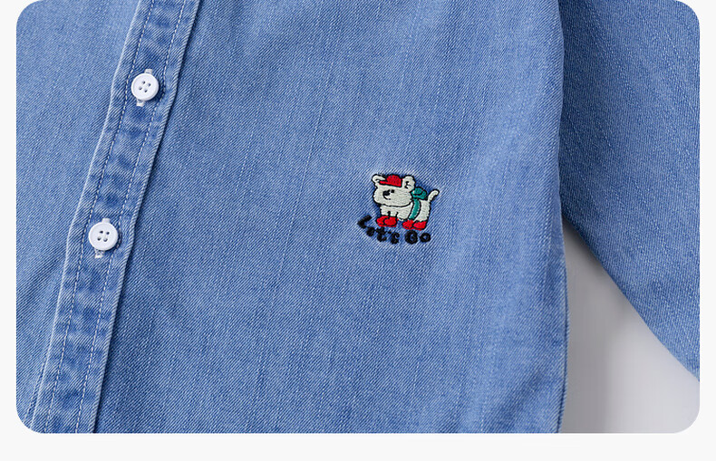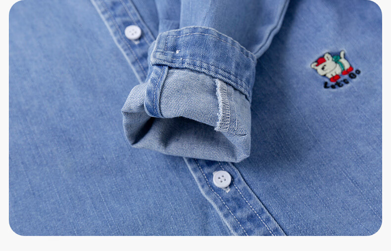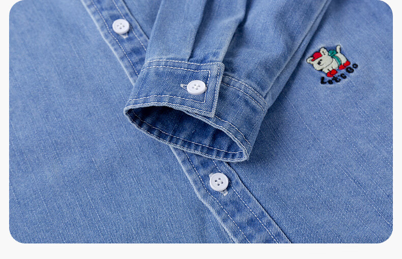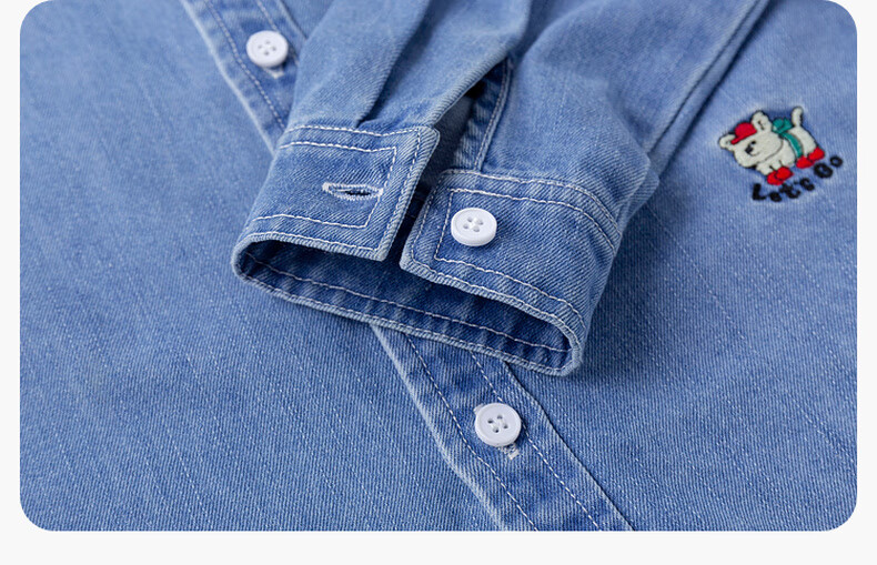 Dudujia soft denim children's washed denim shirt spring boys' shirt cartoon spring style girls' tops children's clothing trendy denim blue 100
