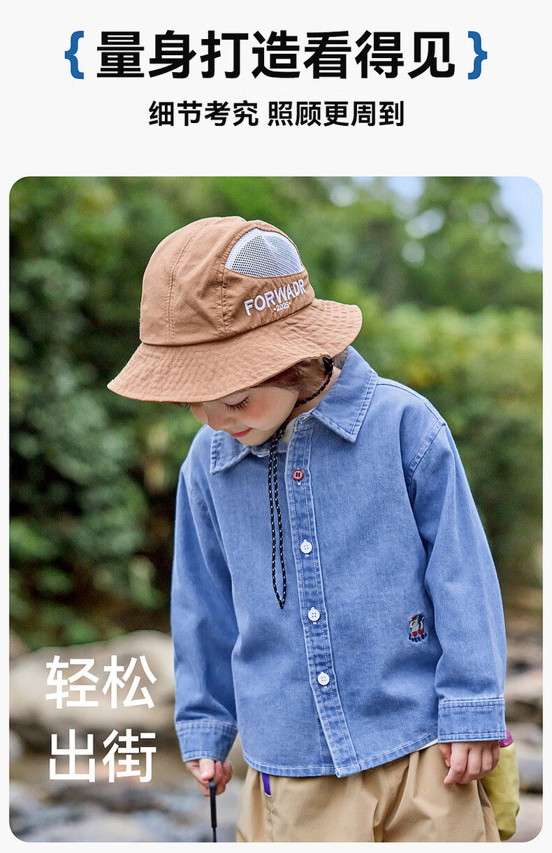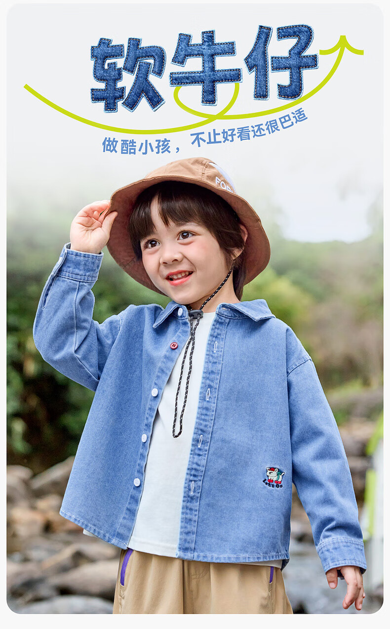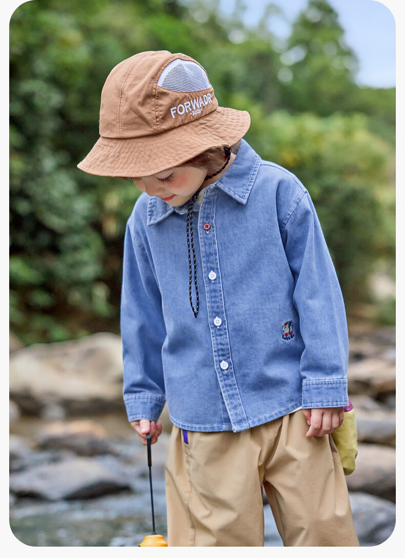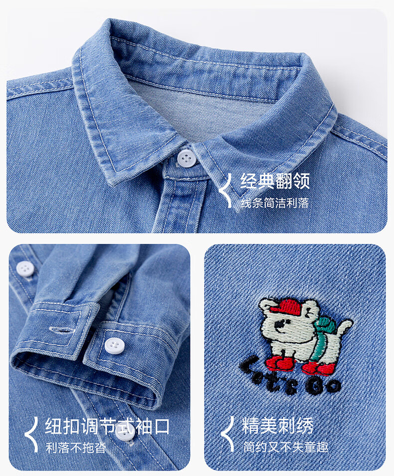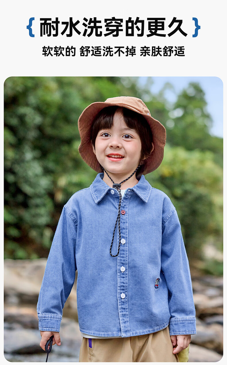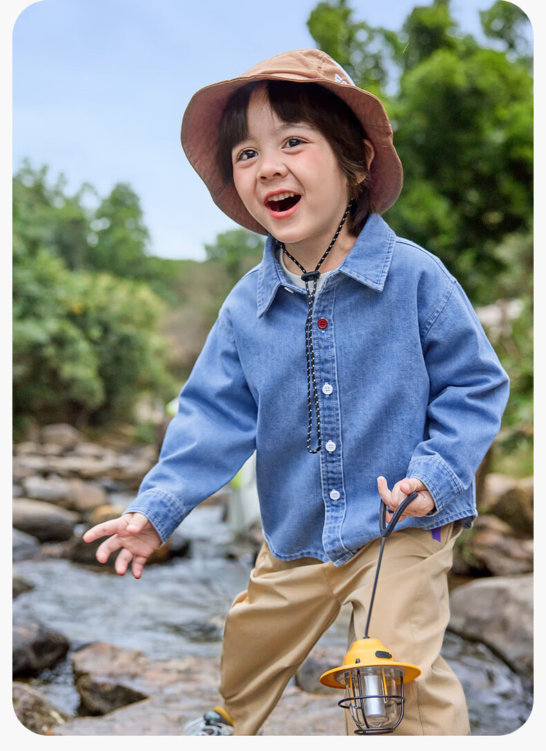 Dudujia soft denim children's washed denim shirt spring boys' shirt cartoon spring style girls' tops children's clothing trendy denim blue 100