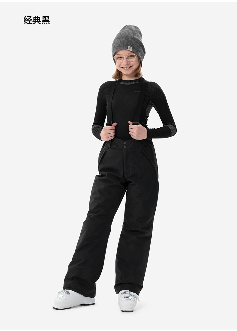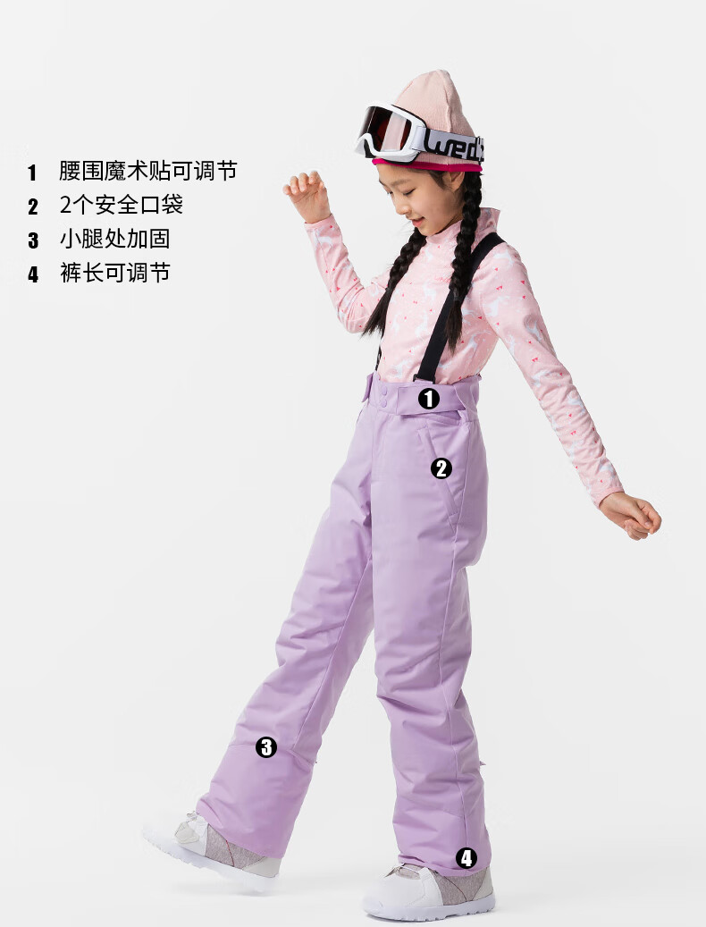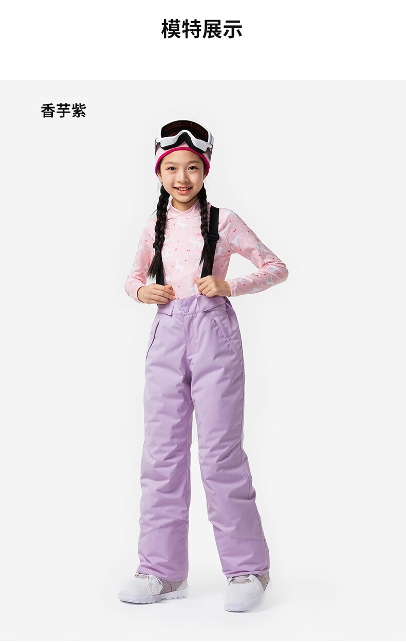 Decathlon (DECATHLON) children's ski pants suspenders thickened waterproof and warm boys and girls single board double board pants KIDK official flagship purple one size 145 12-14 years old
