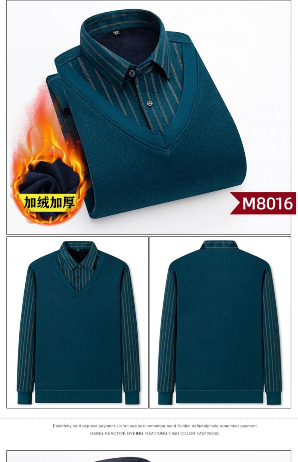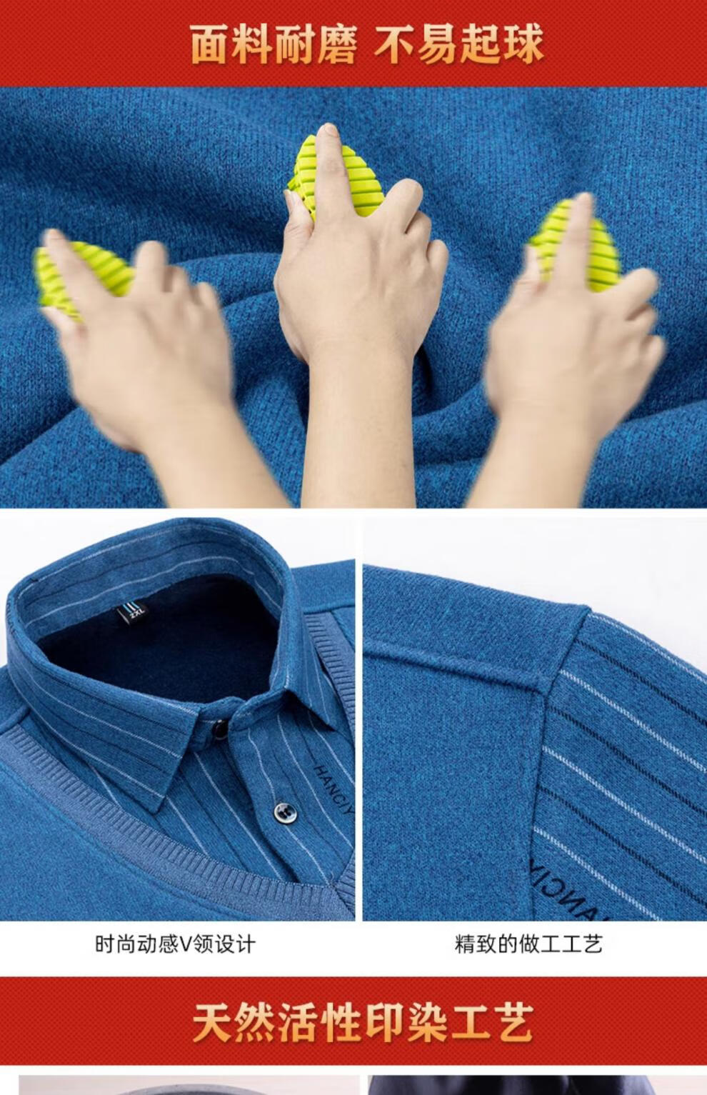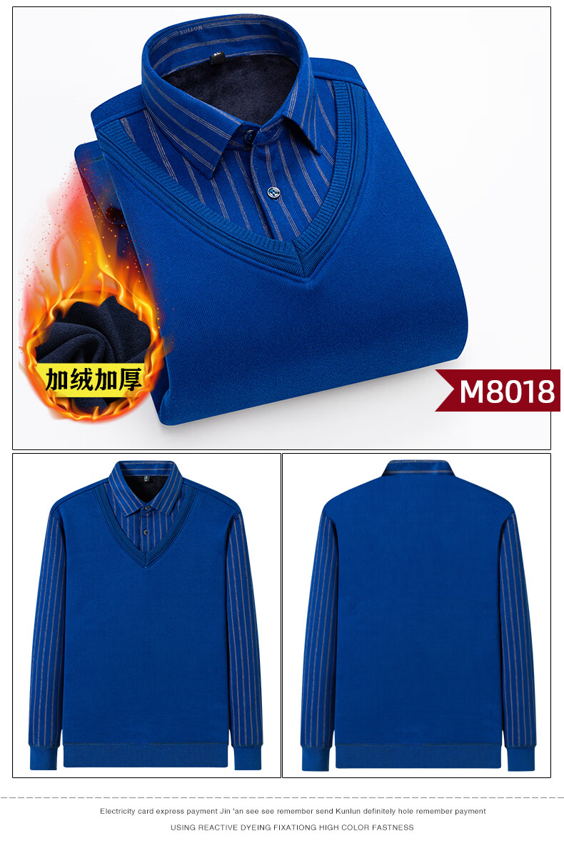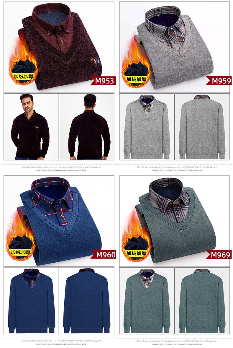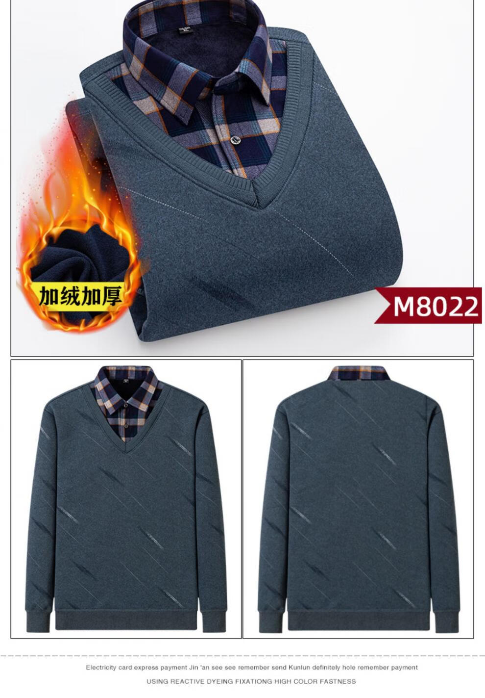 花花公子冬季男士保暖衬衫中青年纯棉假两件针织打底衫毛衣男加绒加厚上衣 M959 3XL (推荐160-178斤)