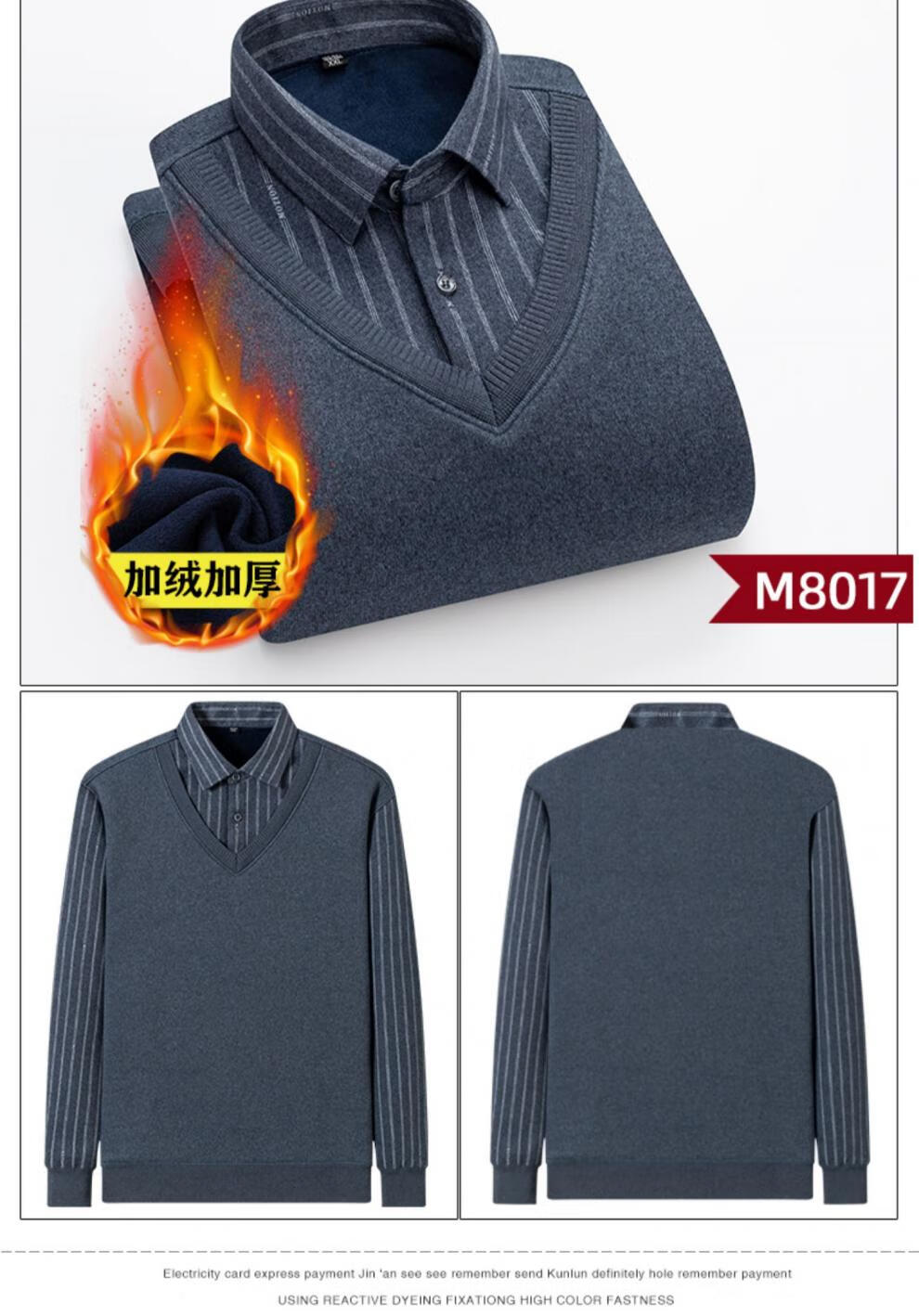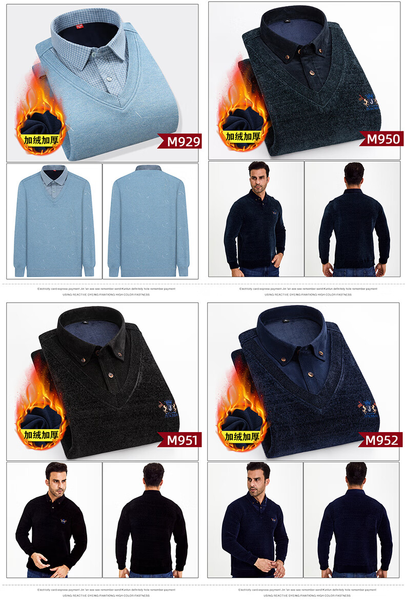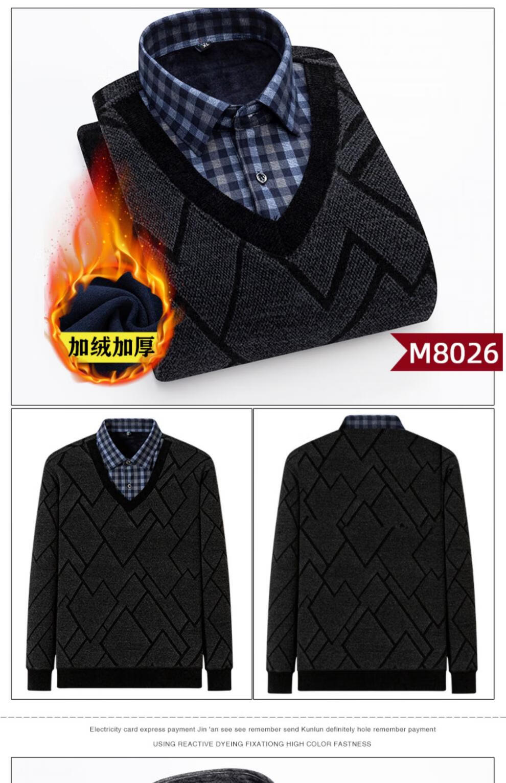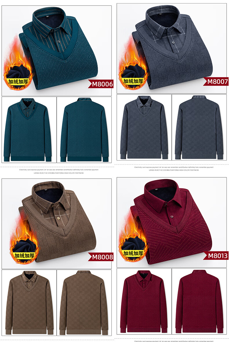花花公子冬季男士保暖衬衫中青年纯棉假两件针织打底衫毛衣男加绒加厚上衣 M959 3XL (推荐160-178斤)
