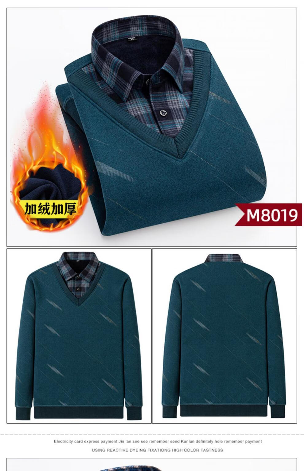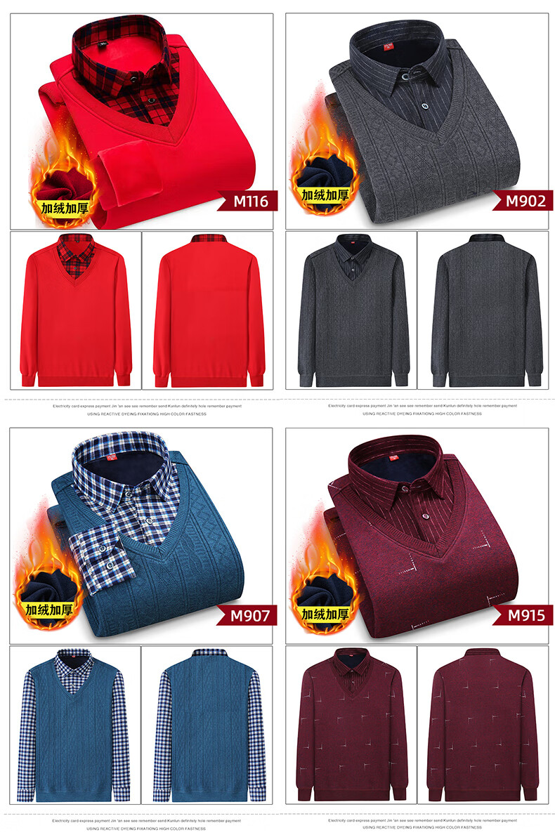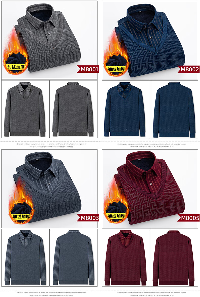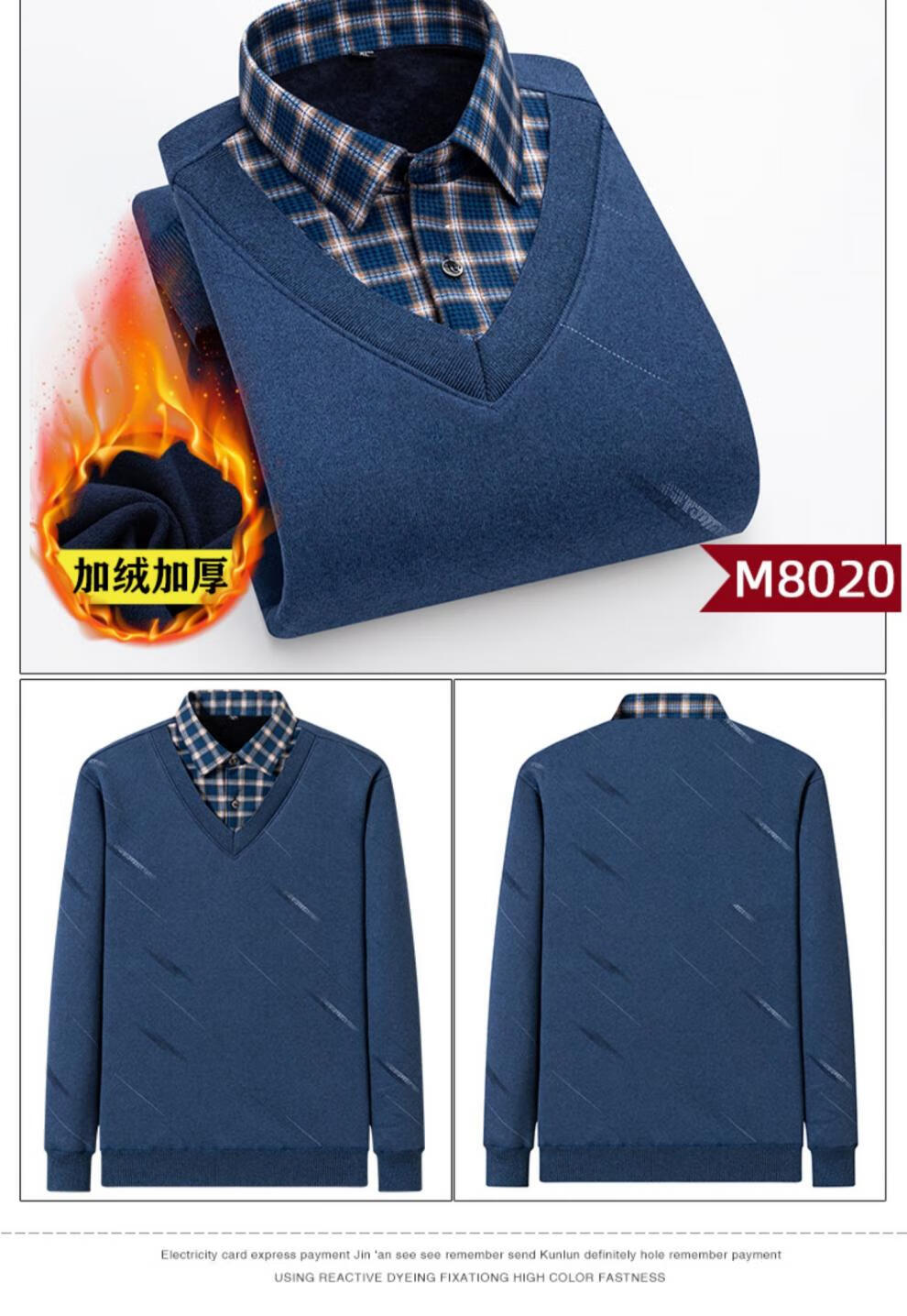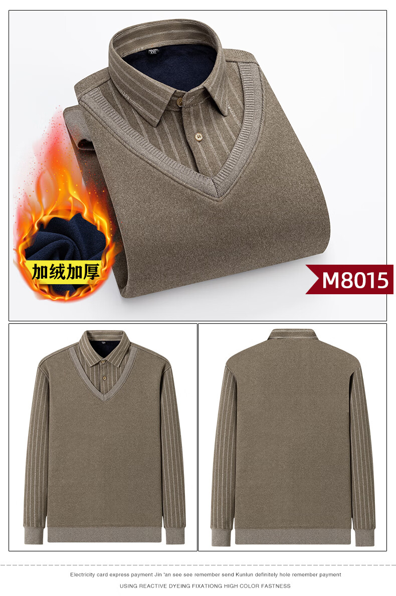 花花公子冬季男士保暖衬衫中青年纯棉假两件针织打底衫毛衣男加绒加厚上衣 M959 3XL (推荐160-178斤)