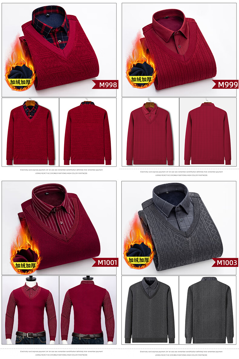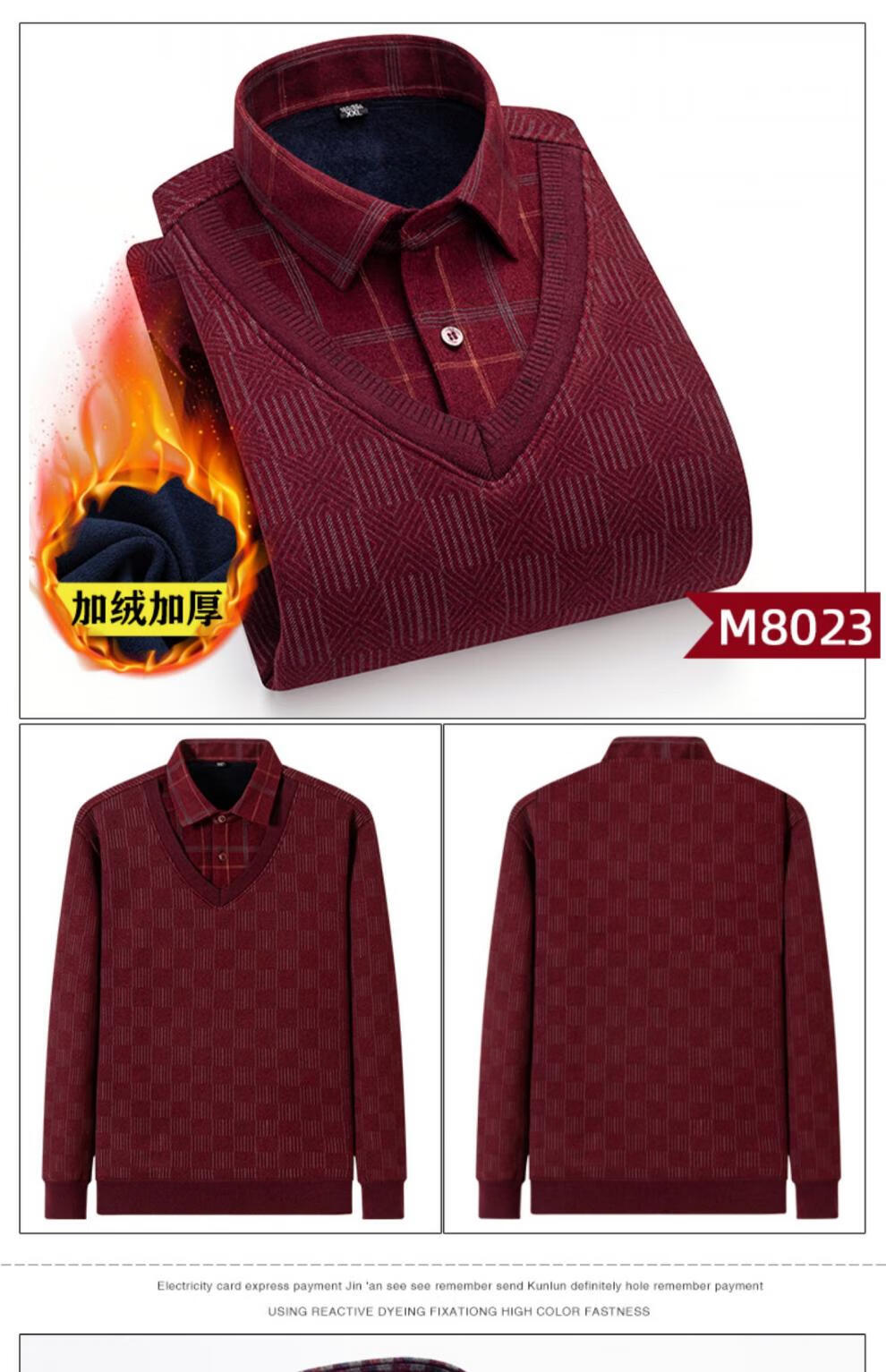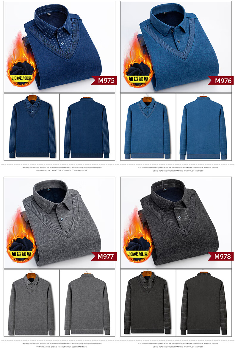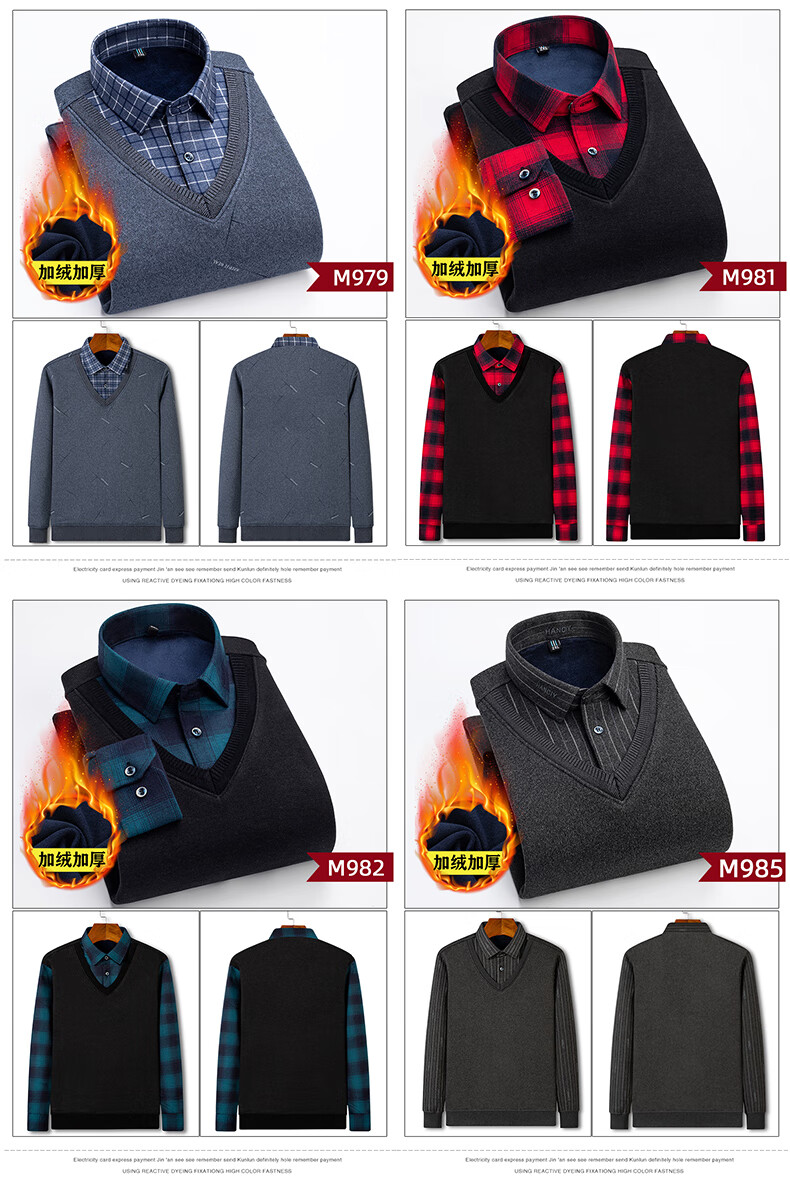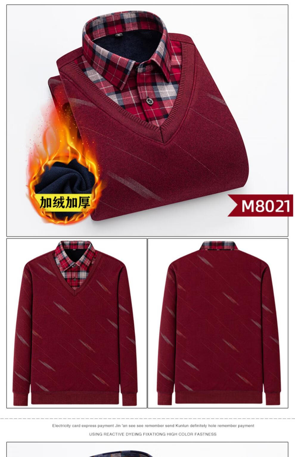 花花公子冬季男士保暖衬衫中青年纯棉假两件针织打底衫毛衣男加绒加厚上衣 M959 3XL (推荐160-178斤)
