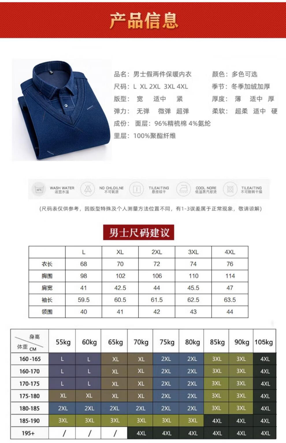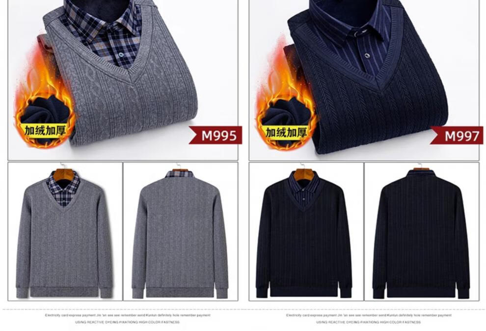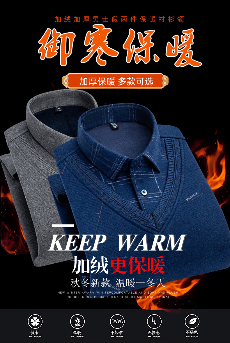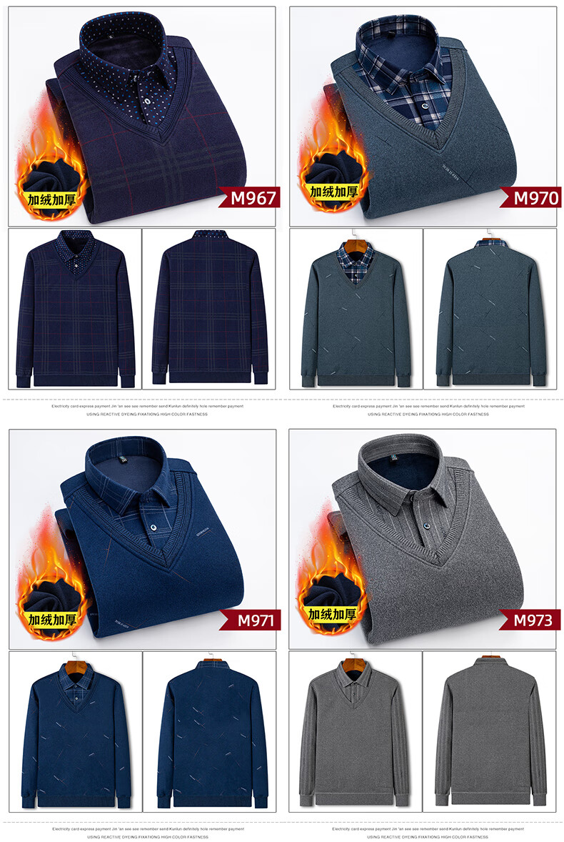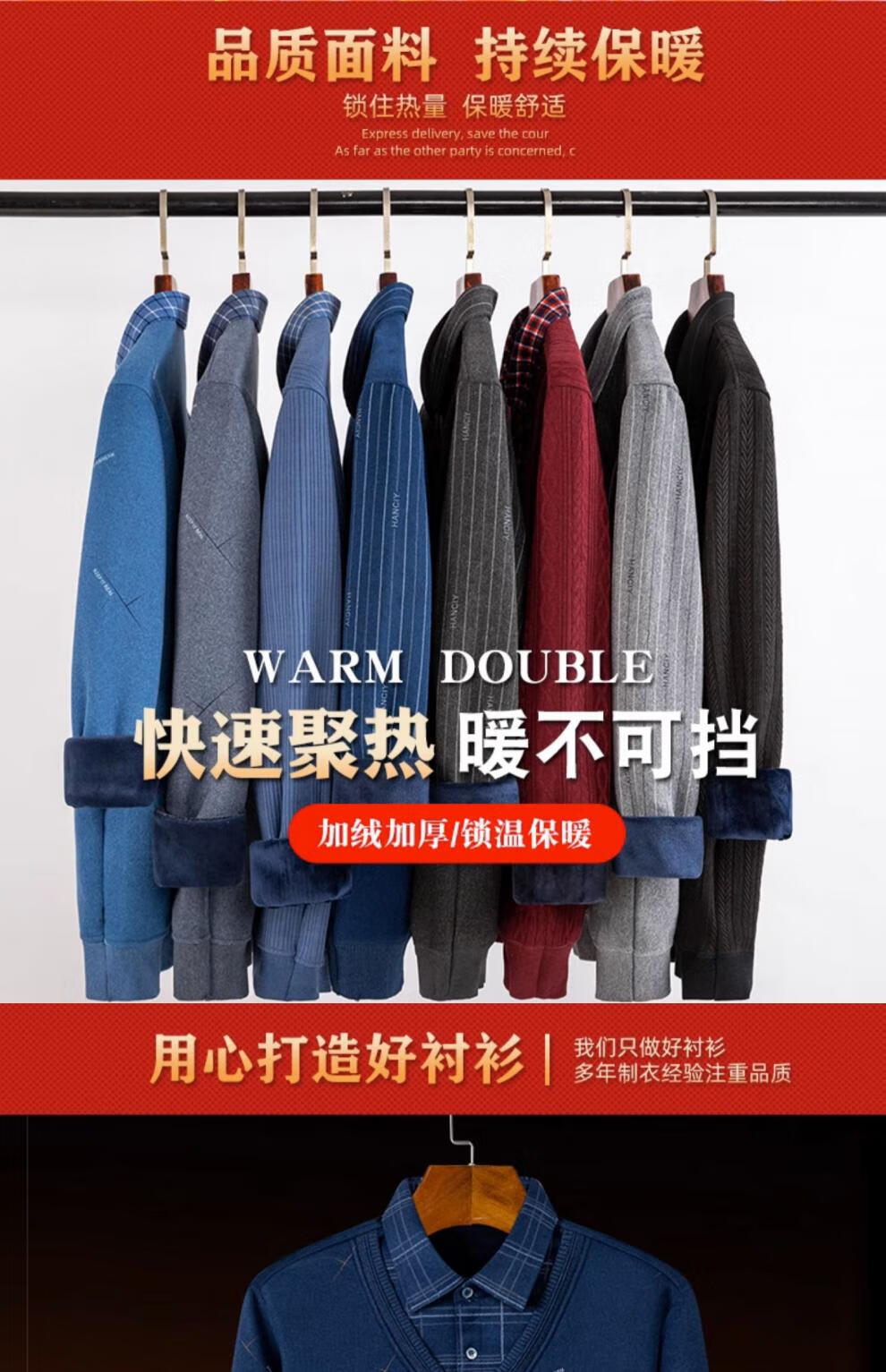 花花公子冬季男士保暖衬衫中青年纯棉假两件针织打底衫毛衣男加绒加厚上衣 M959 3XL (推荐160-178斤)