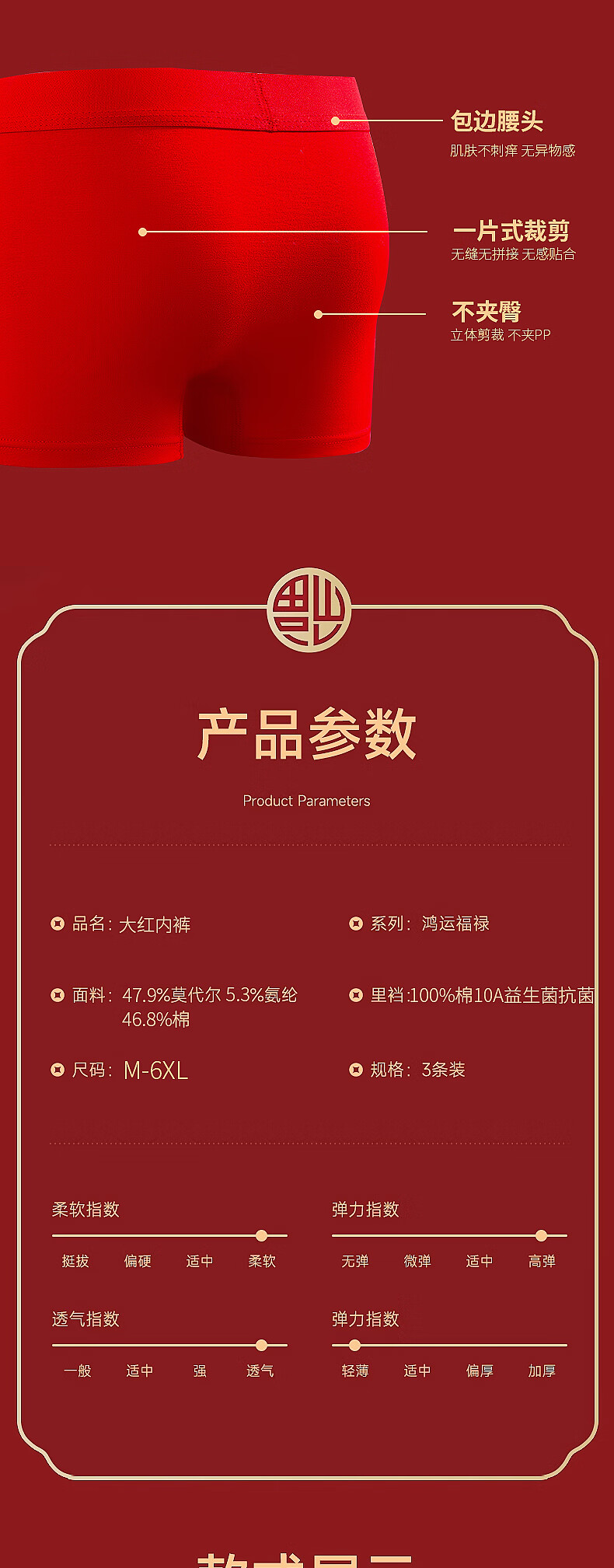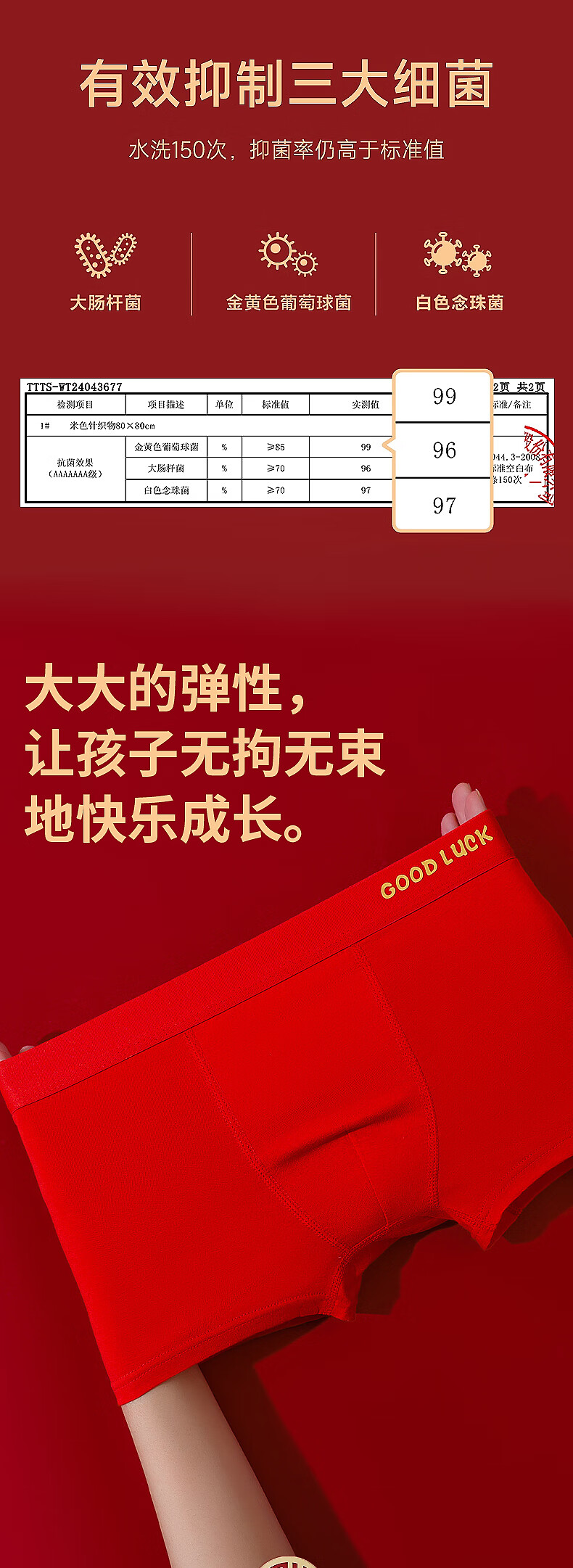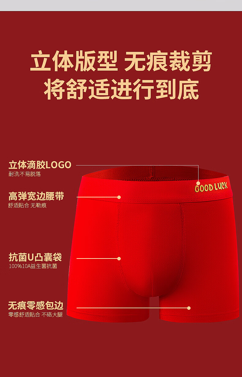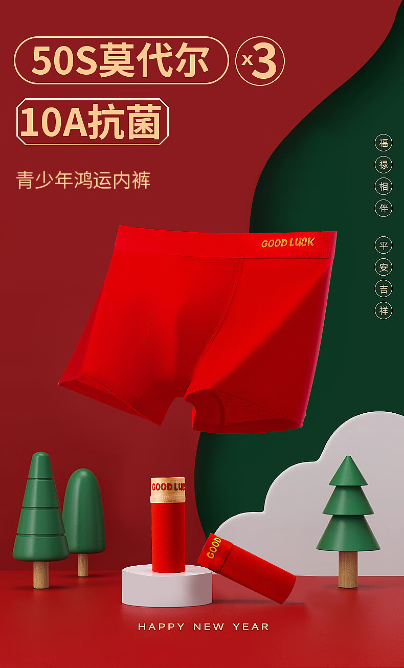 Children's Underwear Red Boys' Animal Year New Year's Cotton Shorts Youth 10A Antibacterial Modal Boxer Briefs Good Luck for Boys 3 Pairs One Size (4XL) Reference Height 160cm