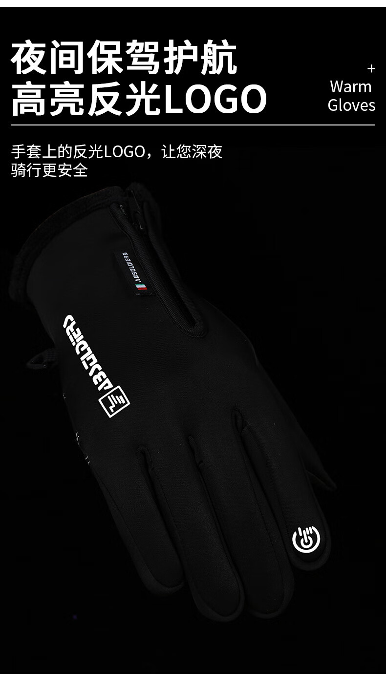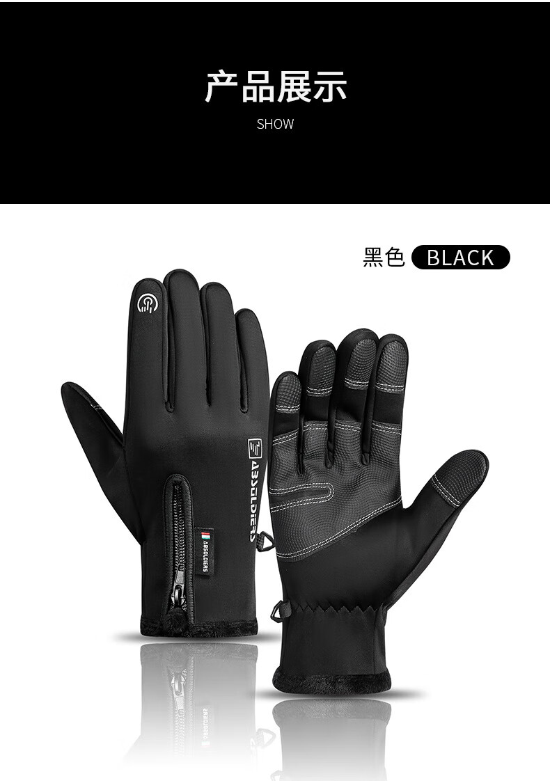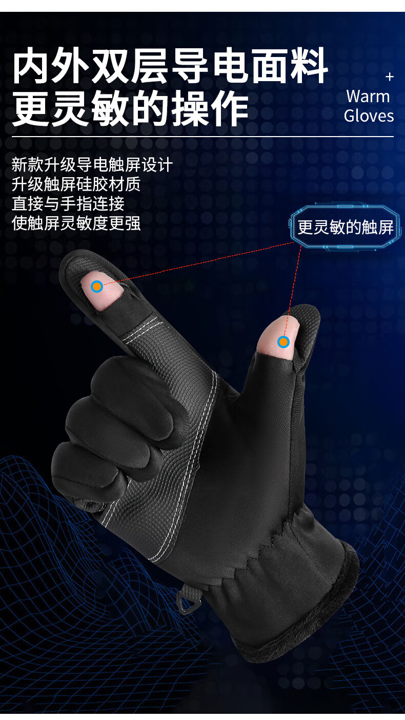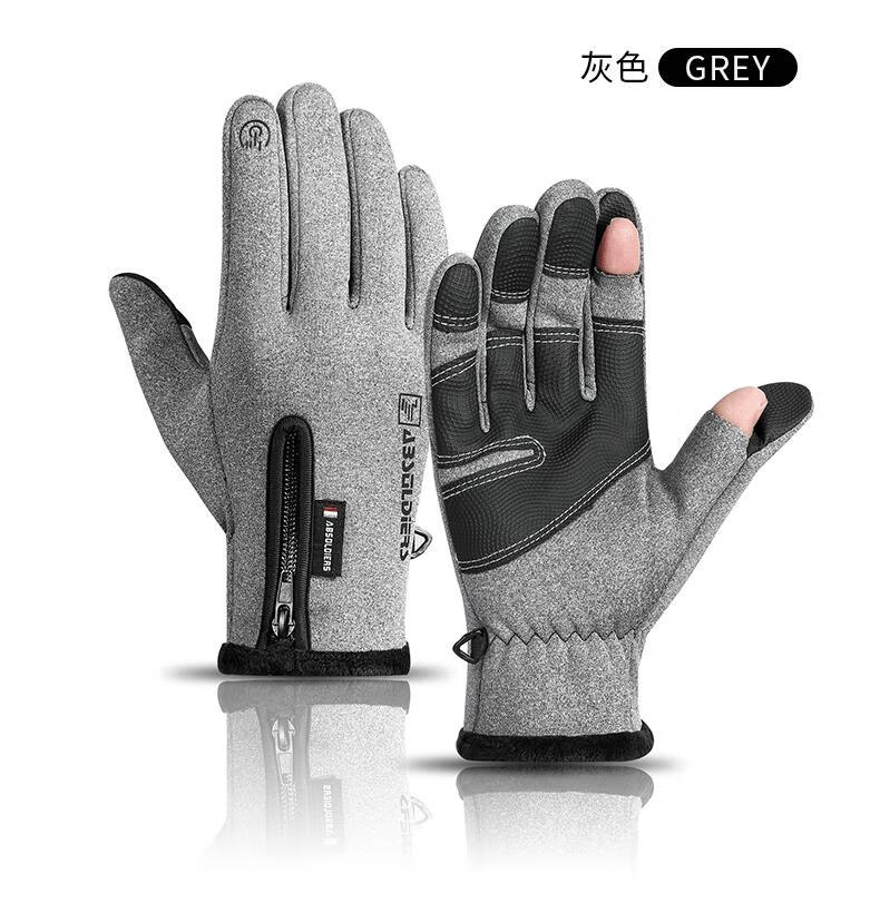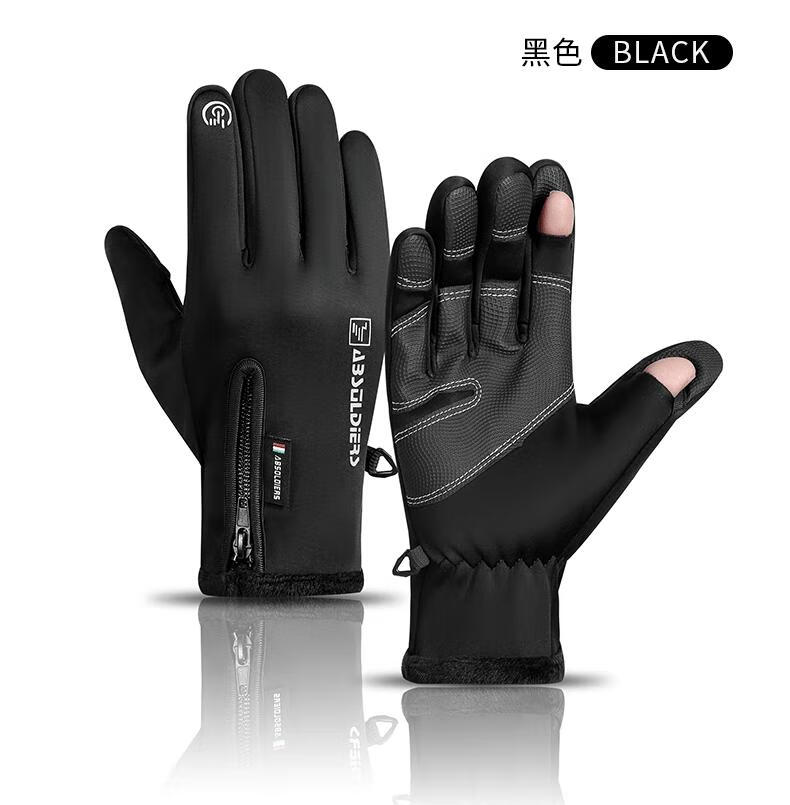 Autumn and winter cycling gloves, fishing, outdoor sports, velvet for cold protection and warmth, raw edge zipper flip, two-finger black M