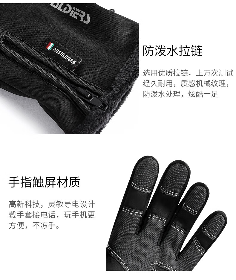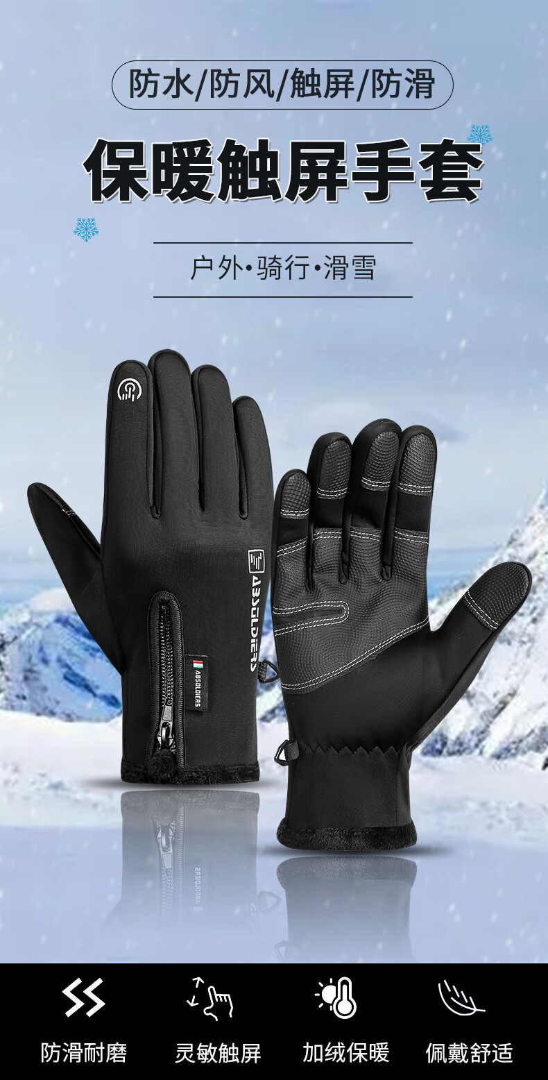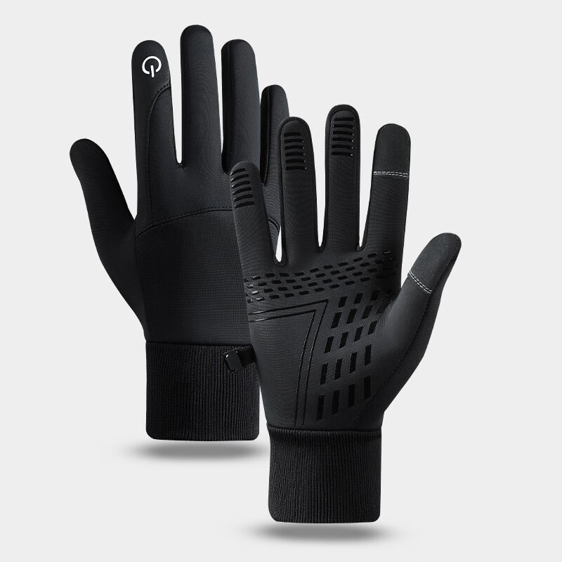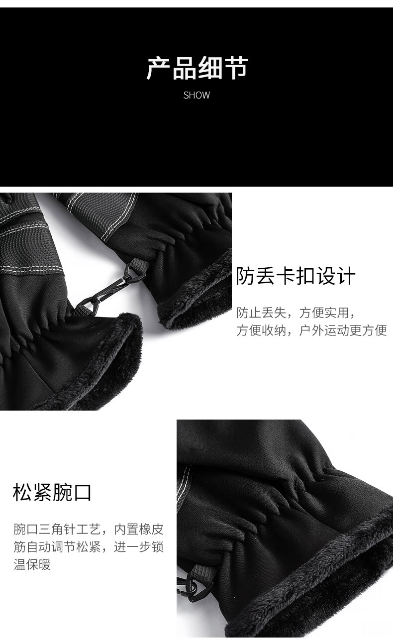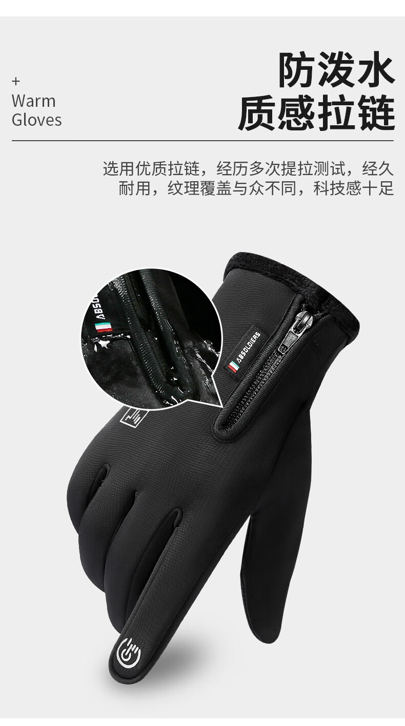Autumn and winter cycling gloves, fishing, outdoor sports, velvet for cold protection and warmth, raw edge zipper flip, two-finger black M