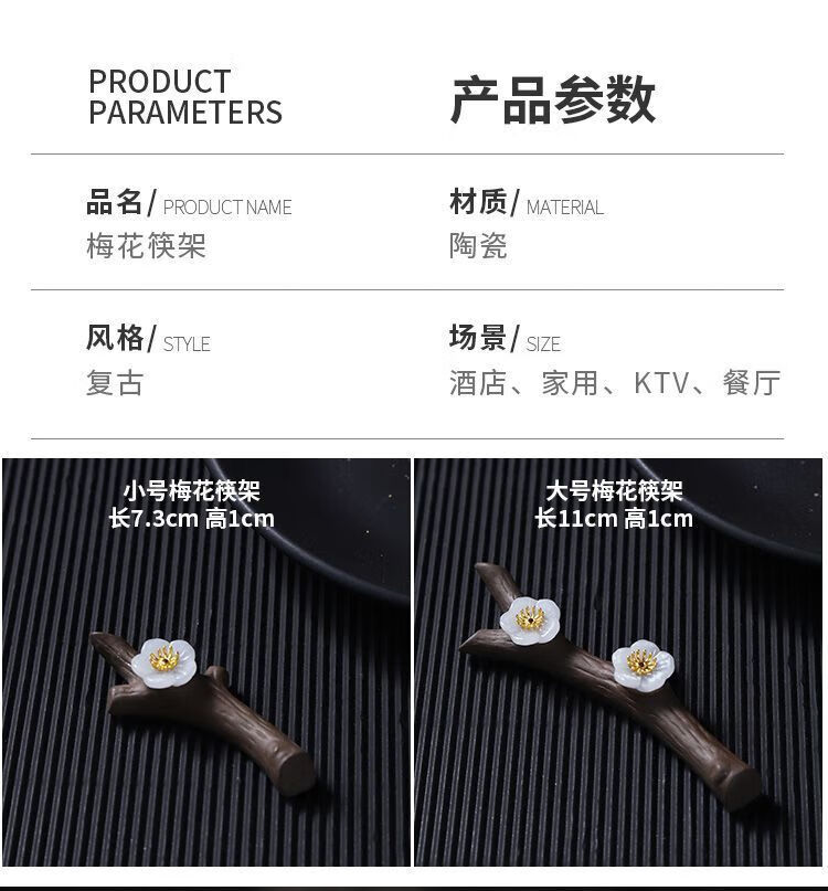 Qinkai classical plum blossom chopstick holder ceramic Chinese style new chopstick holder chopstick holder universal bracket restaurant banquet home small plum blossom holder 10 pieces