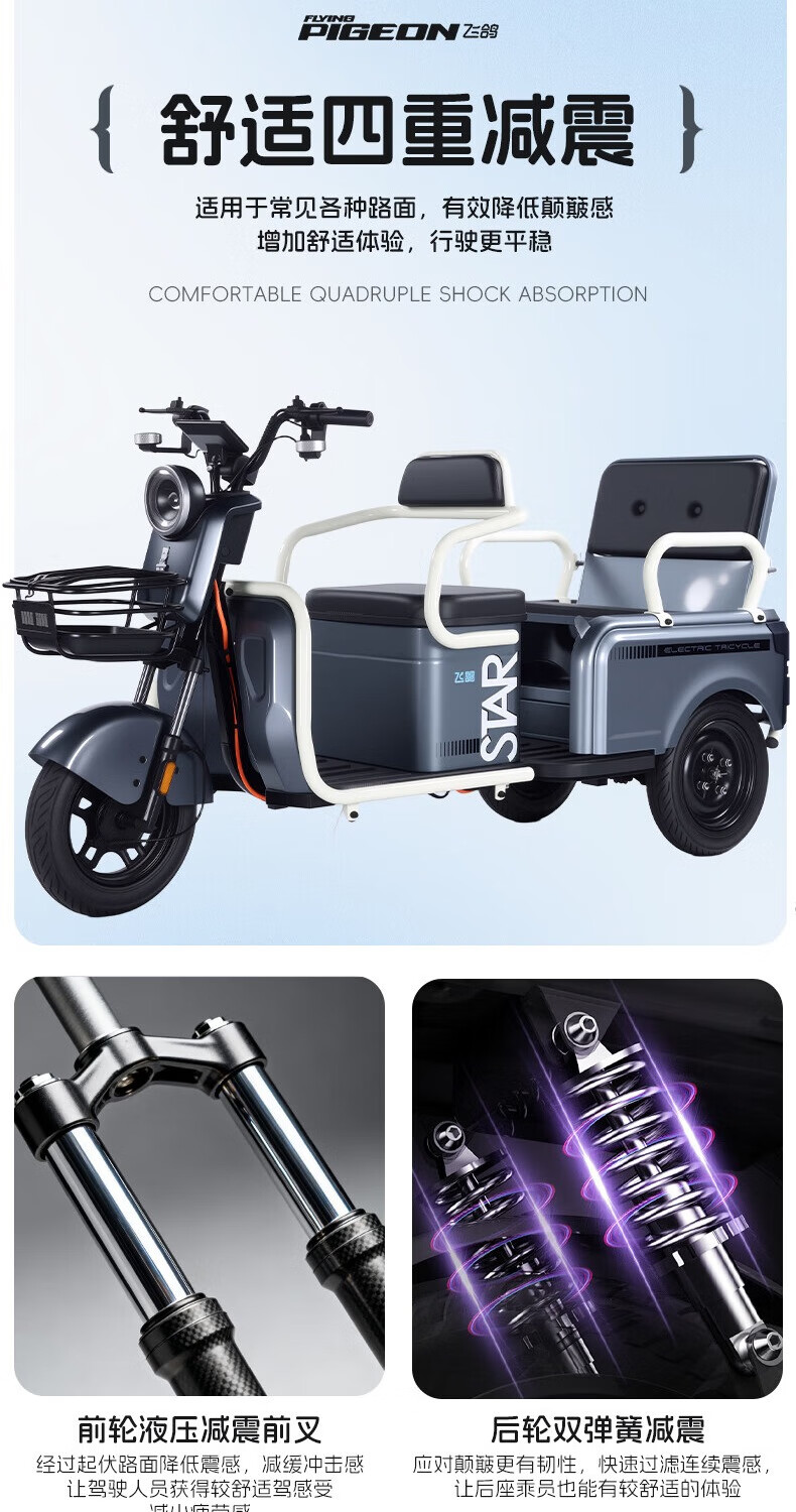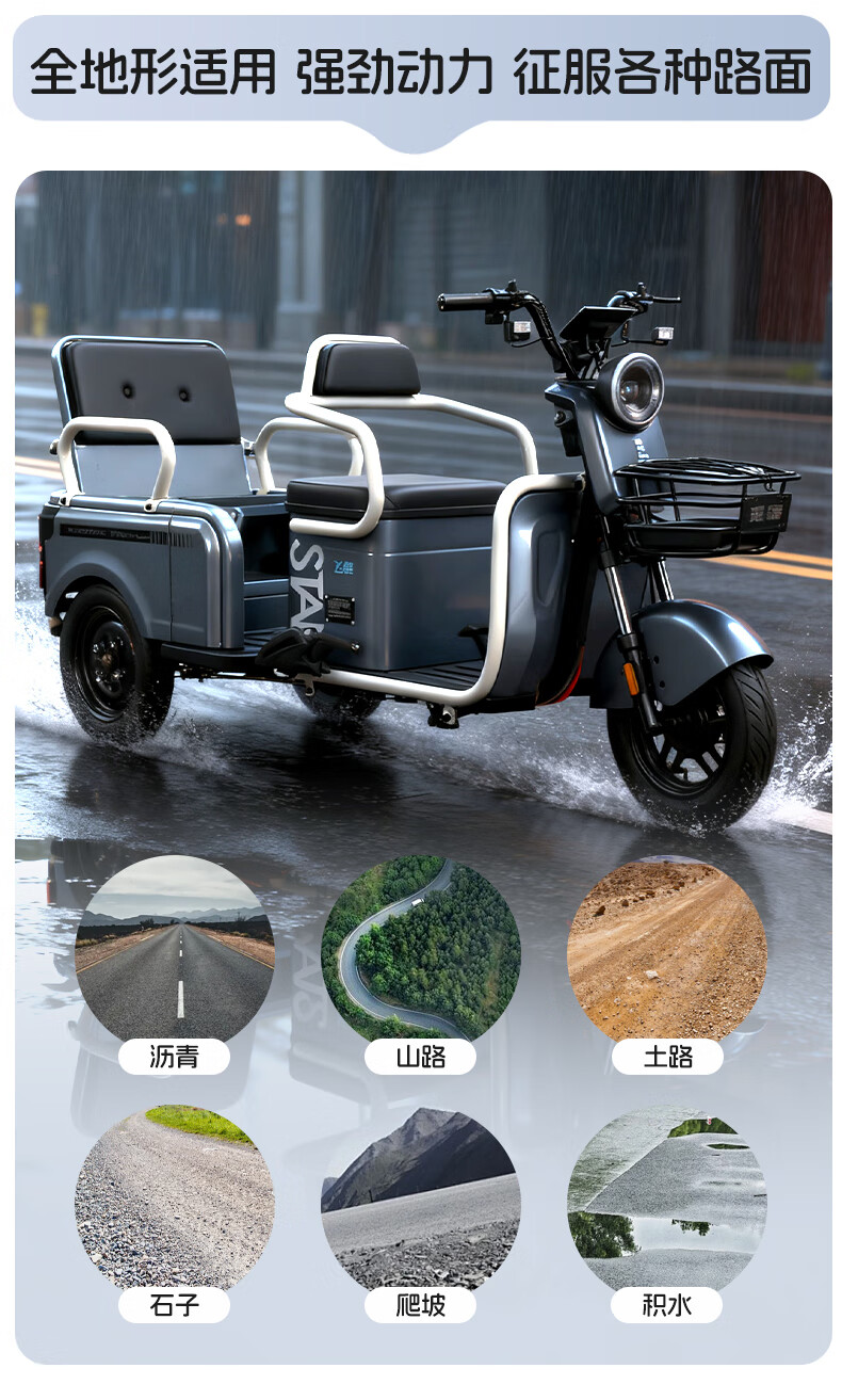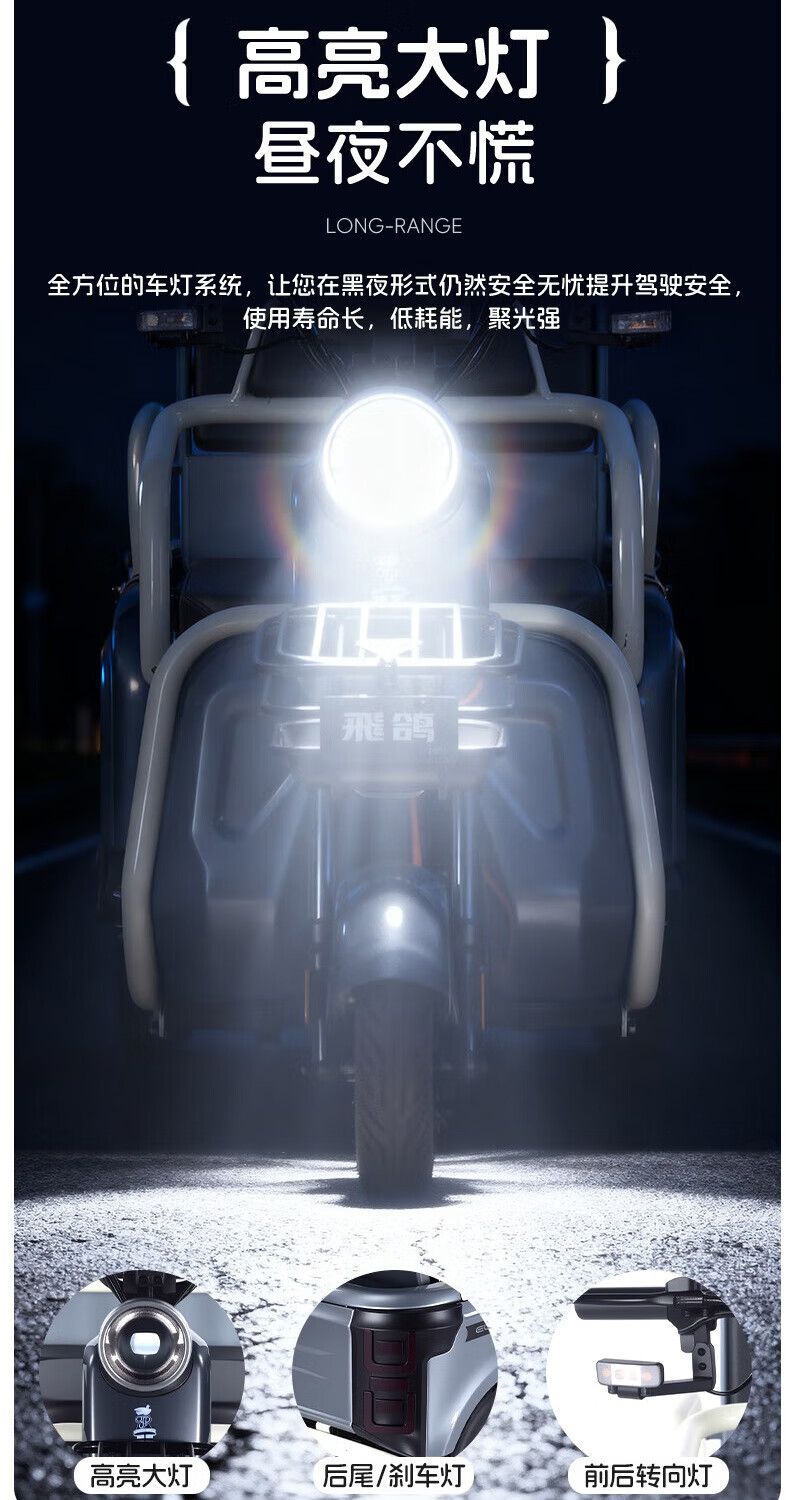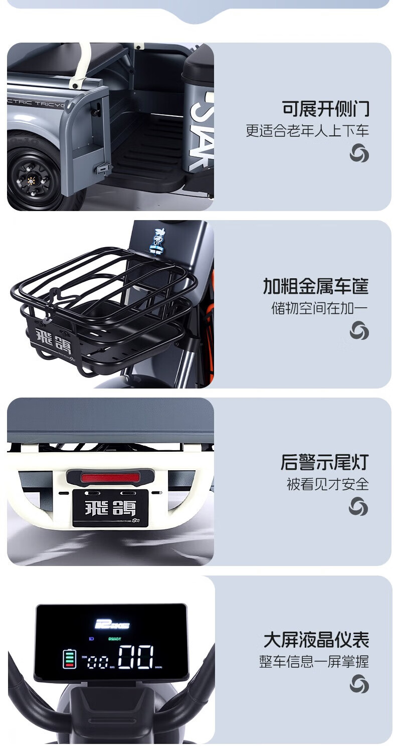 Feige Electric Tricycle 2025 New Small Home Cargo Cargo and Passenger Cargo Hill Climbing King to Pick Up and Drop Off Children Battery Car 800W/60V20A Lithium Battery / Battery Life About 110 Miles