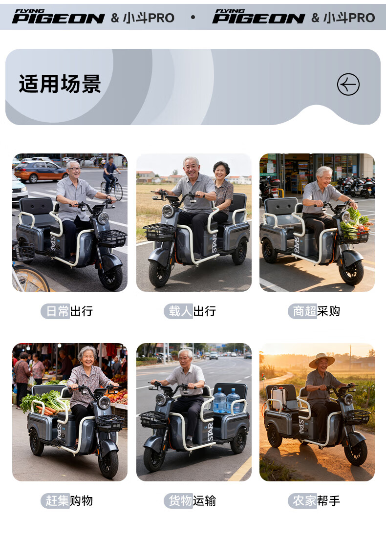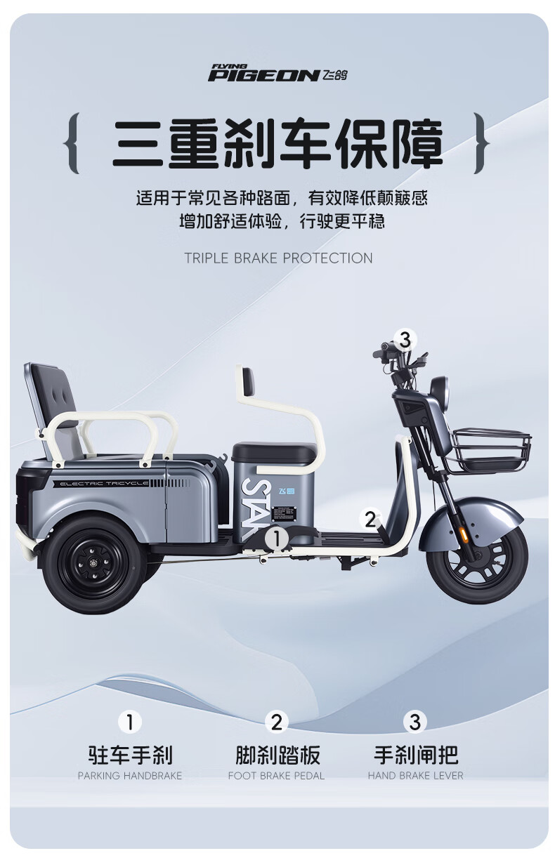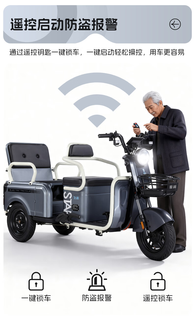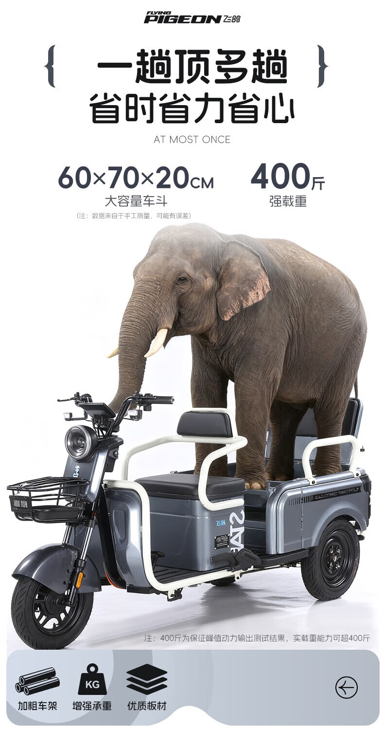 Feige Electric Tricycle 2025 New Small Home Cargo Cargo and Passenger Cargo Hill Climbing King to Pick Up and Drop Off Children Battery Car 800W/60V20A Lithium Battery / Battery Life About 110 Miles