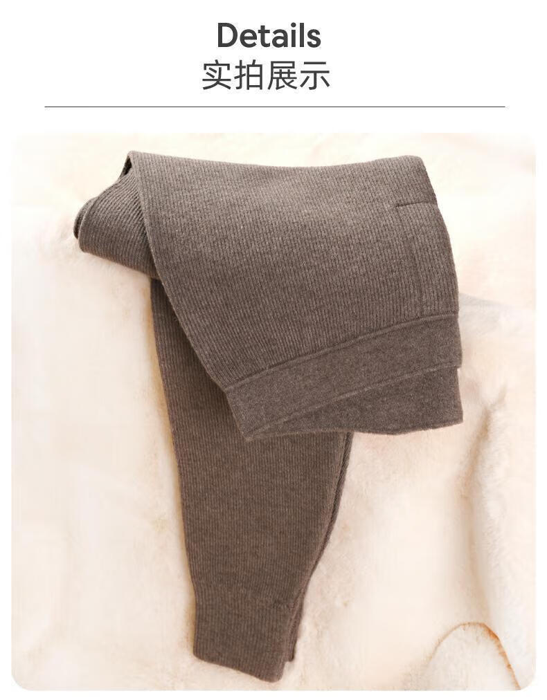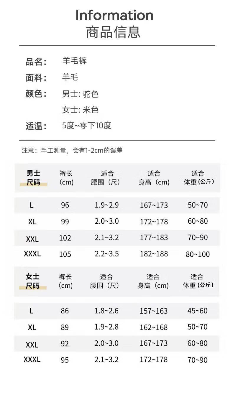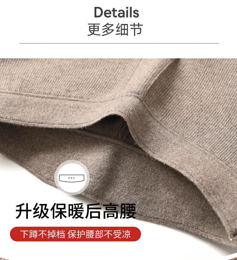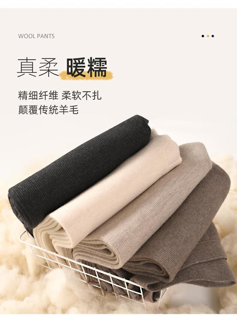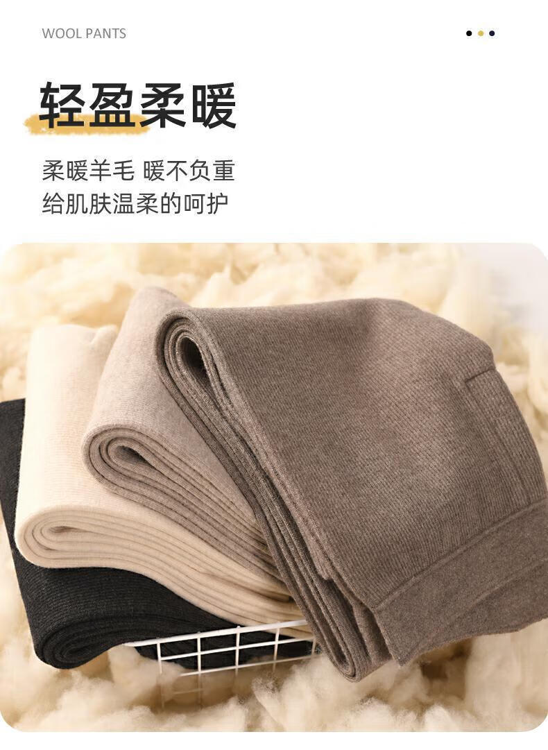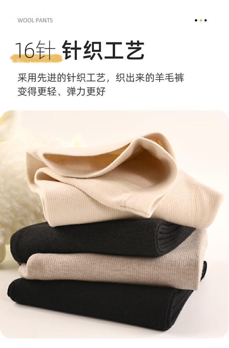 New Wool Pants Autumn and Winter Men and Women Thickened Large Size Wool Warm Pants Bottoming Wool Pants High Waist Cotton Pants HMY Women's Beige L