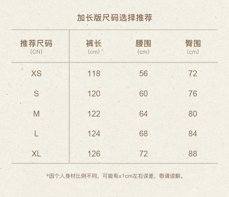 Outseam (cm) 99 cm 101.5 cm 104 cm 106.5 cm 109 cm