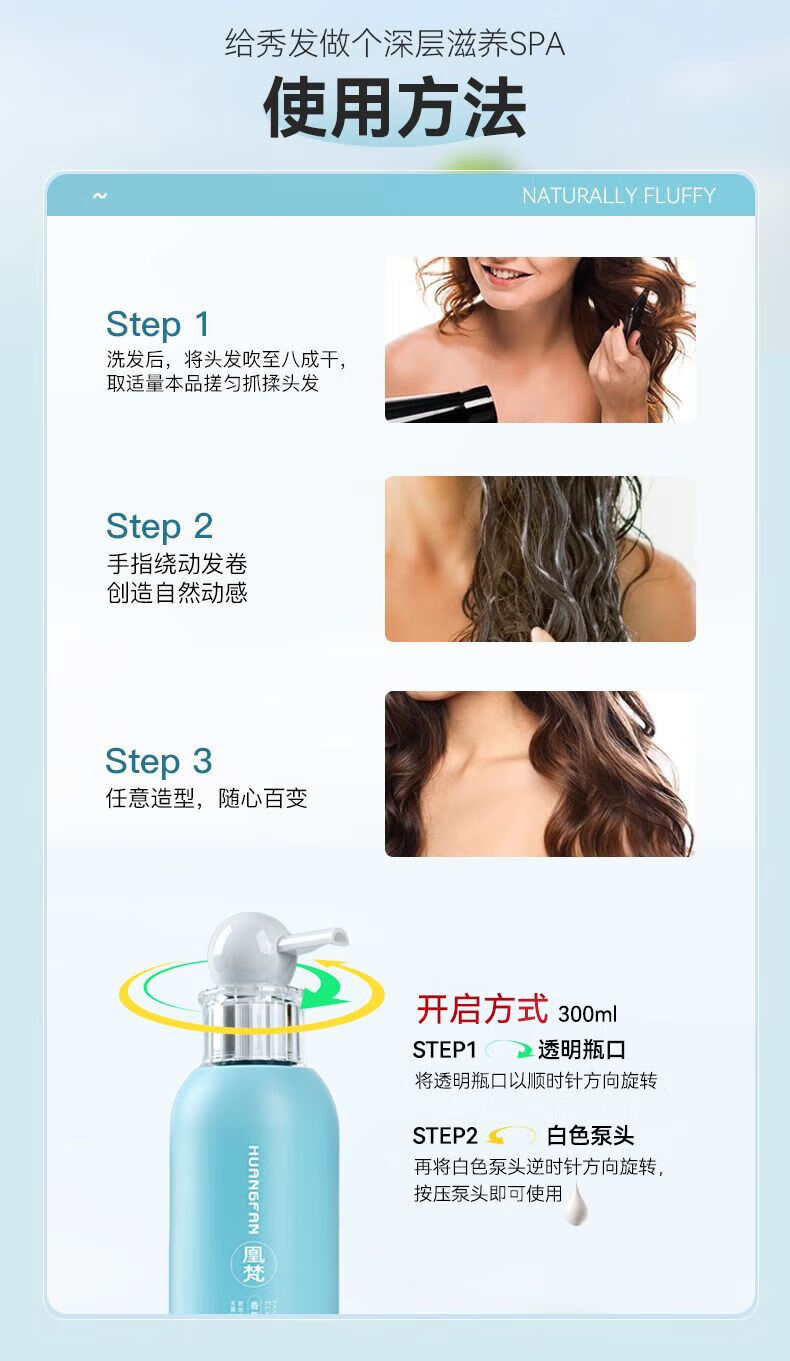 Huangfan genuine elastin for curls, perms, and curls, moisturizing, soft styling, long-lasting fragrance, repairing dryness, anti-frizz, 1 bottle of moisturizing, curl-protecting, fragranced elastin 300ML