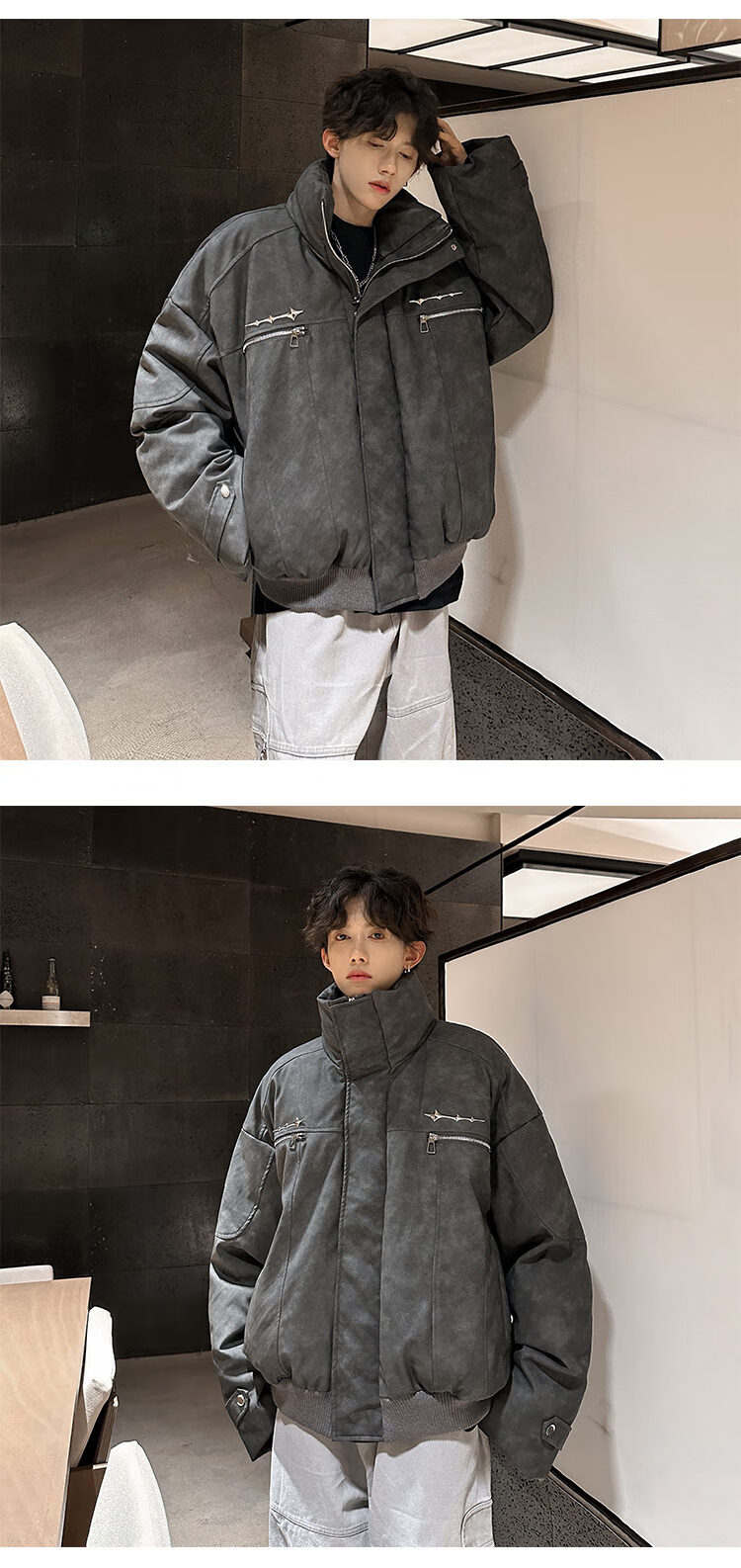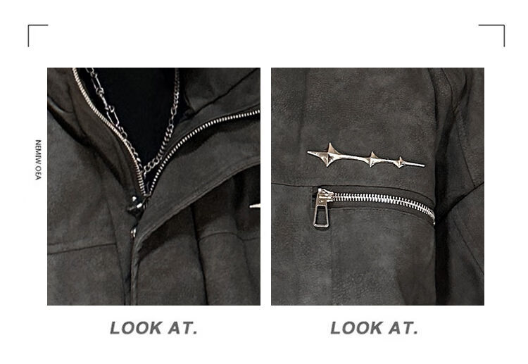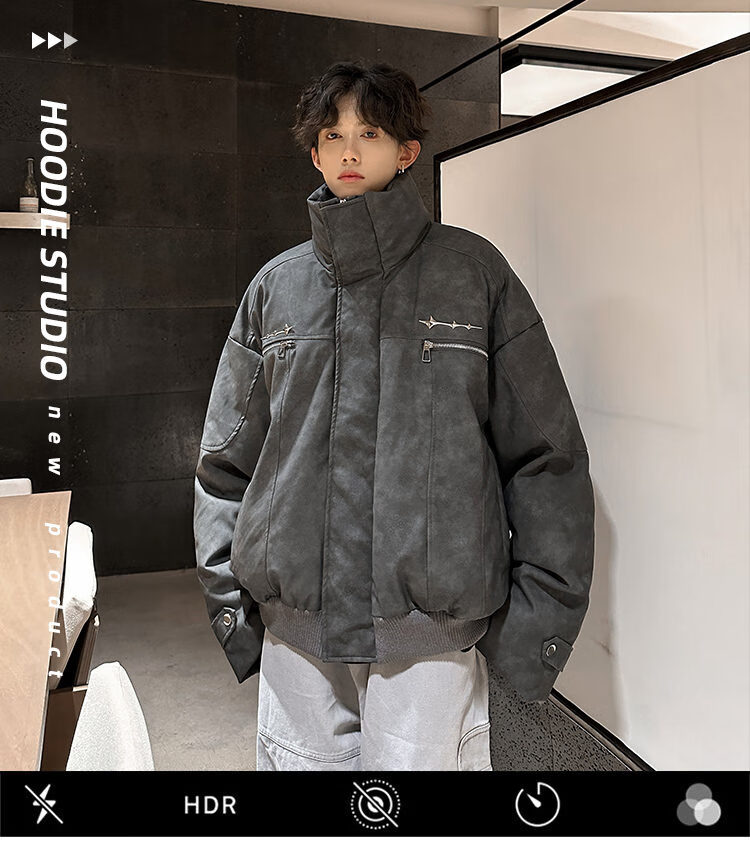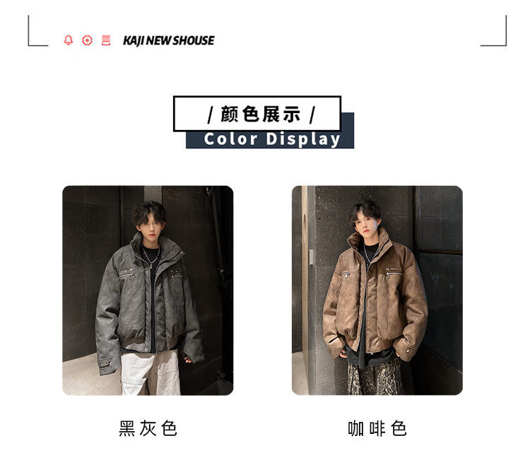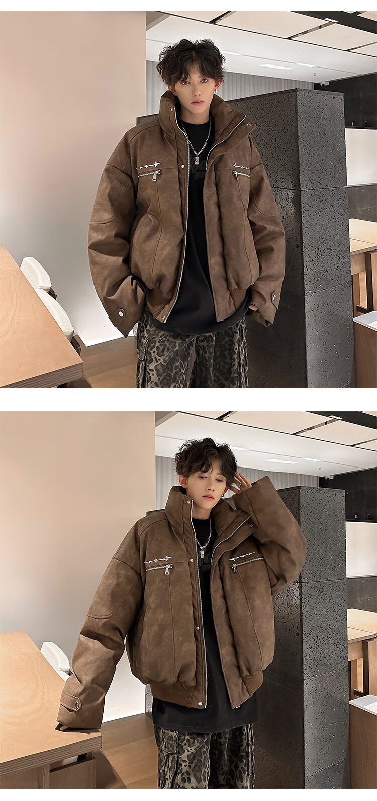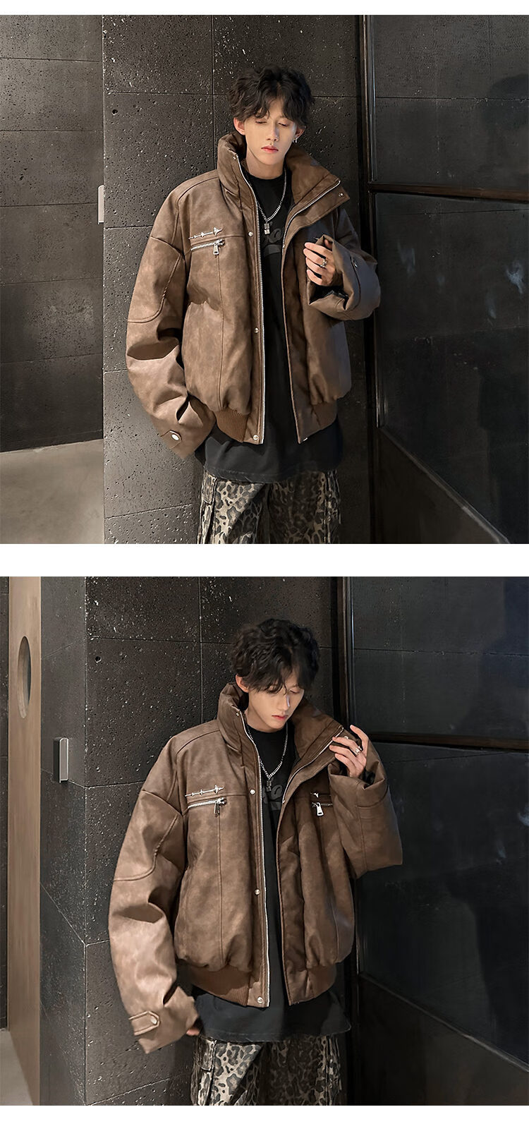 NYING Maillard PU leather cotton jacket men's winter new trendy brand thickened warm stand-up collar cotton jacket handsome loose cotton jacket brown XL