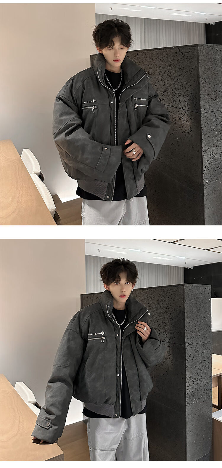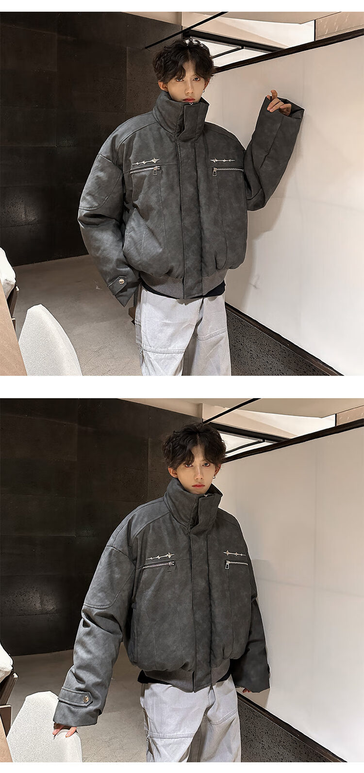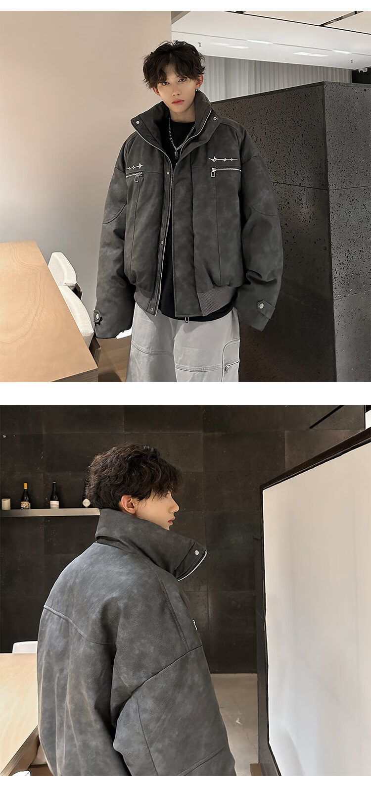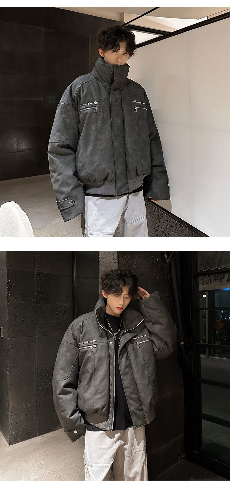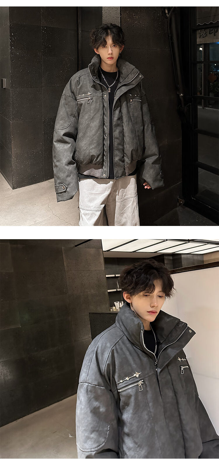 NYING Maillard PU leather cotton jacket men's winter new trendy brand thickened warm stand-up collar cotton jacket handsome loose cotton jacket brown XL