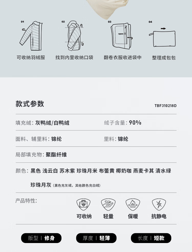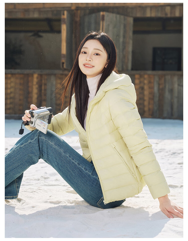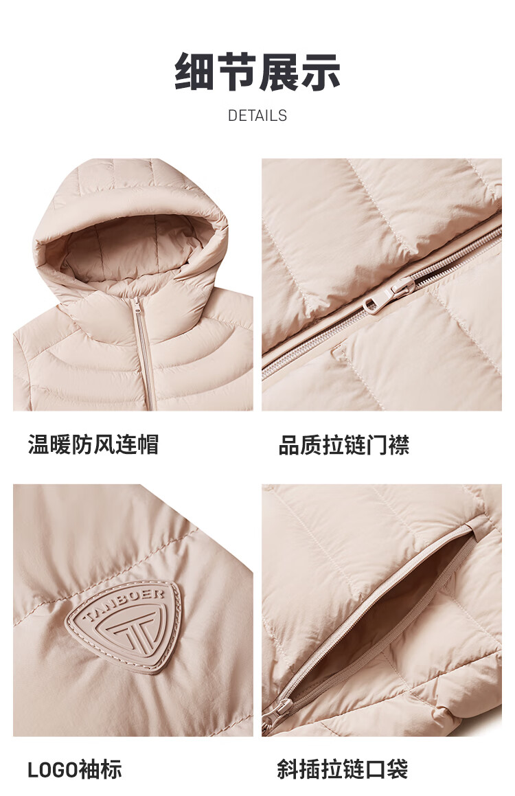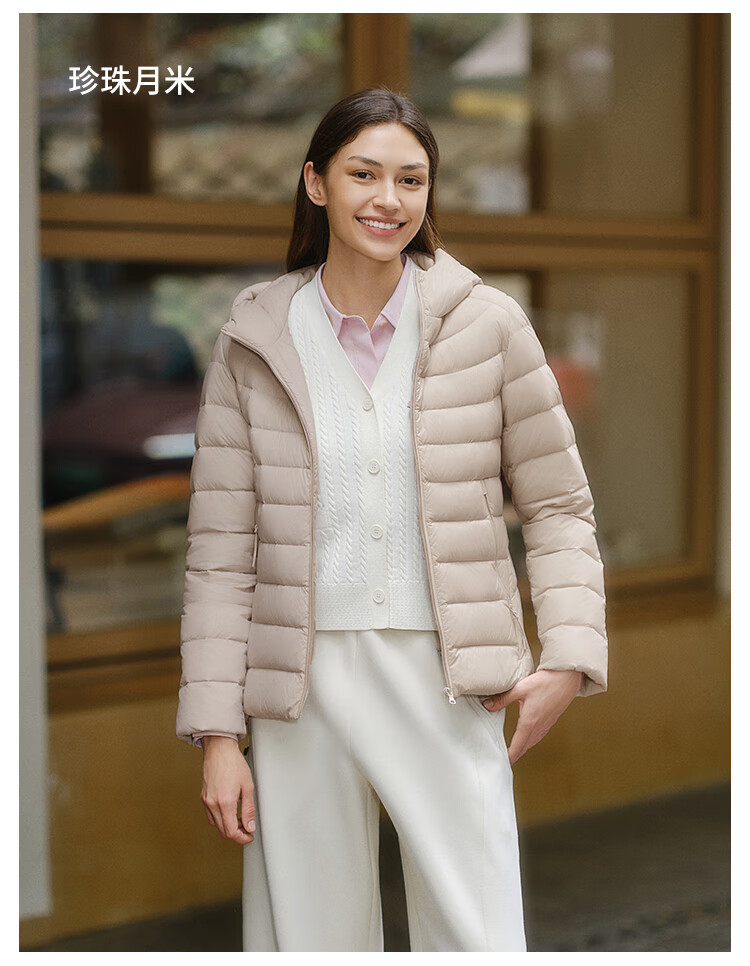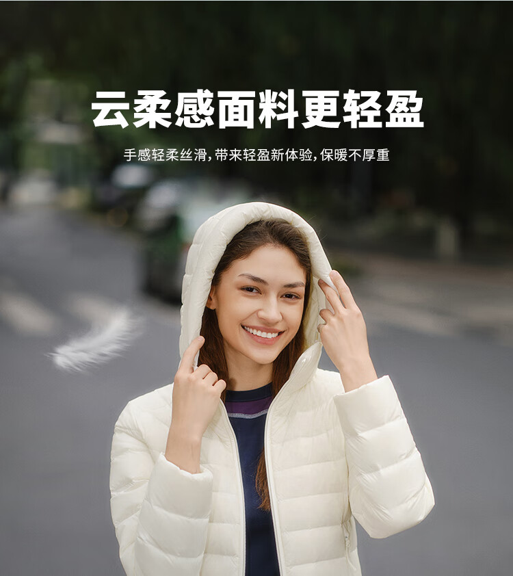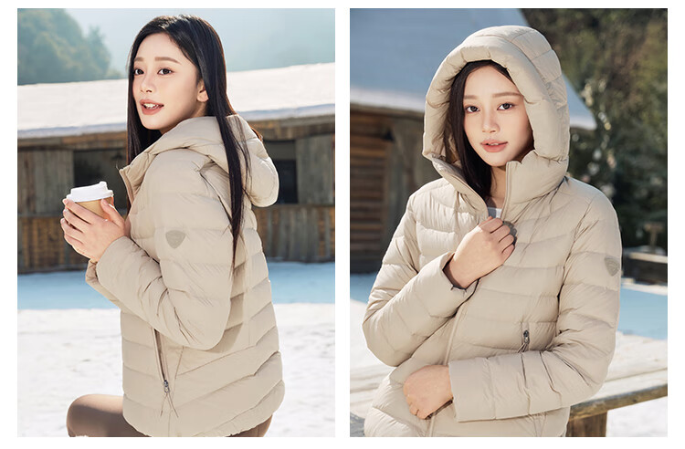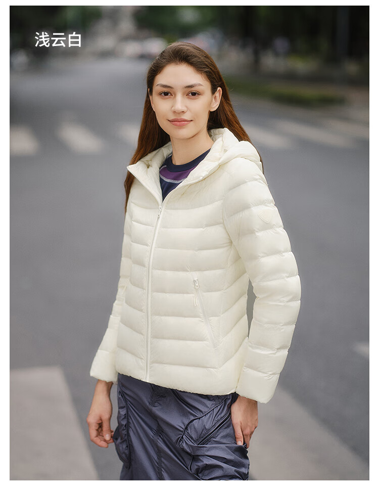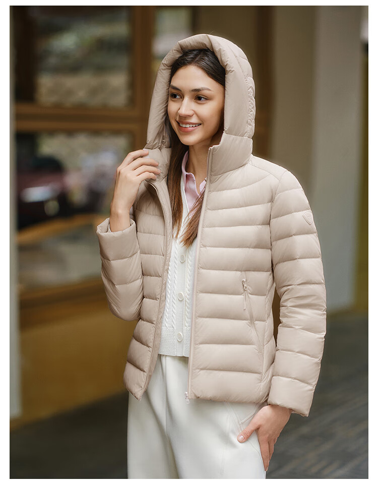 Tambor 2025 Autumn New Thin Down Jacket Women's Hooded Comfortable Short Slim Lightweight Winter Jacket 310218D Light Cloud White XS