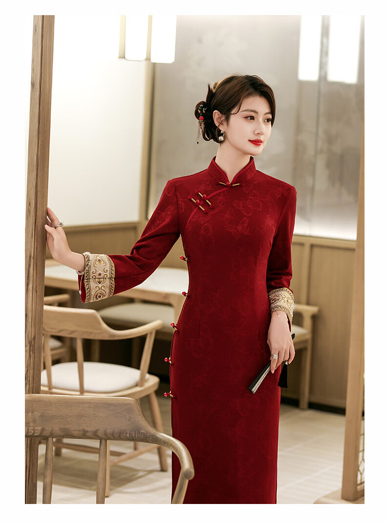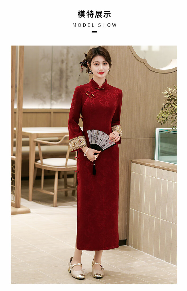 2025 new retro elegant republican style plus velvet cheongsam autumn and winter new improved temperament lady style plus velvet cheongsam 3267 3XL