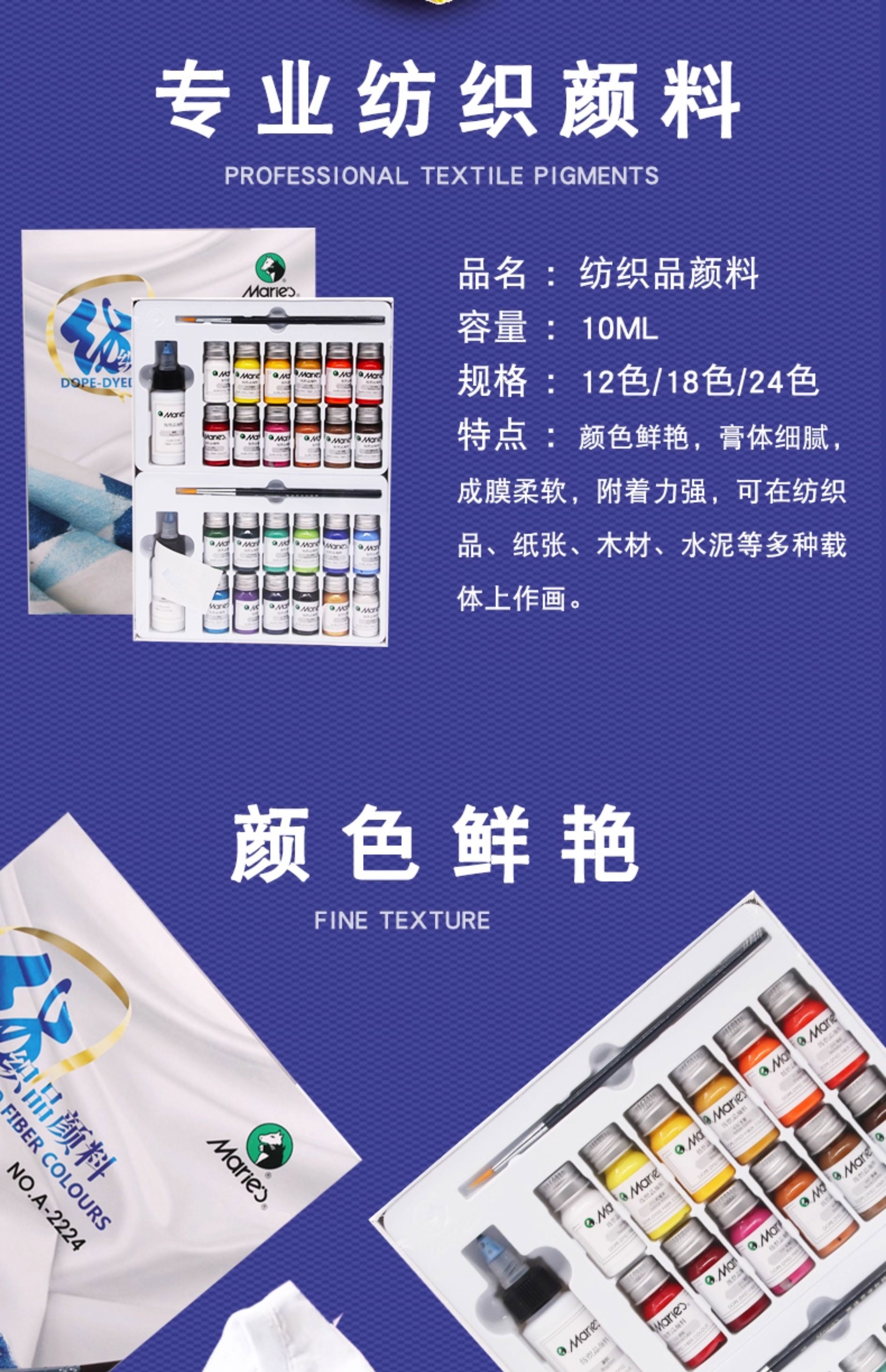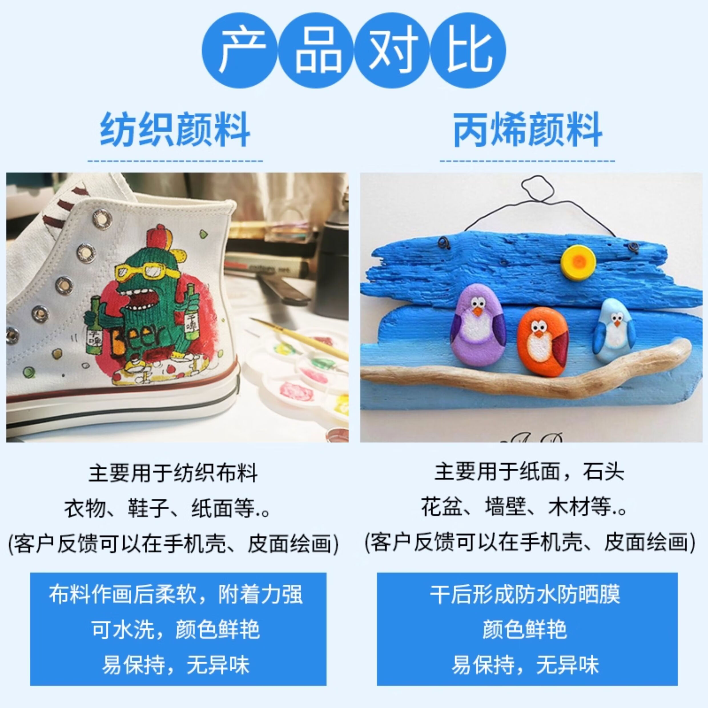 Shantou Lincun Marley clothes special textile fiber pigment children diy set hand-painted small box color painting waterproof sunscreen paint shoe graffiti dye white material textile 12-color Marley paint brush 10-piece set includes free pen + blending liquid. If you don’t give away the Marley paint brush from other brands, buy the tubular set.