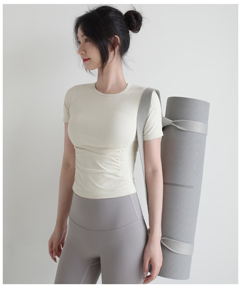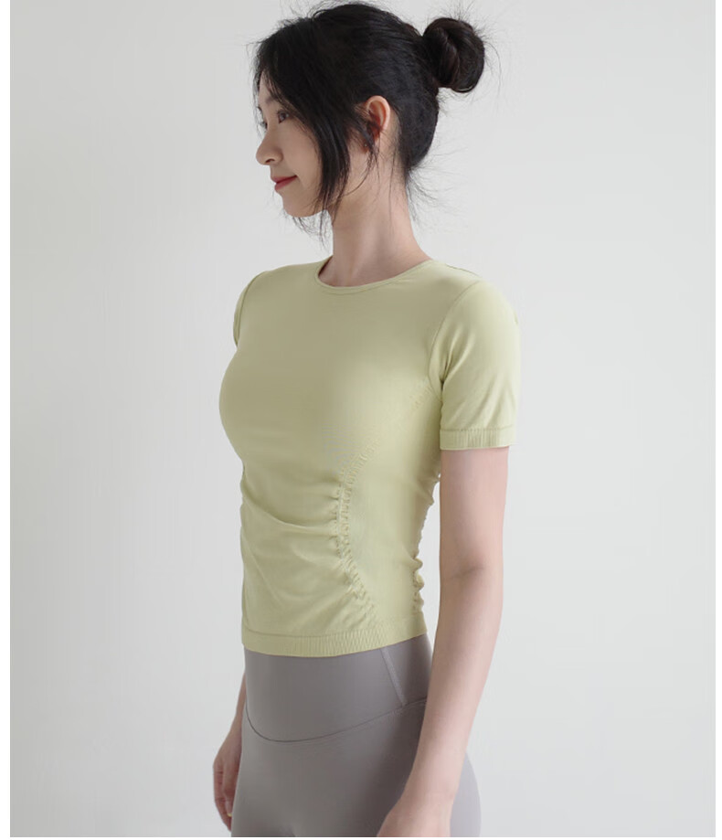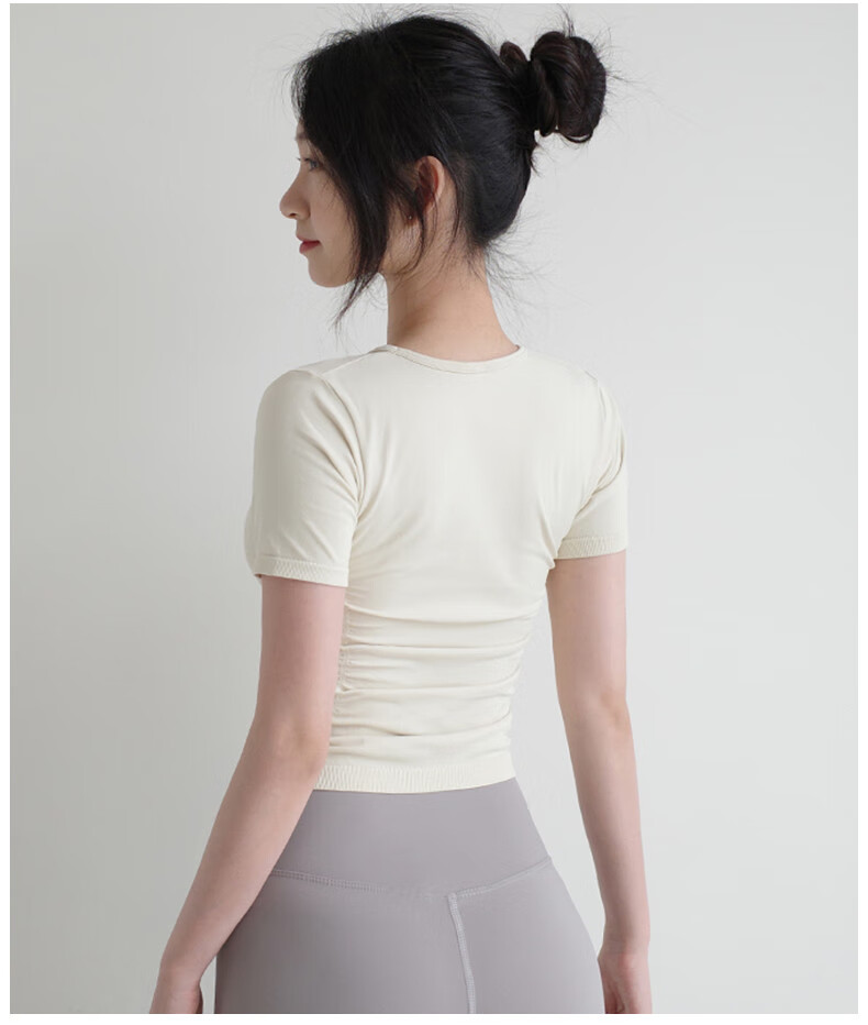 Tight women's top yoga short-sleeved women's pleated waist breathable quick-drying sports T-shirt summer slimming Pilates milk white S