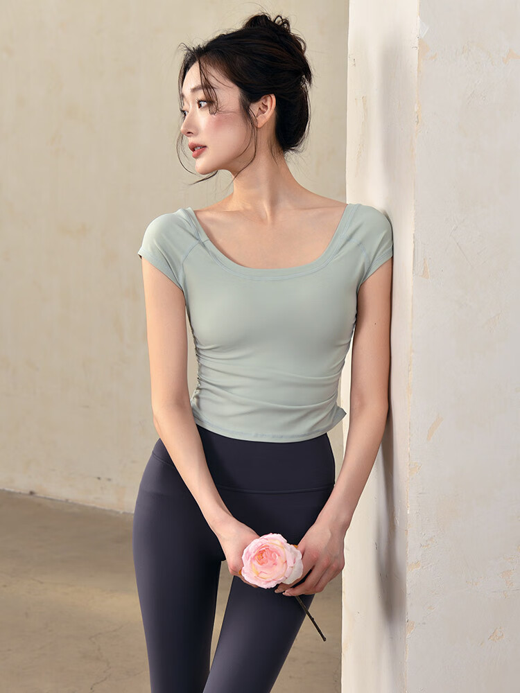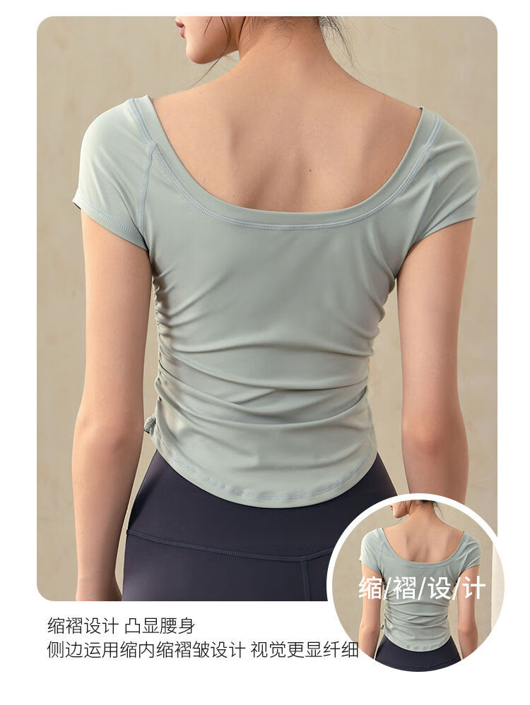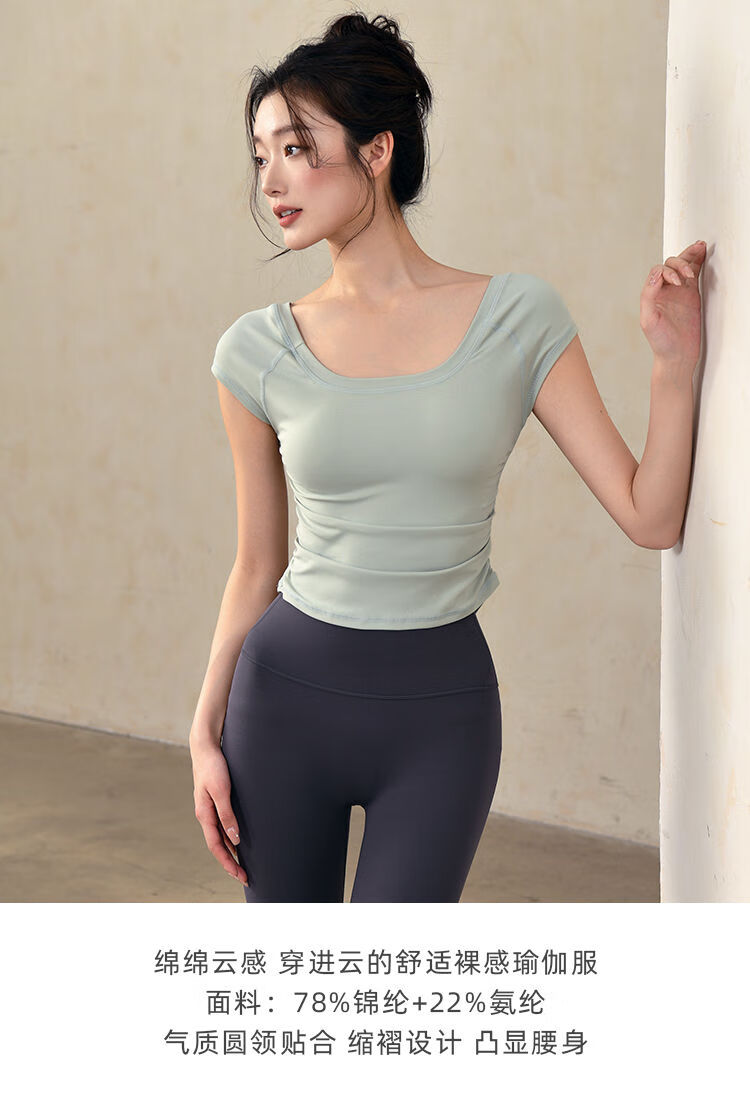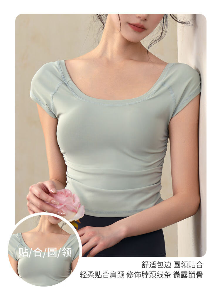 Tight tops for women, summer Pilates training clothes for women, beautiful yoga tops for running, quick-drying fitness t-shirts, aqua green S, recommended weight 85-100b