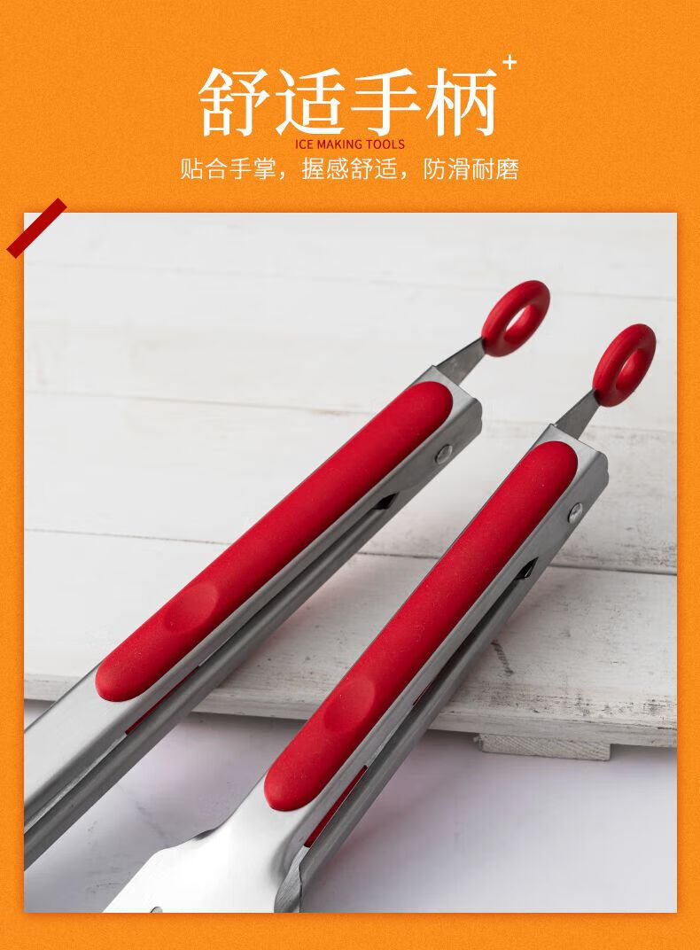 Qinkai thickened food clips, high temperature resistant clips, anti-scalding clips, fried skewer clips, barbecue clips, bread clips, braised pork clips, cooking 12-inch red