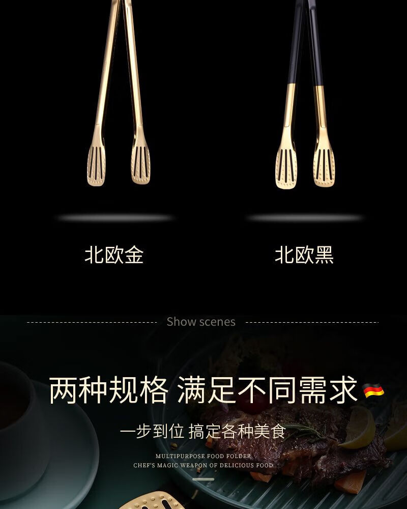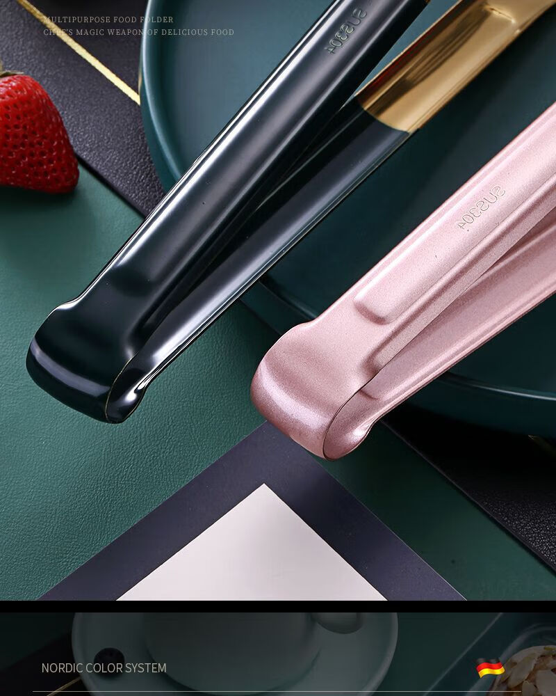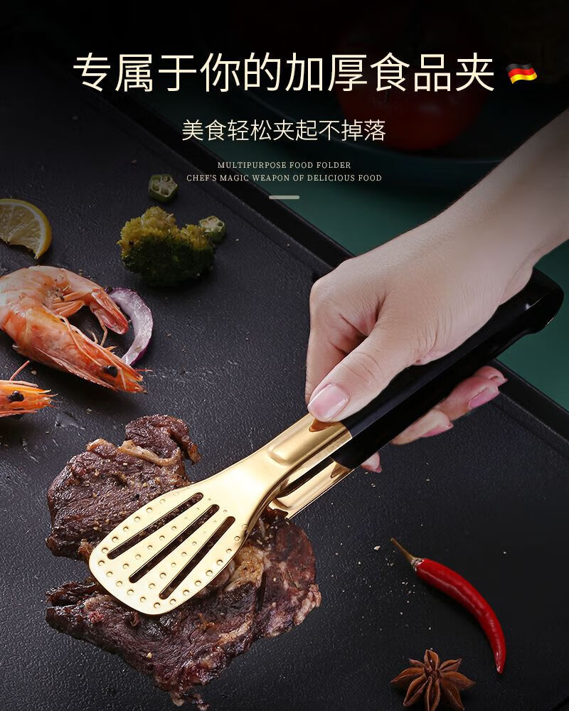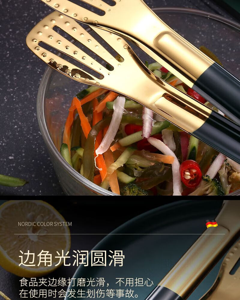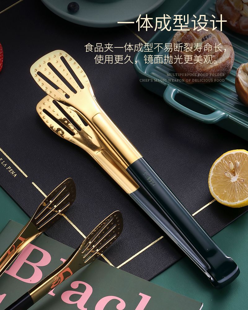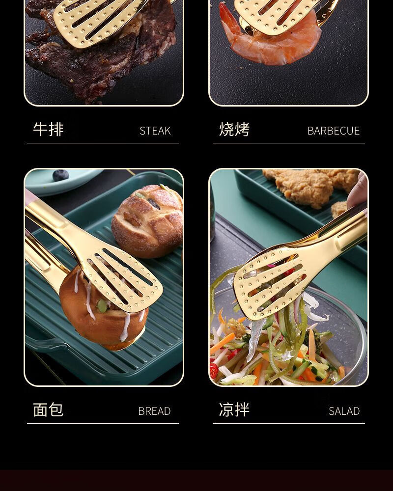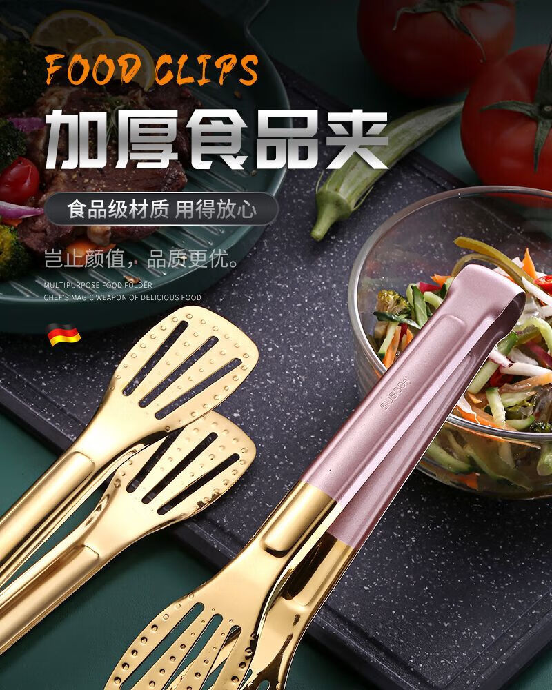 Qinkai ultra-thick stainless steel food tongs kitchen commercial anti-scald food tongs barbecue tongs steak tongs spicy hot 9 inches (length 23.5cm) stainless steel color (ordinary style)
